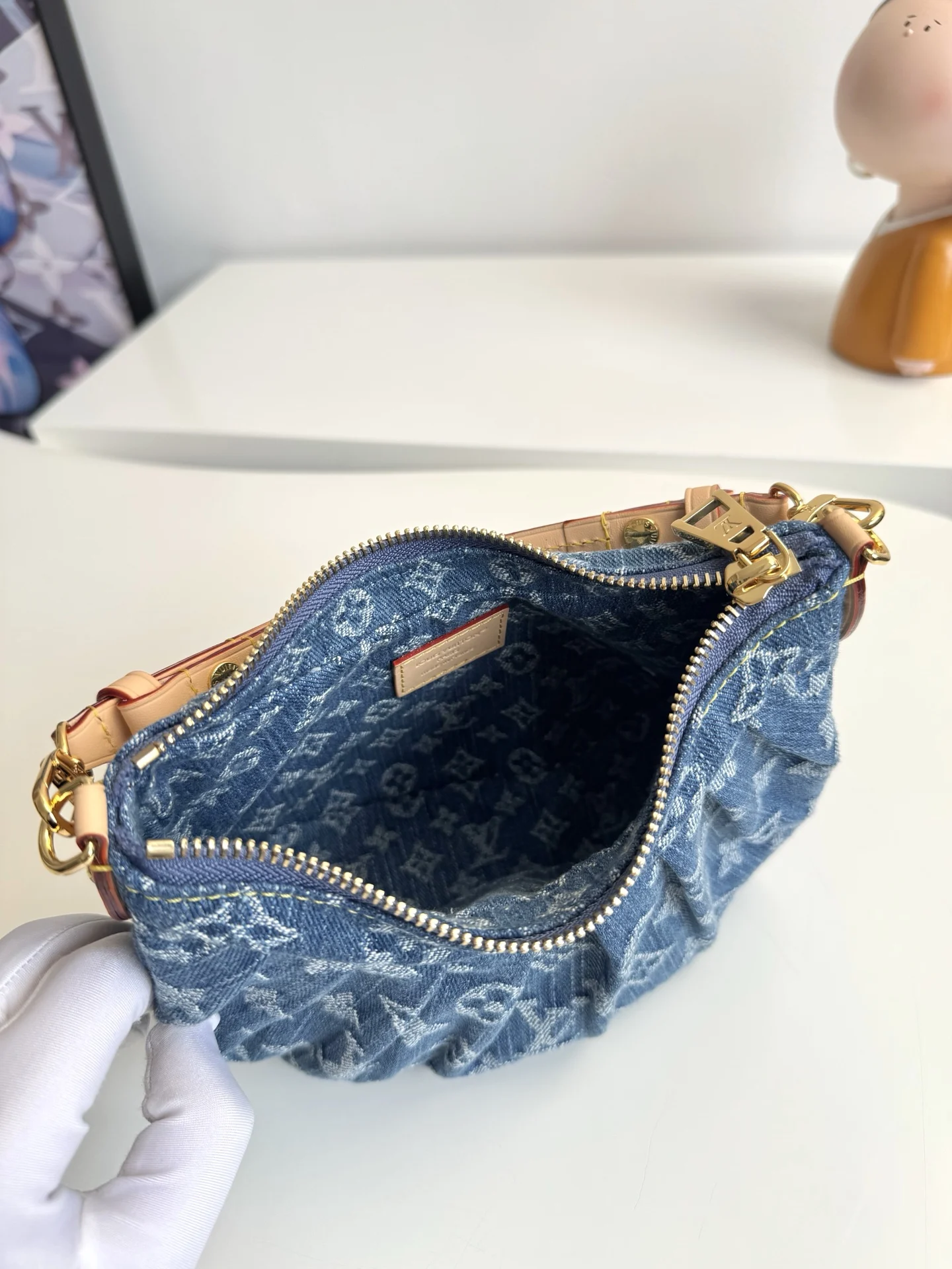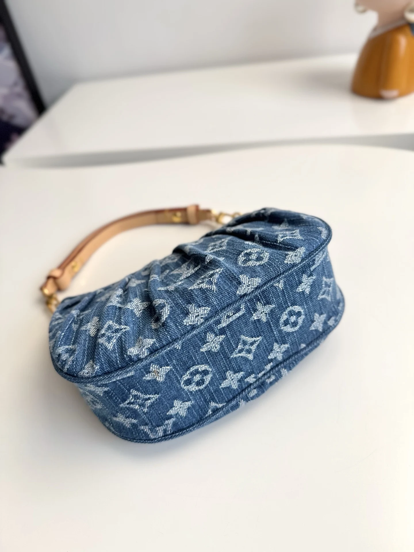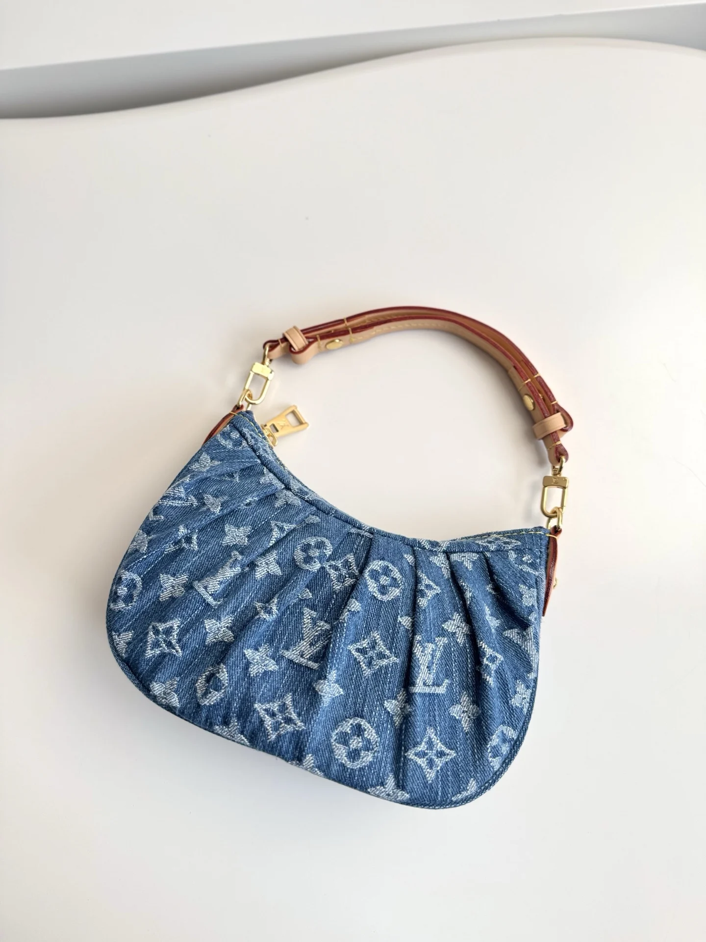 Exclusive real shot of the overseas original M13571! The Pochette Valley handbag is made from Monogram cotton denim, featuring contrasting leather trims and striking metal accents, giving the classic design a modern flair. The handle can be removed to transform it into a clutch. Dimensions: 21×15×7cm