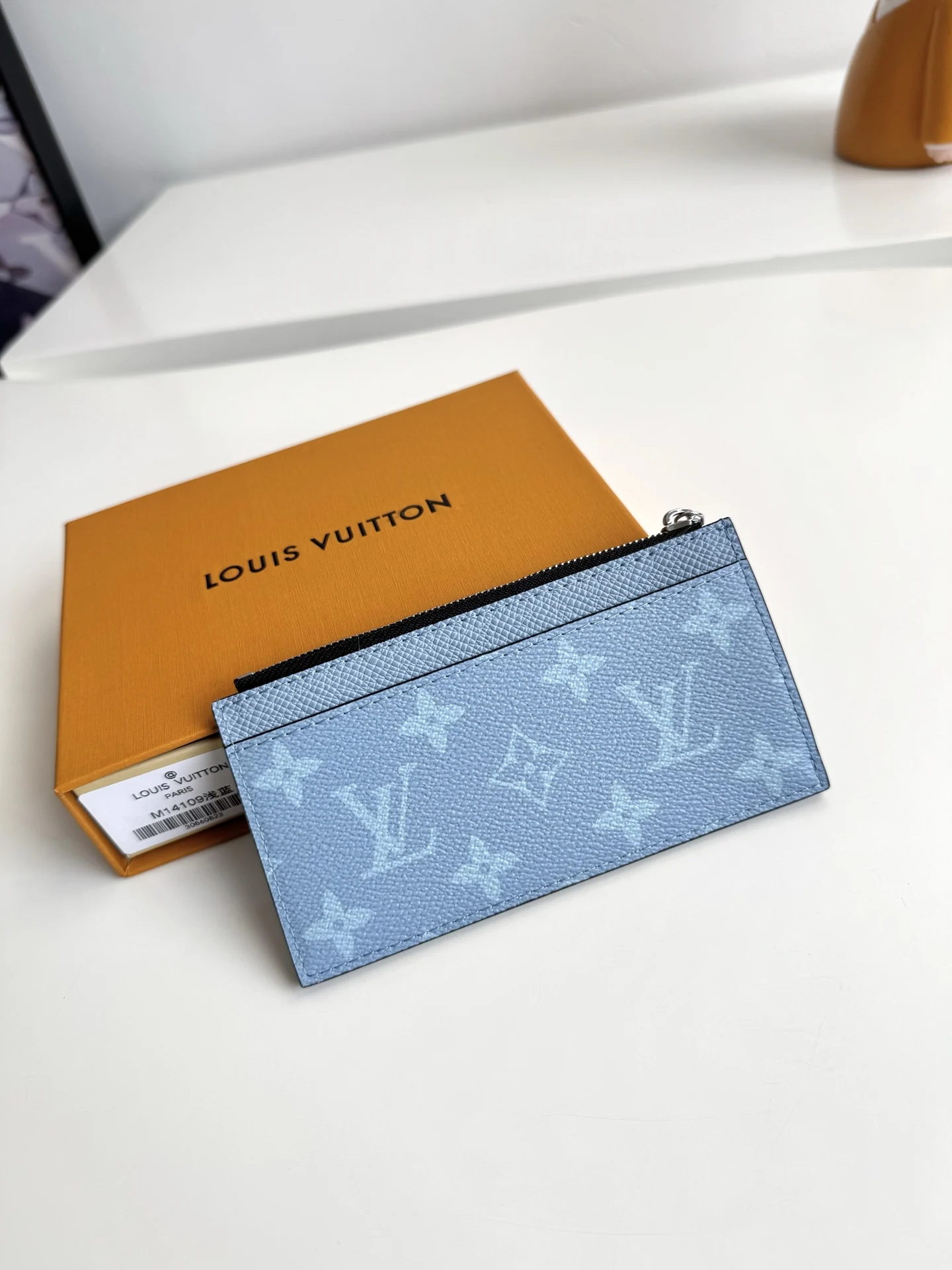Overseas original M14109 light blue exclusive real shot. This Coin card holder, made from the new Monogram Eclipse coated canvas material, is a secure choice for storing coin..