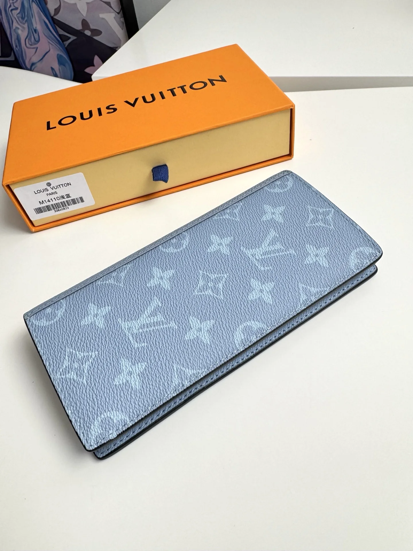 Overseas original M14110 light blue exclusive real shots! The Brazza long wallet is made of brightly colored Monogram coated canvas paired with tone-matched Taiga leather. The..