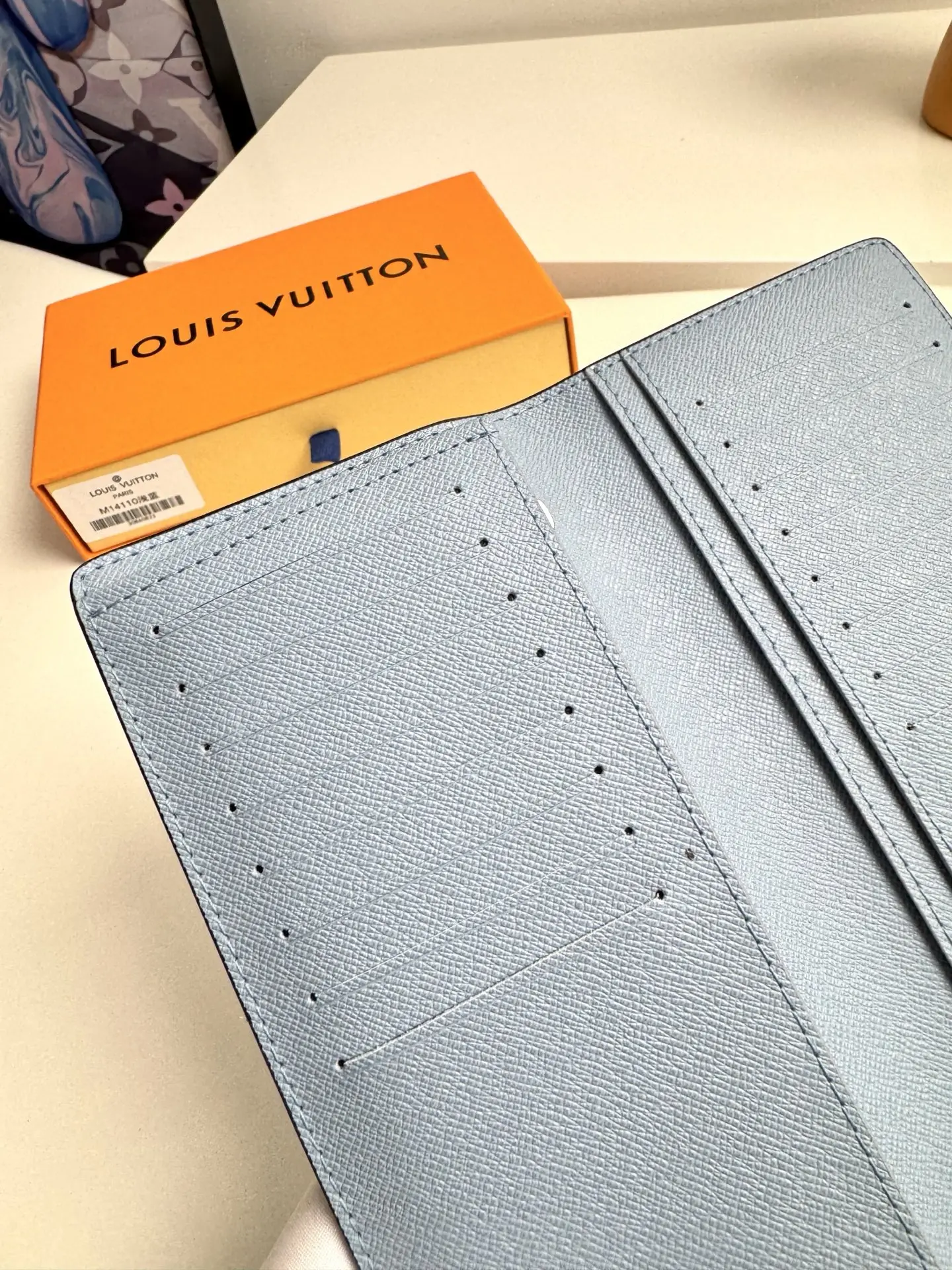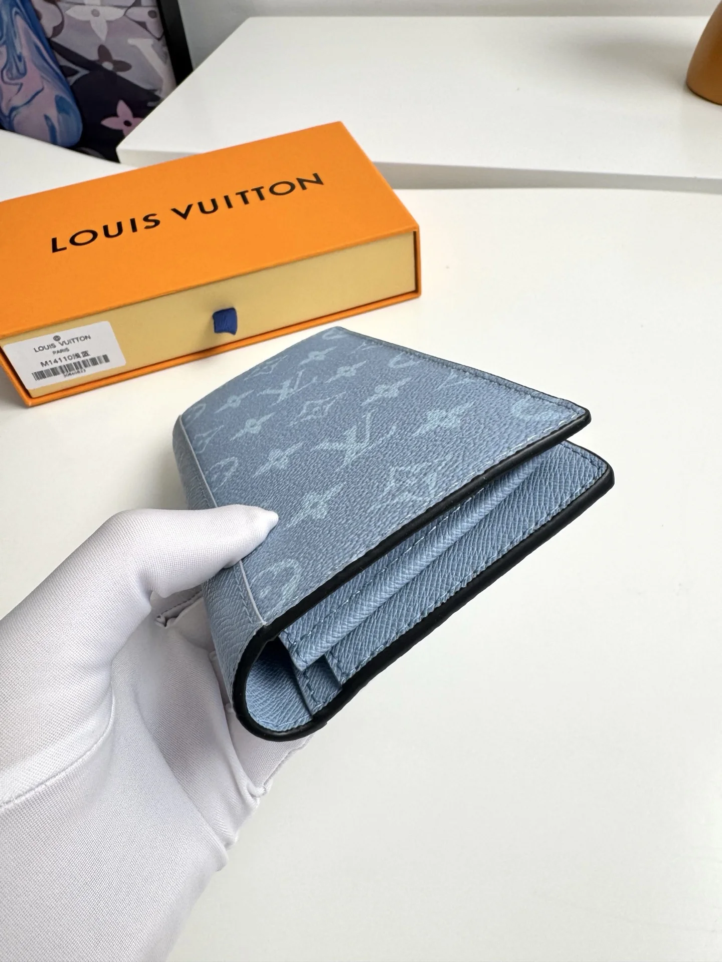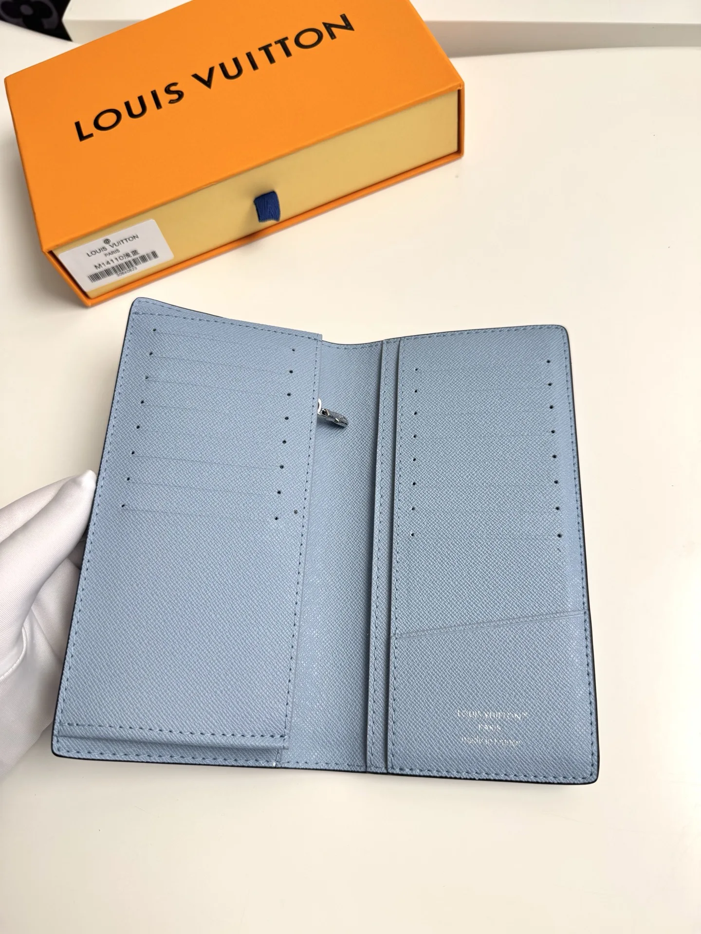 Overseas original M14110 light blue exclusive real shots! The Brazza long wallet is made of brightly colored Monogram coated canvas paired with tone-matched Taiga leather. The meticulously designed interior features sixteen credit card slots, a zipped coin compartment, and multiple compartments, complemented by a blue cowhide lining. This wallet is perfect for men who like to keep everything within reach. Dimensions: 19 × 10 × 2cm