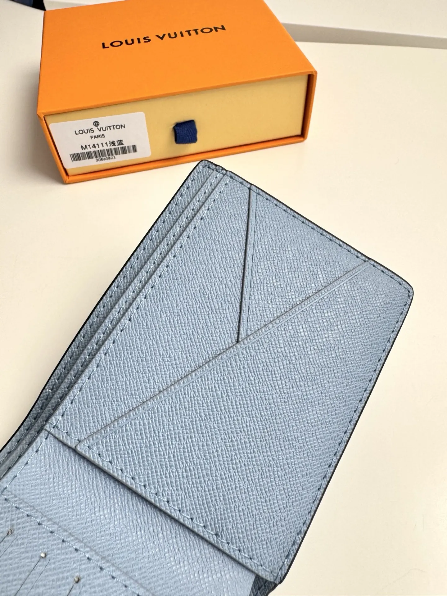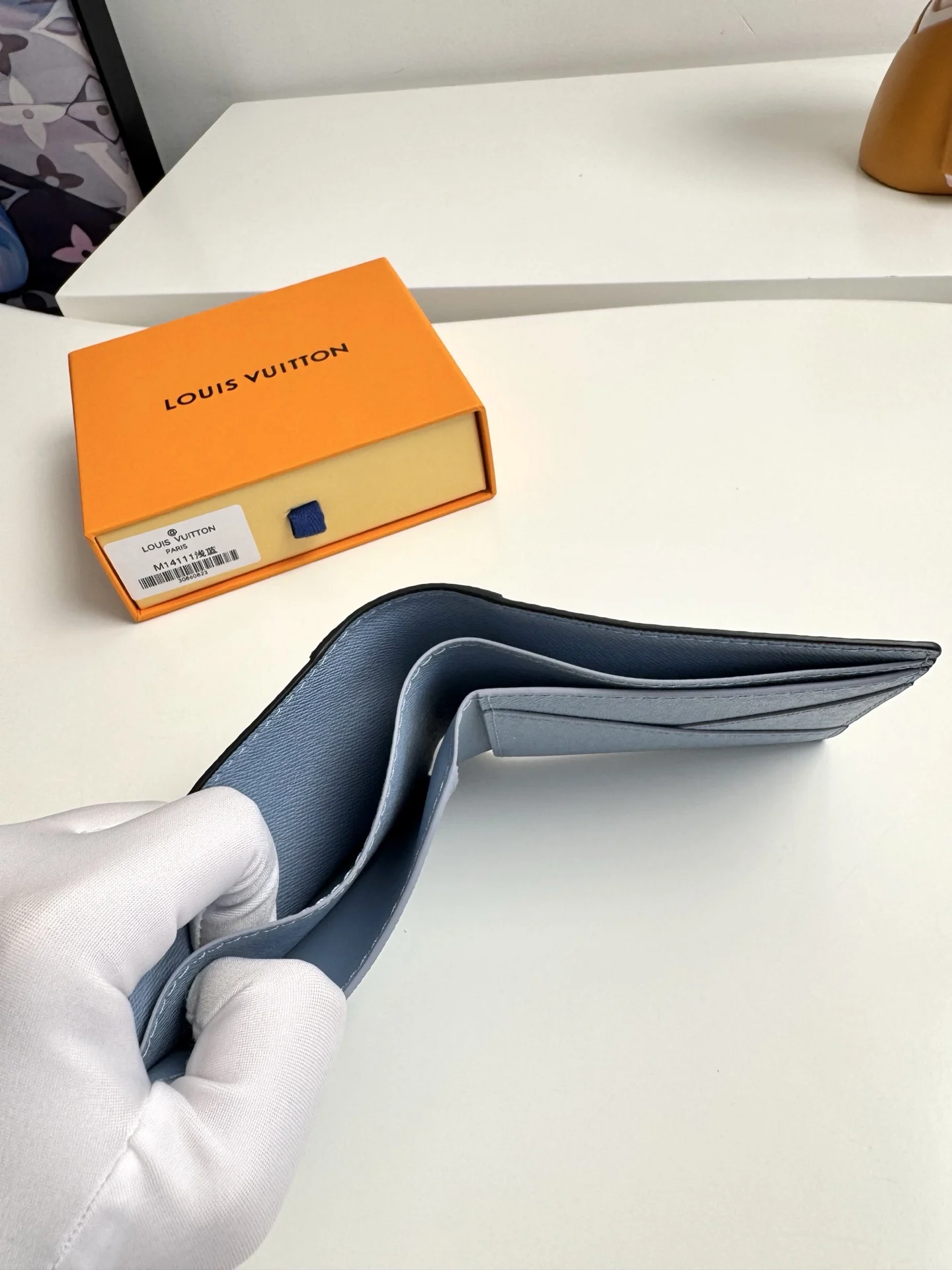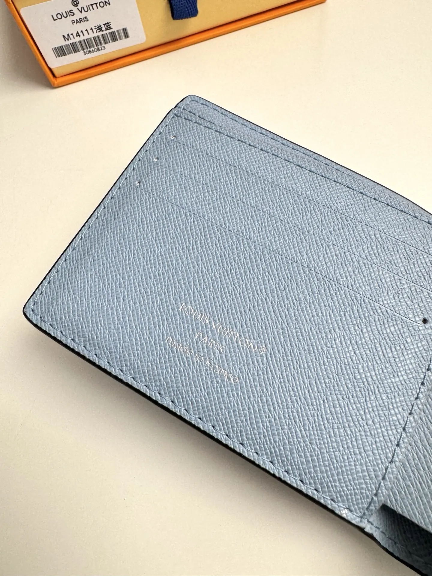 Overseas original single M14111 light blue exclusive real shot! This compact Multiple wallet showcases a sleek and refreshing color scheme with Monogram canvas in matching to..