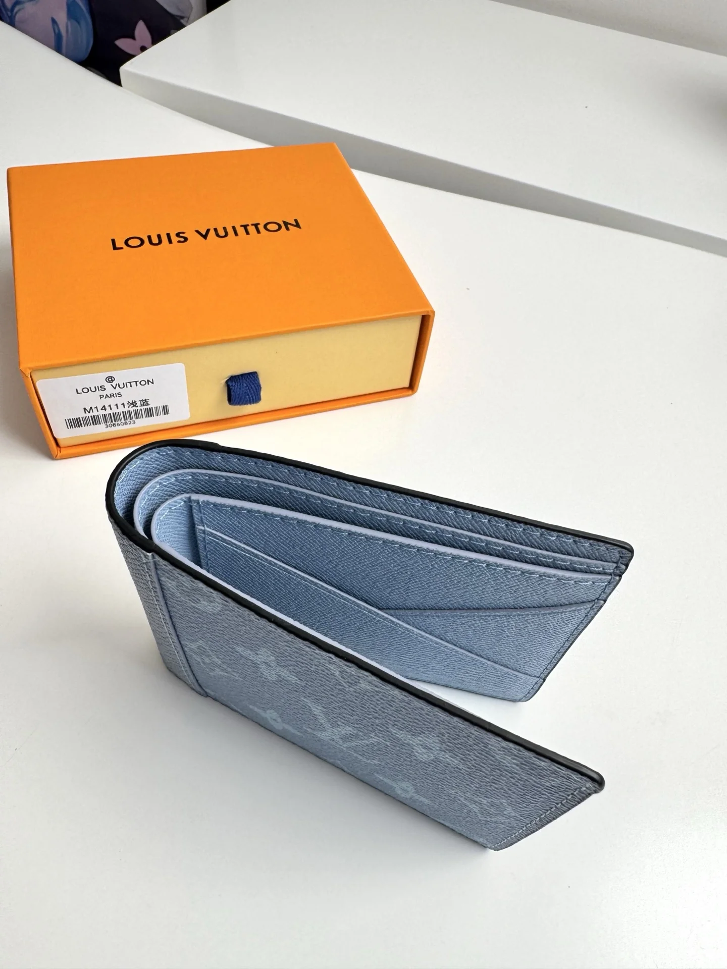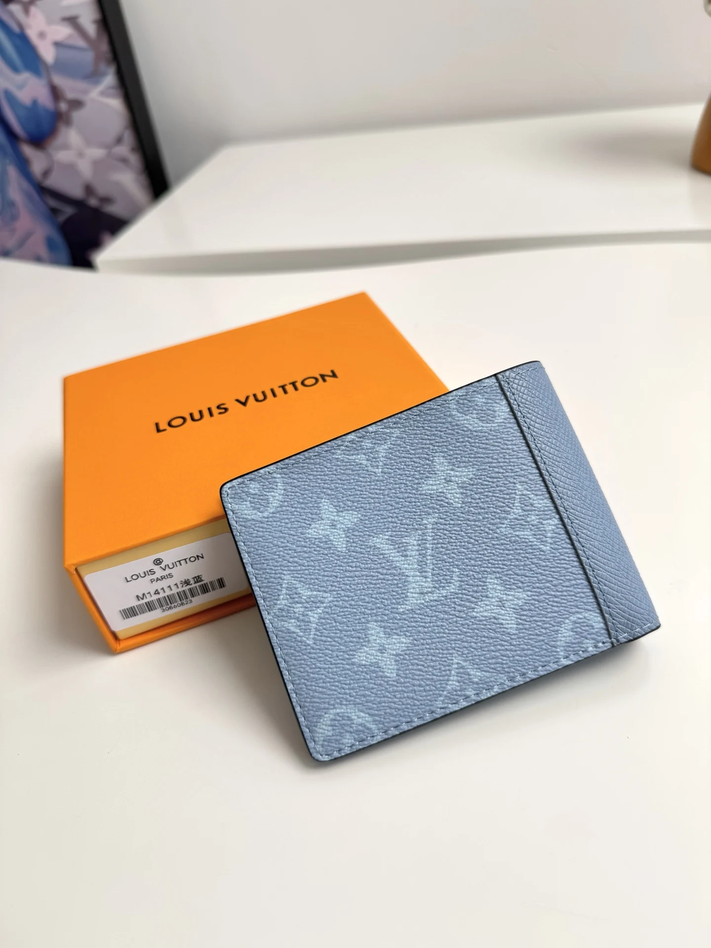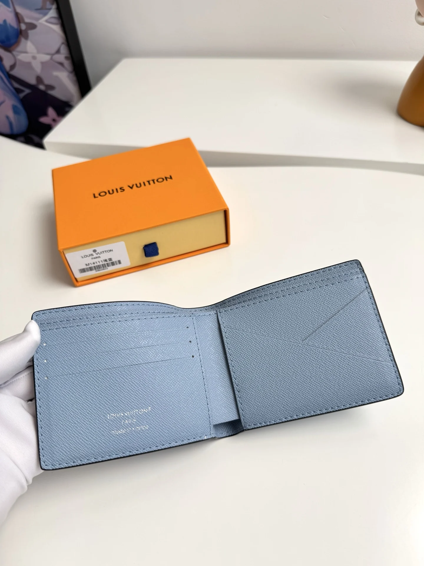 Overseas original single M14111 light blue exclusive real shot! This compact Multiple wallet showcases a sleek and refreshing color scheme with Monogram canvas in matching to..