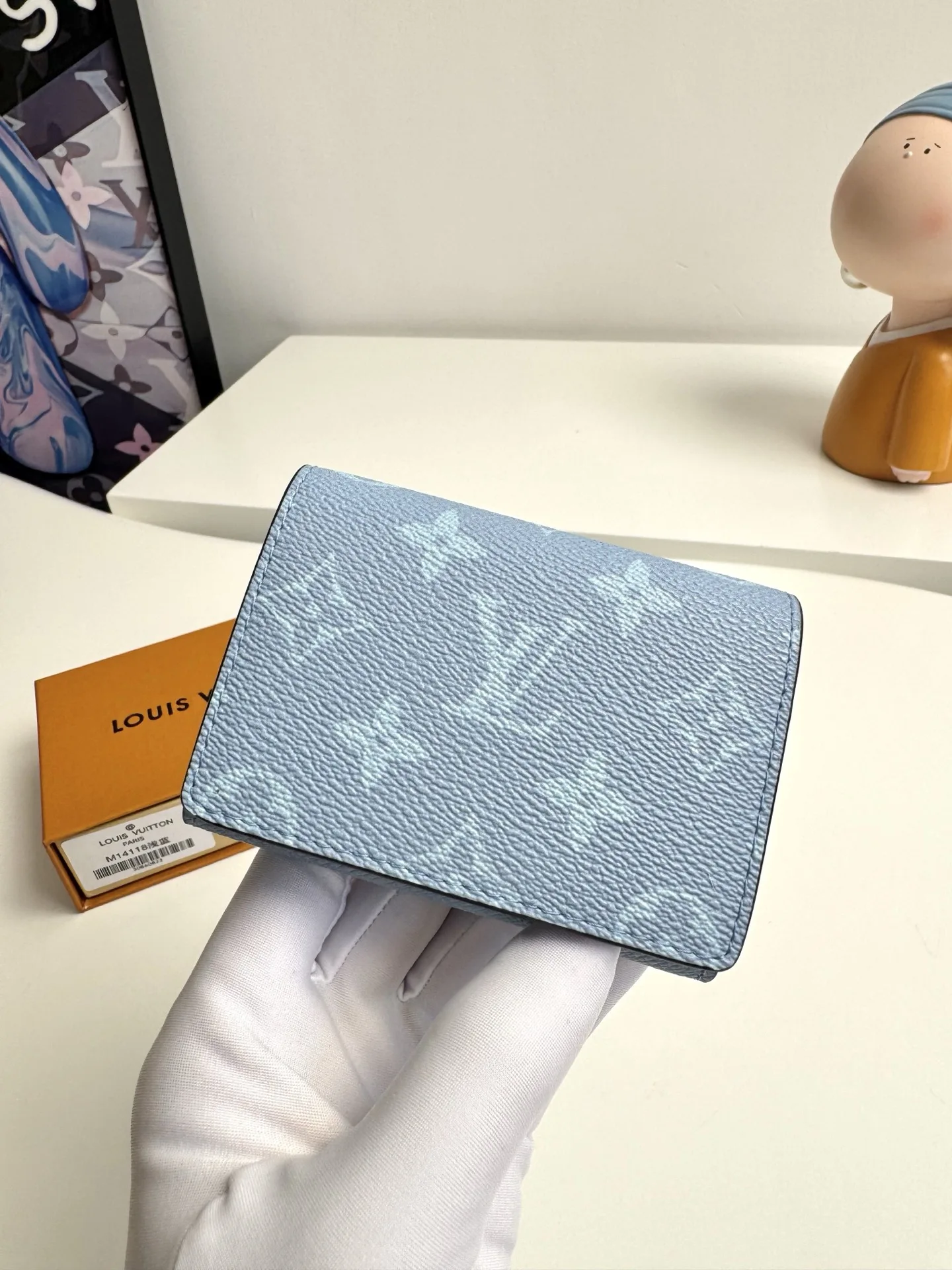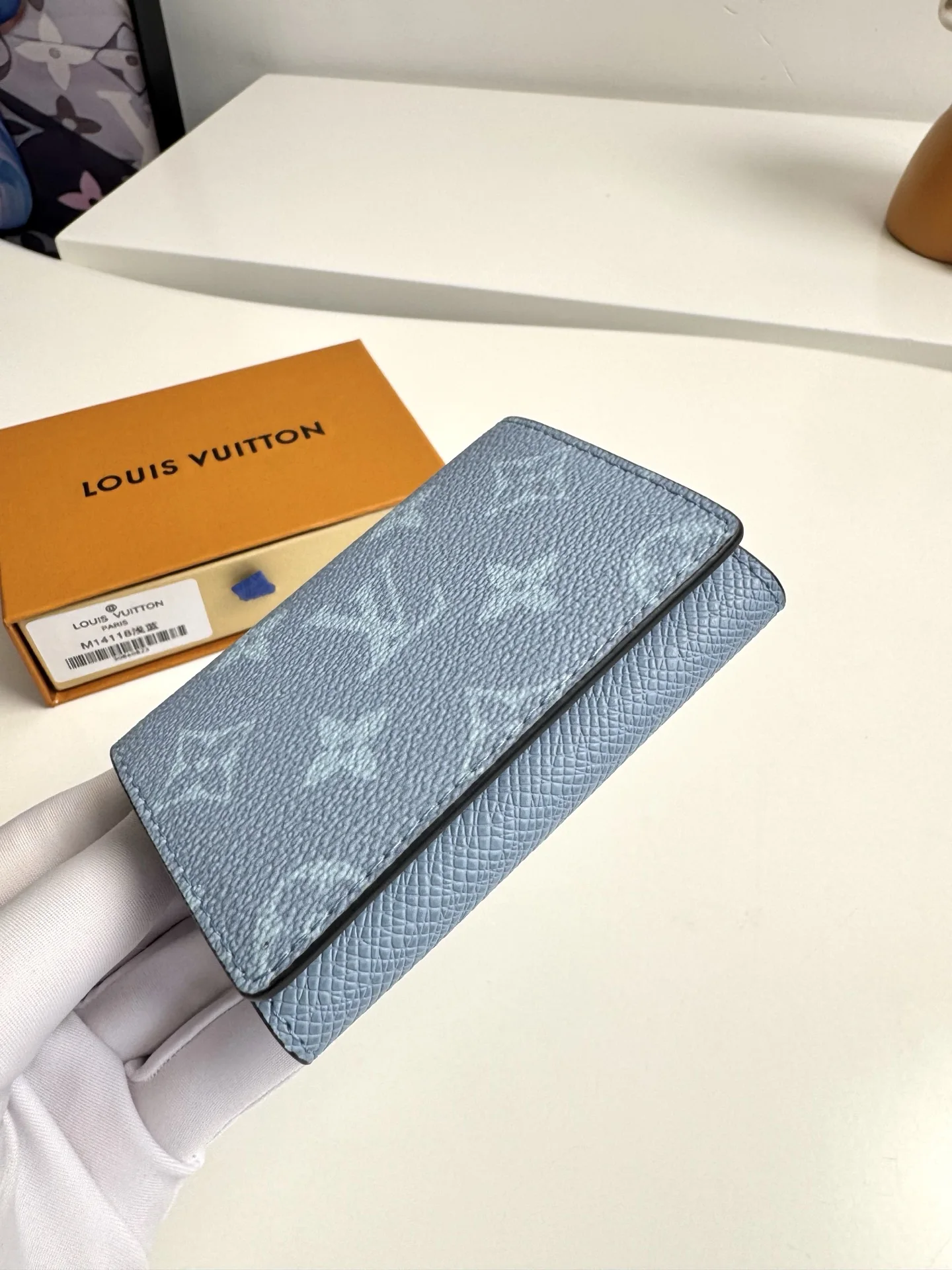 Original overseas order M14118 light blue exclusive real shot! ENVELOPPE CARTE DE VISITE business card holder, crafted from Damier Graphite coated canvas, this slim and refine..