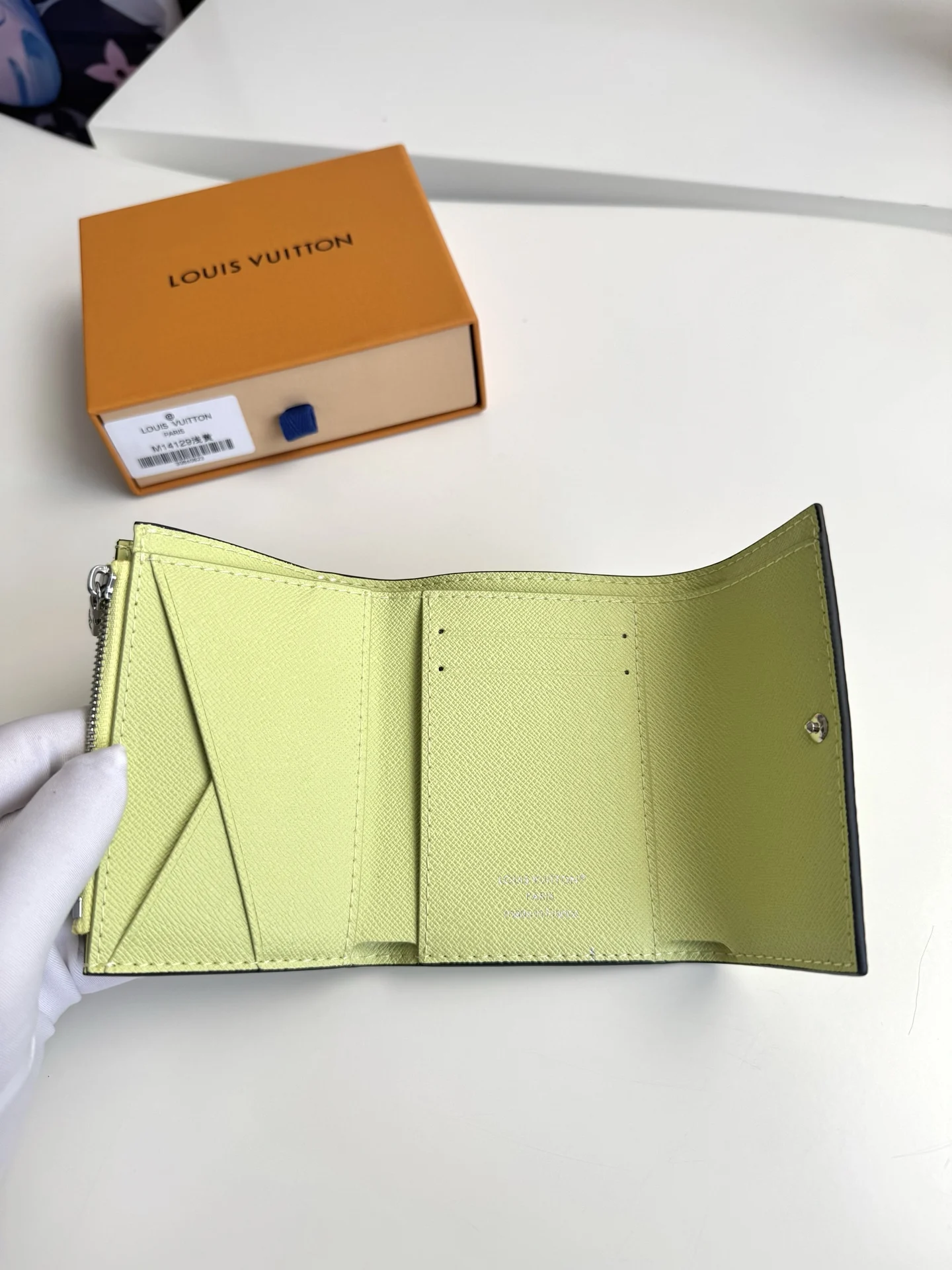 Overseas original M14129 light yellow exclusive real shot! This elegant Victor wallet is made of Monogram Eclipse canvas and can hold coins, business cards, banknotes, and ti..