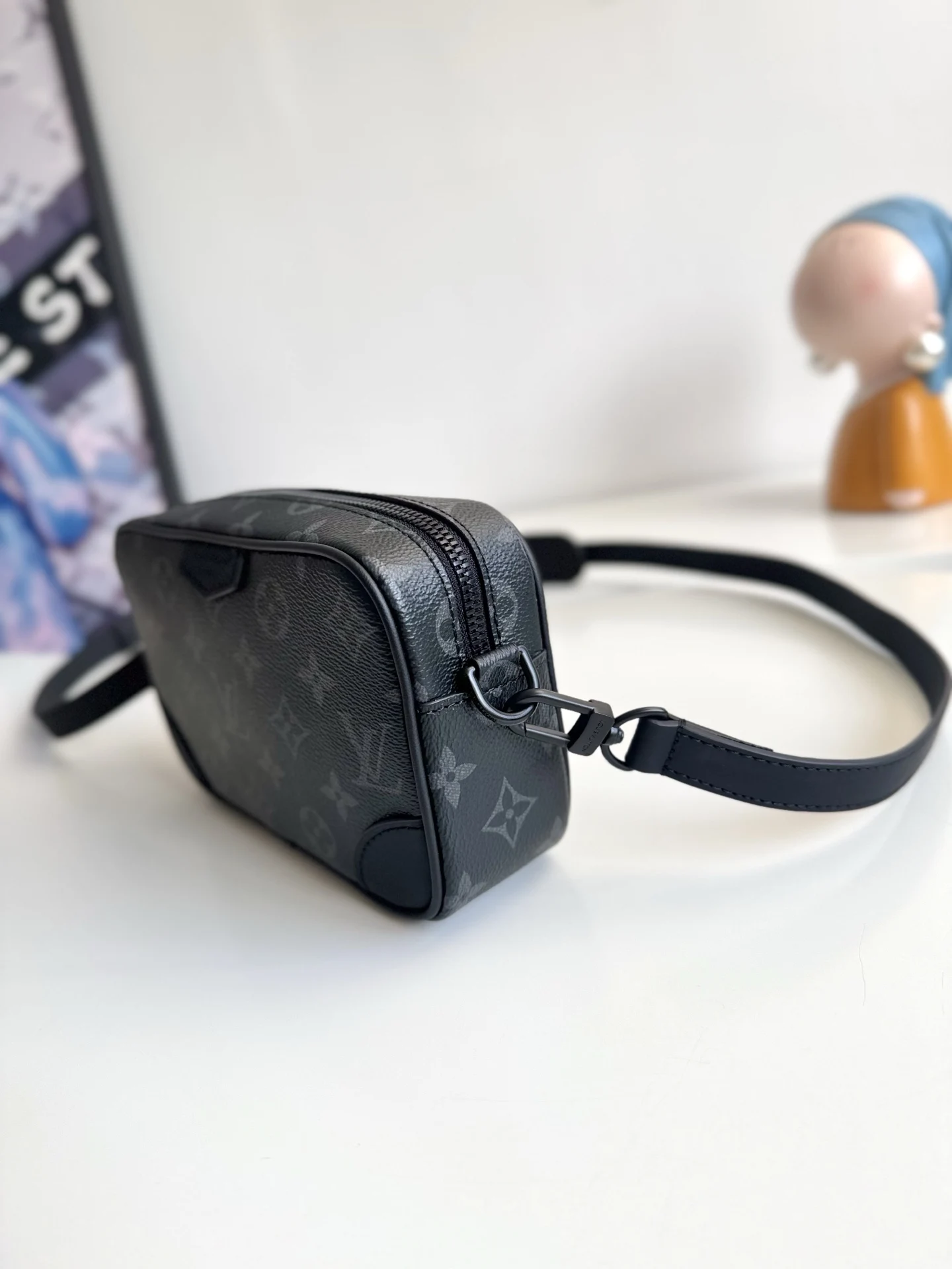 Exclusive live shot of the overseas original M14253! This Trocadero mini handbag is made from Monogram Eclipse coated canvas, complemented by leather trim and dark metal accents, showcasing a sophisticated style. A light pull on the zipper reveals a compact interior, with an internal pocket design emphasizing functionality. The detachable and adjustable shoulder strap ensures comfortable carrying. Dimensions: 20×13×6.5cm