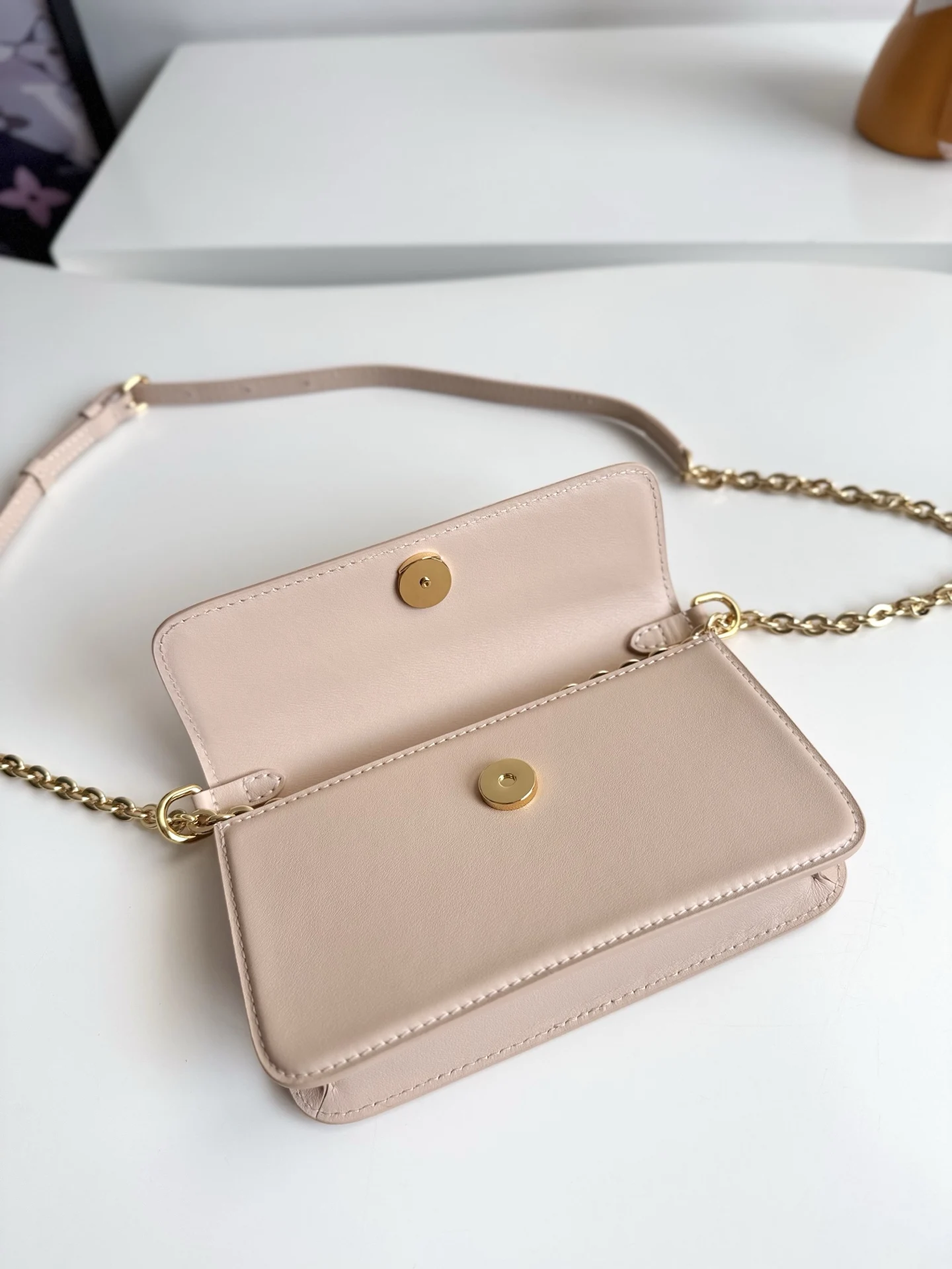 Exclusive real shot of the overseas original M14581! This Wallet On Chain handbag is from the Louis Vuitton LV Bloom series, crafted from cowhide leather into a stylish and practical shape. The design is inspired by the brand s classic Monogram pattern, adorned with decorative accents. Ample space is available to accommodate a smartphone, and the contrasting metal pieces add an elegant touch. Dimensions: 20×11.5×4cm