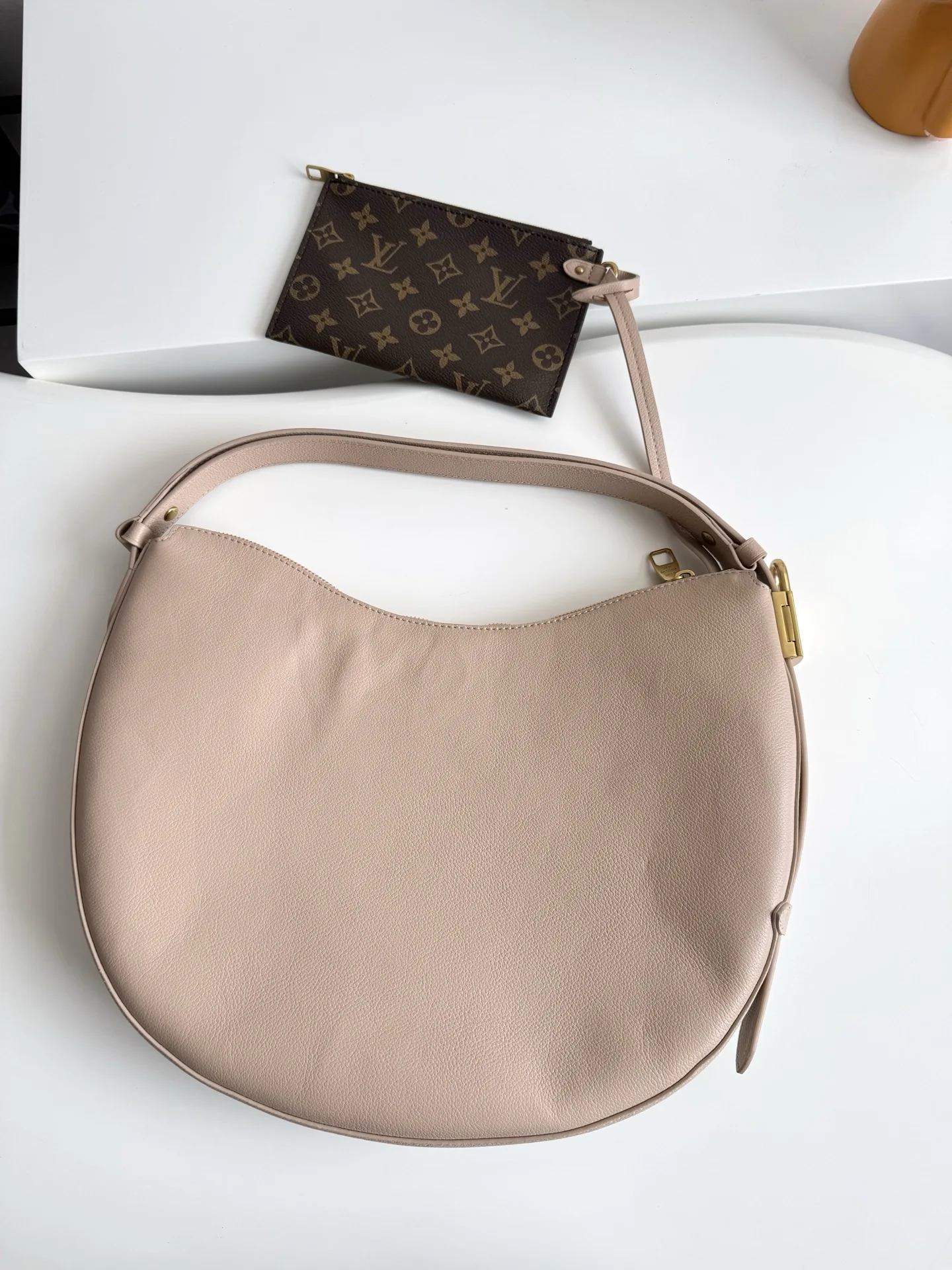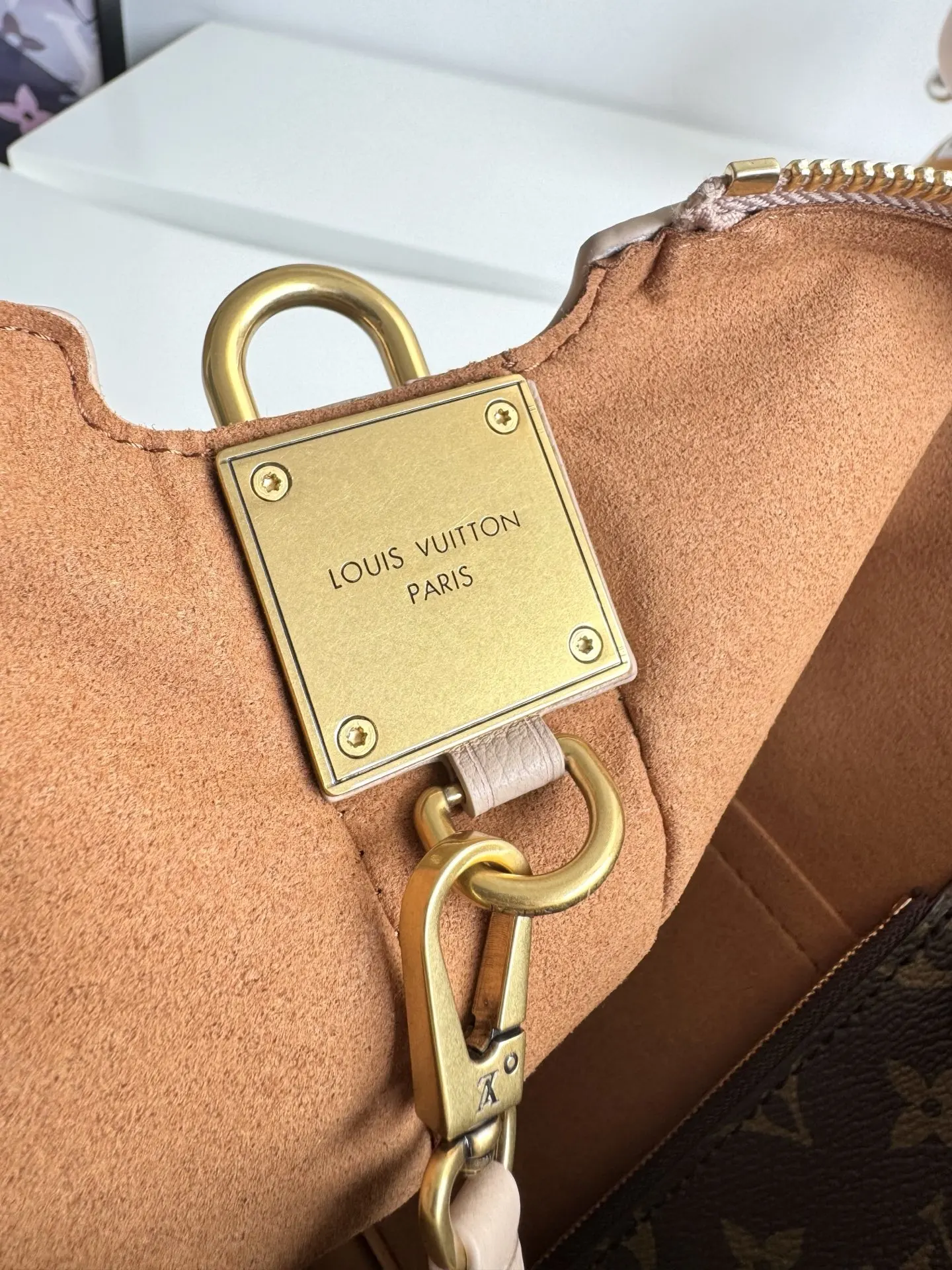 Exclusive live shoot of the overseas original M14635! Louis Vuitton introduces the Low Key Cookie medium handbag, showcasing the brand s heritage and exquisite craftsmanship through its elegant design. The soft cowhide leather will develop a distinctive sheen over time, while the aged metal lock and detachable Monogram pouch enhance the details, allowing for various carrying options. Dimensions: 32×26×5cm