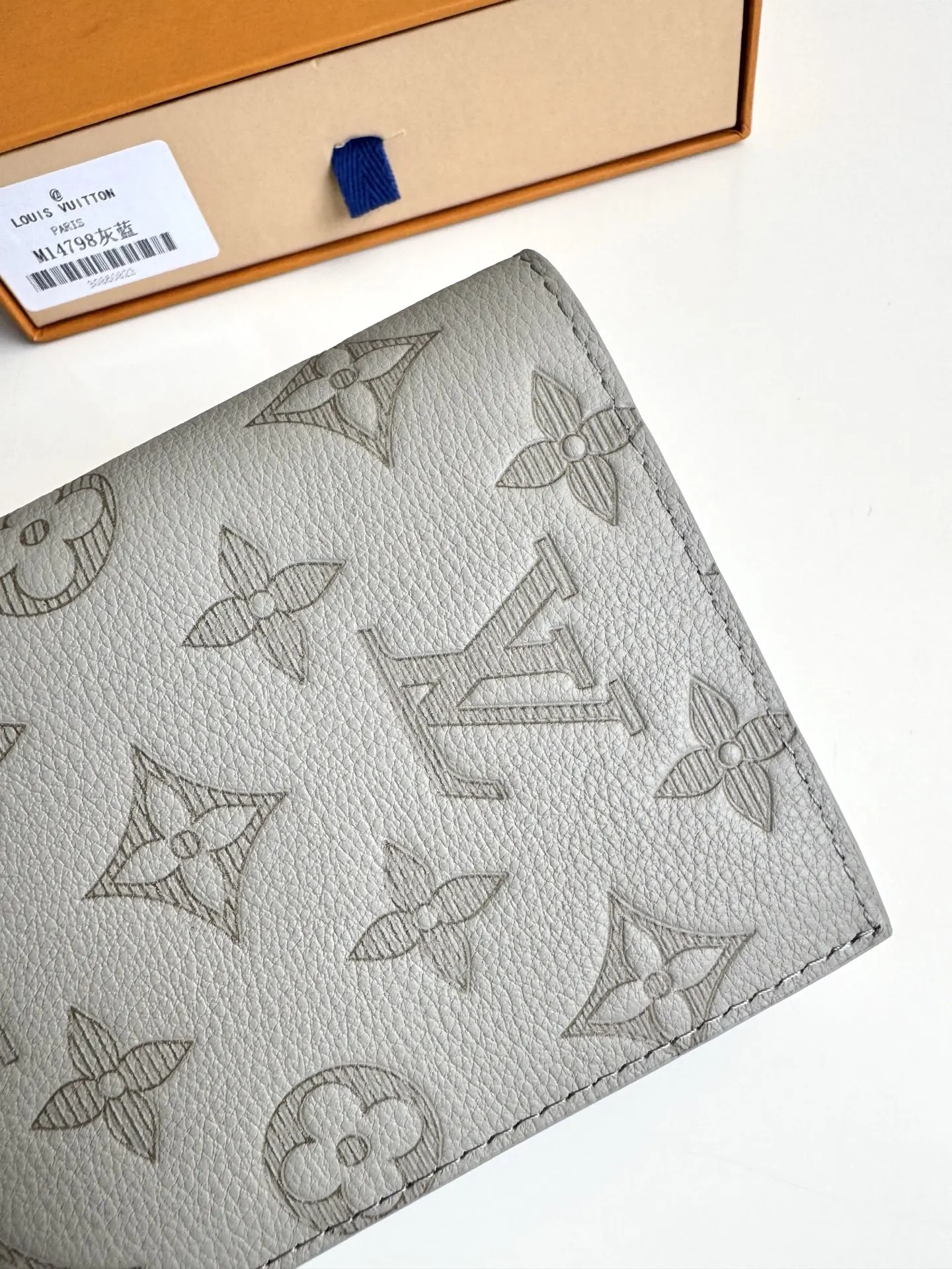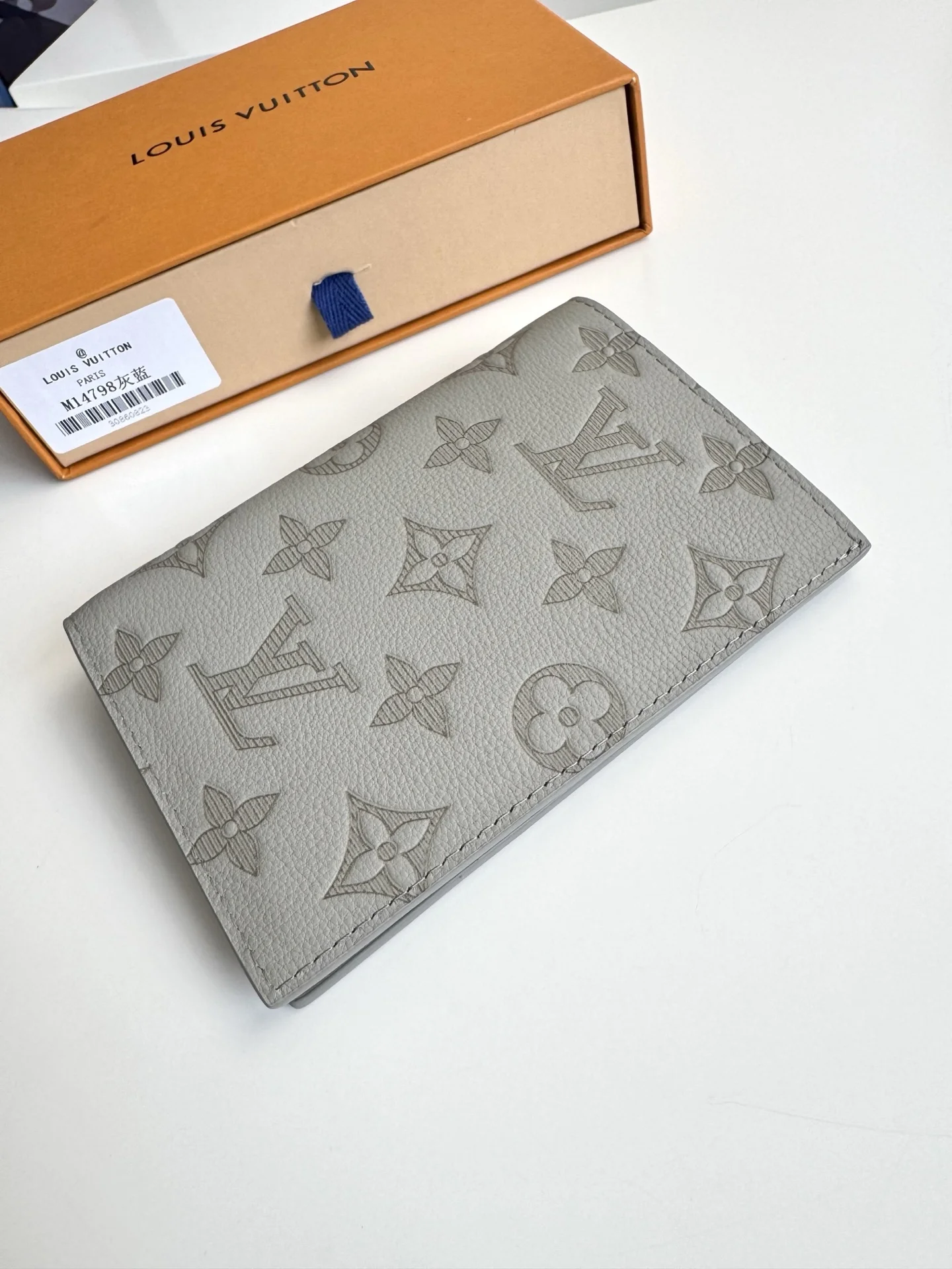 Exclusive real shot of overseas original M14798 in gray-blue! This passport holder is made of soft Monogram Shadow leather, featuring an upgraded minimalist design with Monogram embossing. The card slots and slip pockets can store receipts, tickets, or other items, adding a touch of style to your journey. Dimensions: 14×10×2.5cm