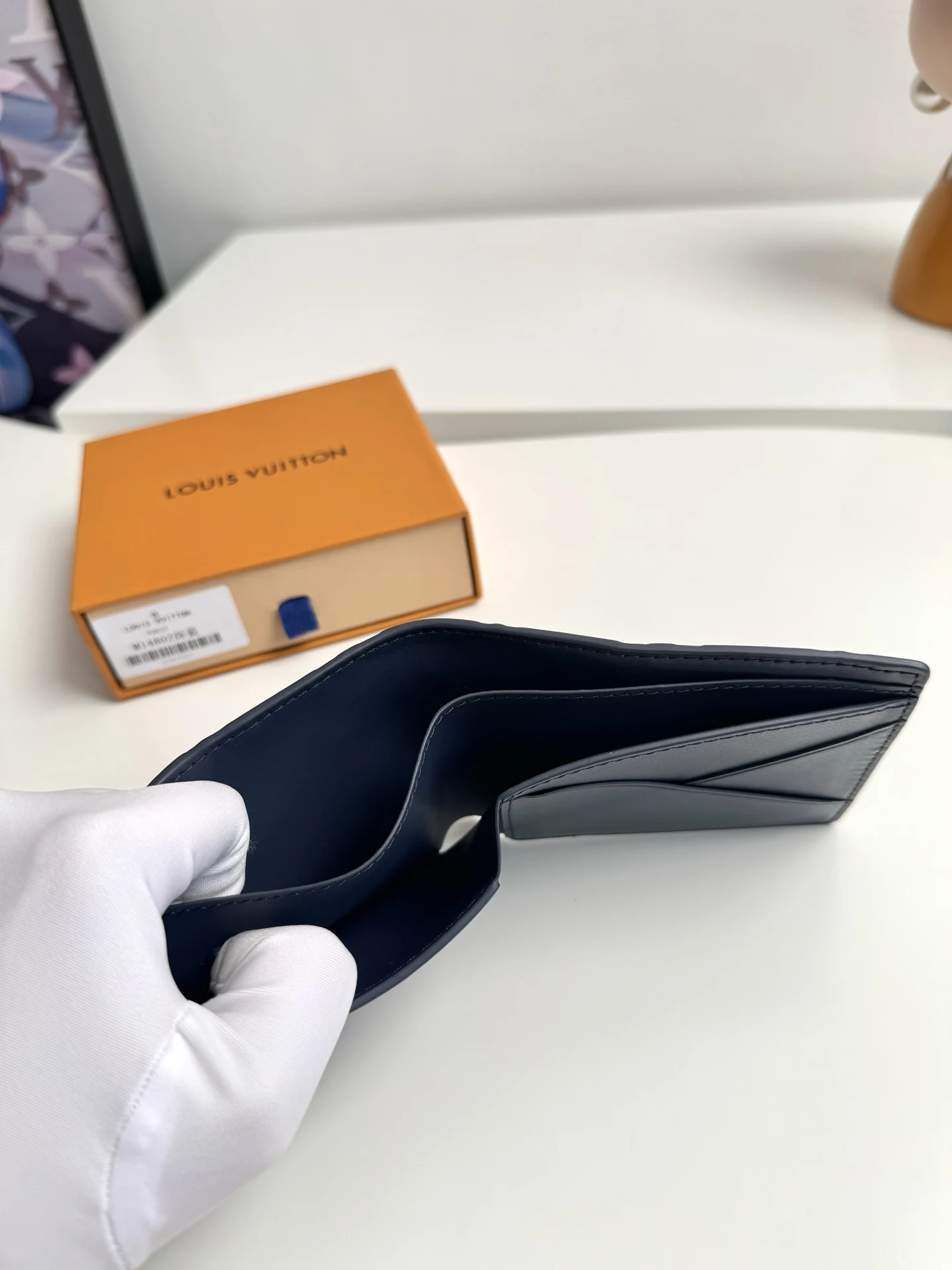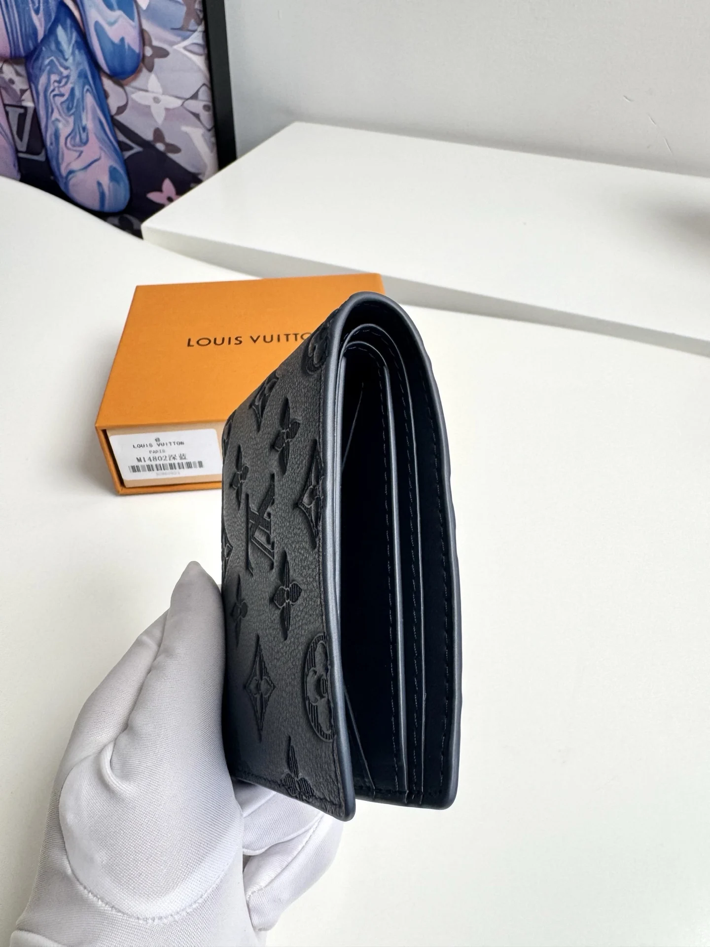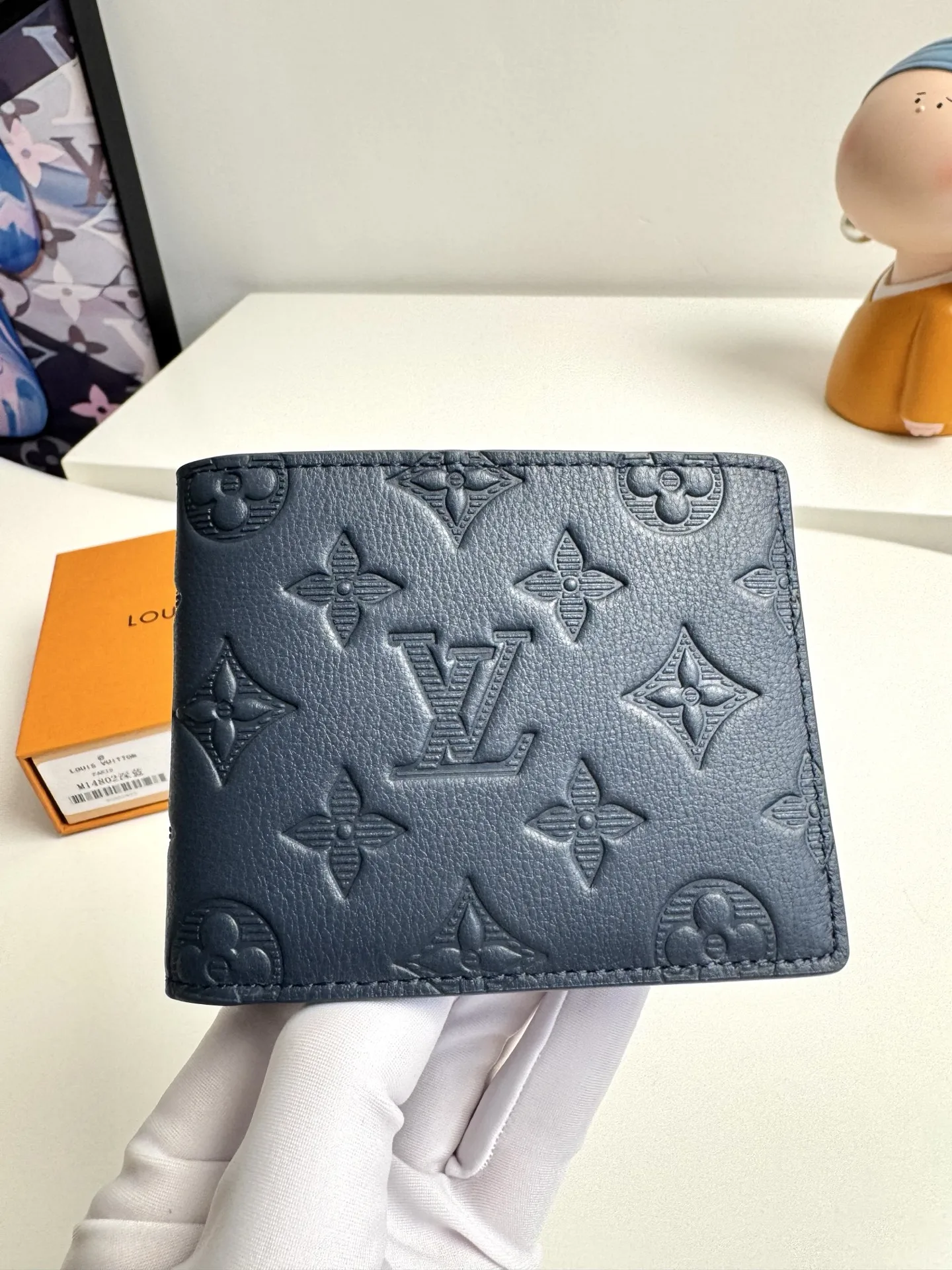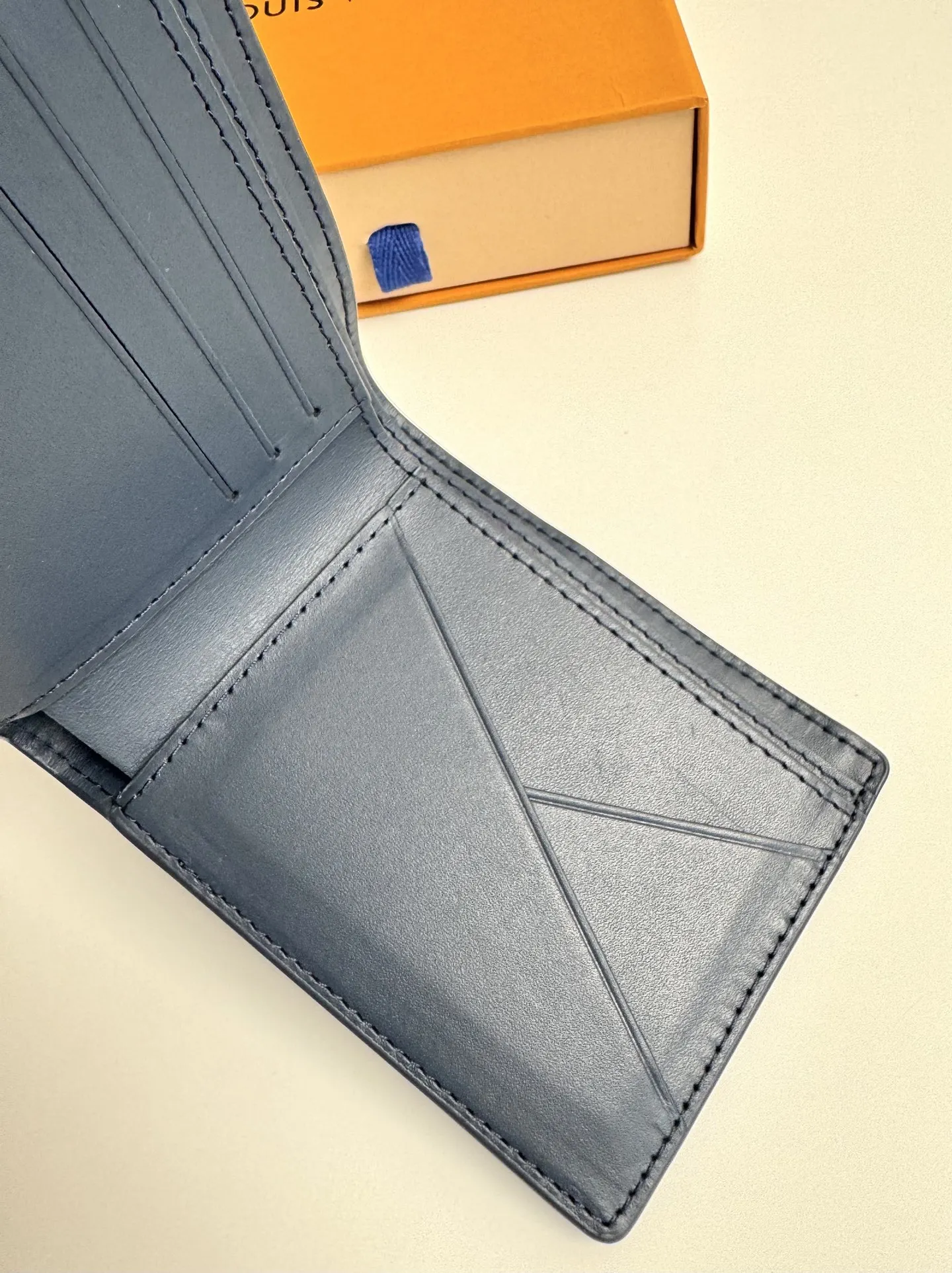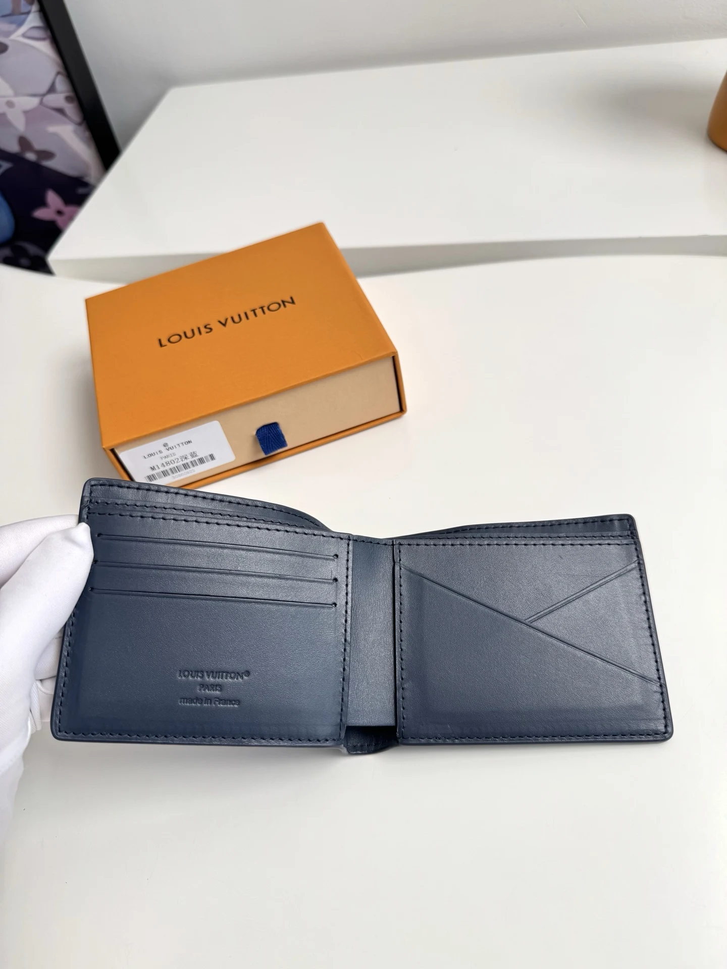 Original overseas order M14802 dark blue exclusive real shot! This Louis Vuitton Multiple wallet boasts a clean and simple design. The blue Monogram Shadow calf leather is exceptionally soft and adorned with the iconic Monogram embossing. Compact and highly portable, it features multiple credit card slots and compartments for bills and receipts, offering outstanding practicality. Dimensions: 11.5 x 9 x 1.5 cm