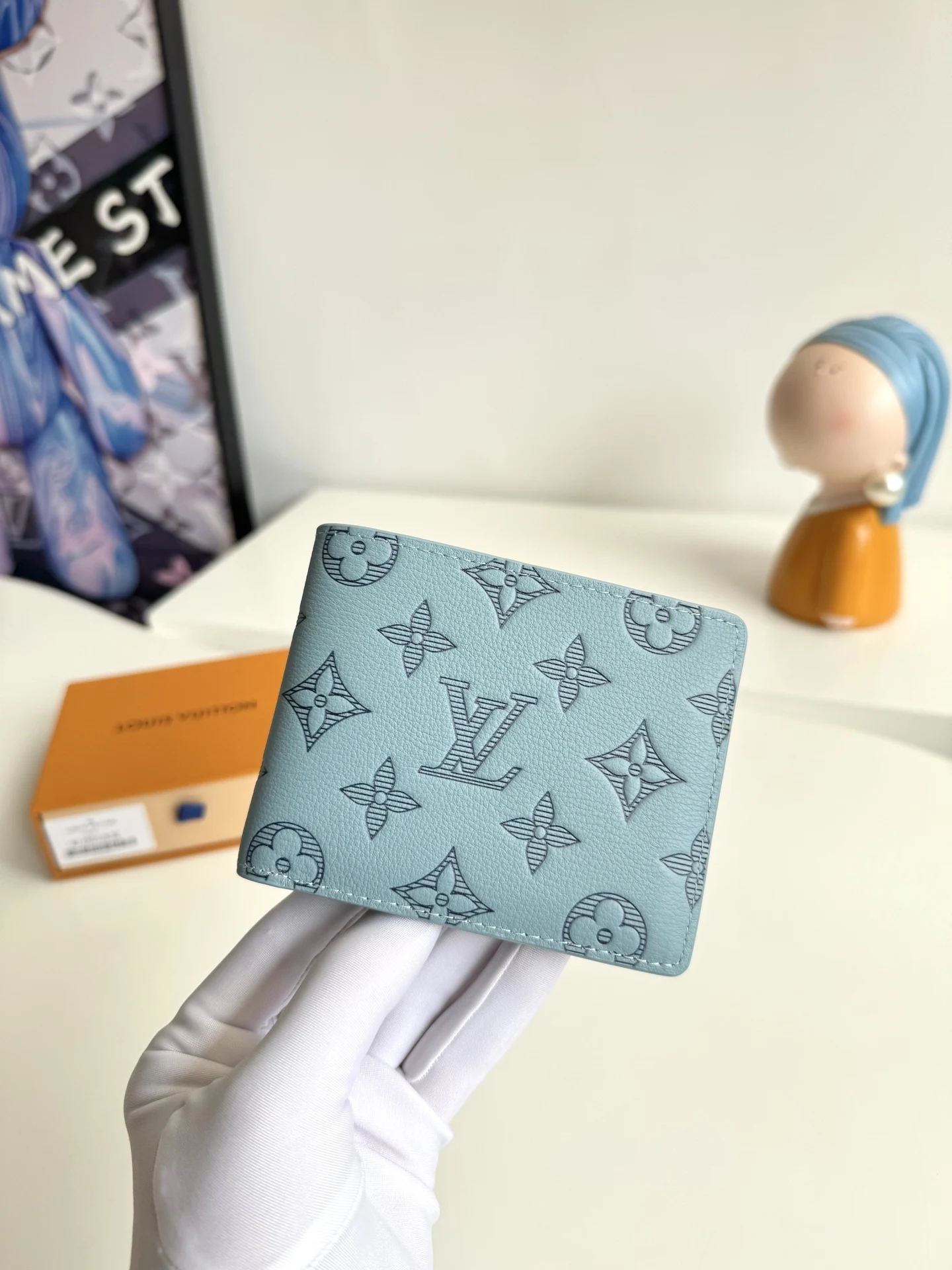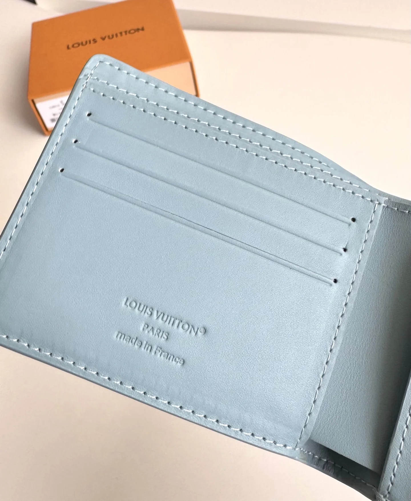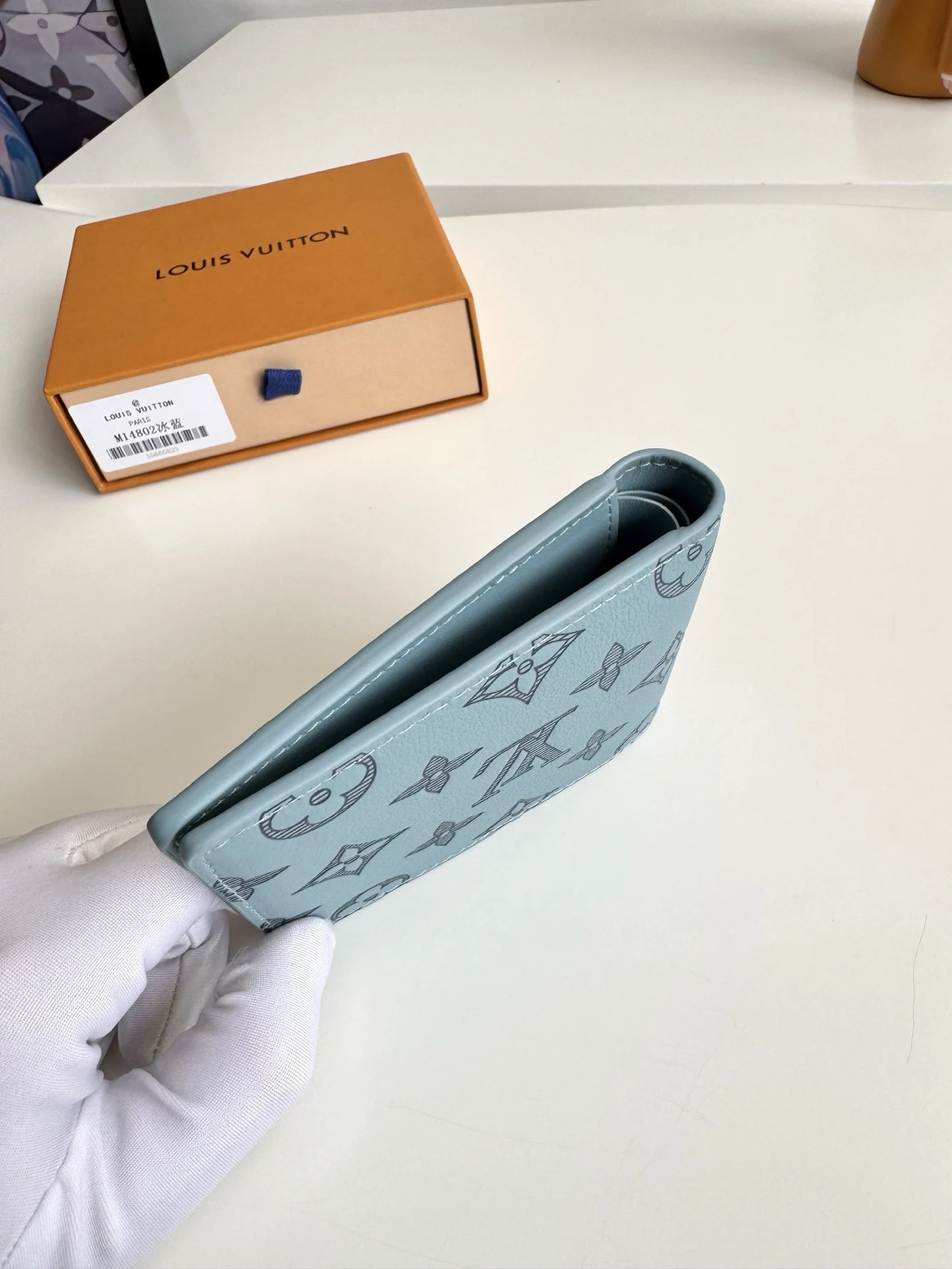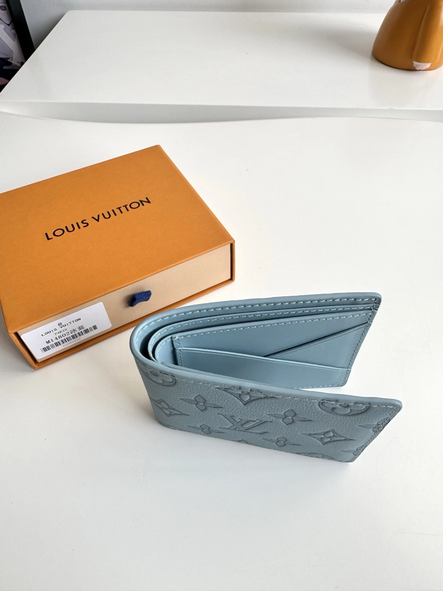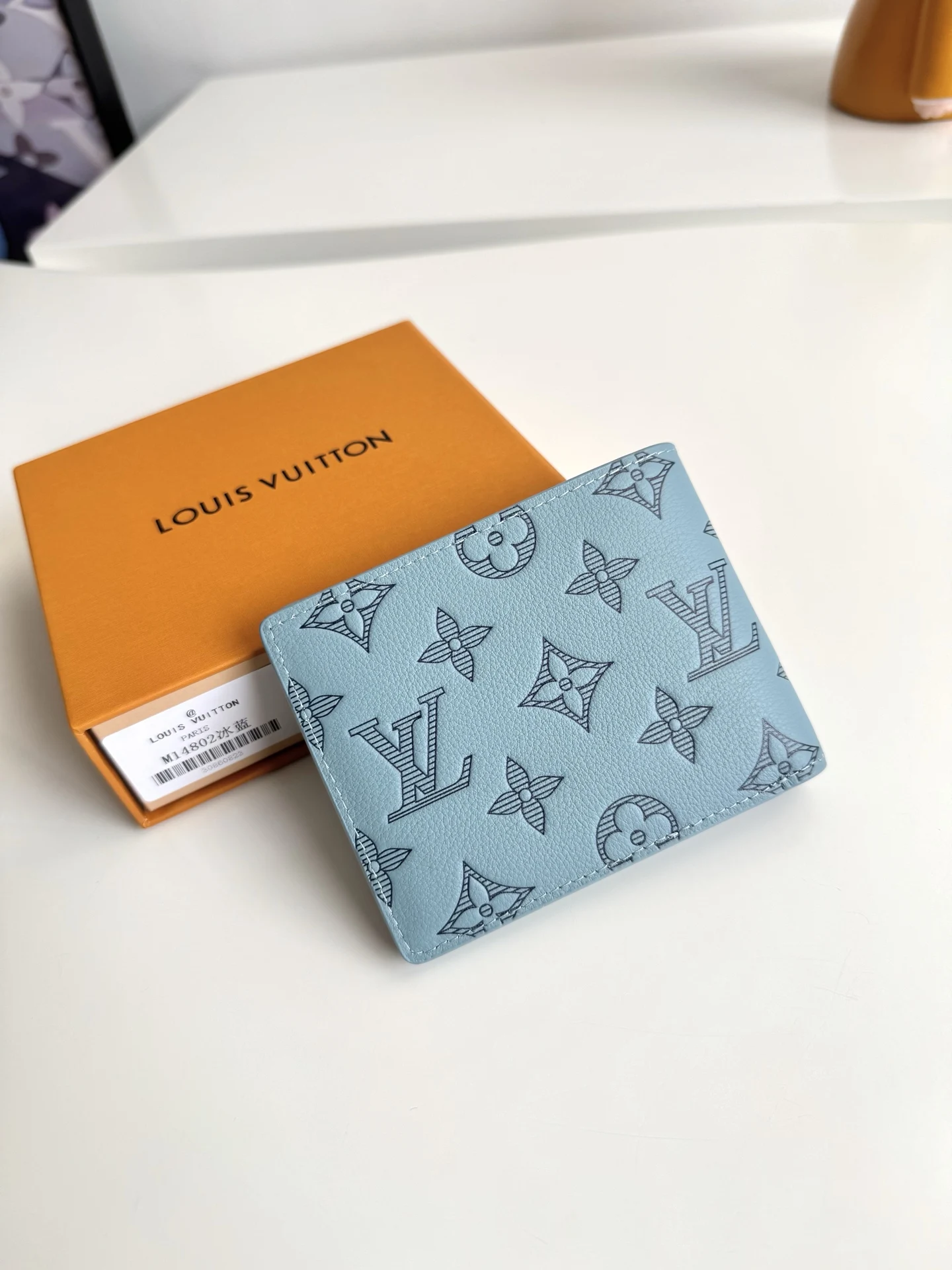 Original overseas order M14802 ice blue exclusive real shot! This Louis Vuitton Multiple wallet boasts a clean and simple design. The blue Monogram Shadow calf leather is exce..