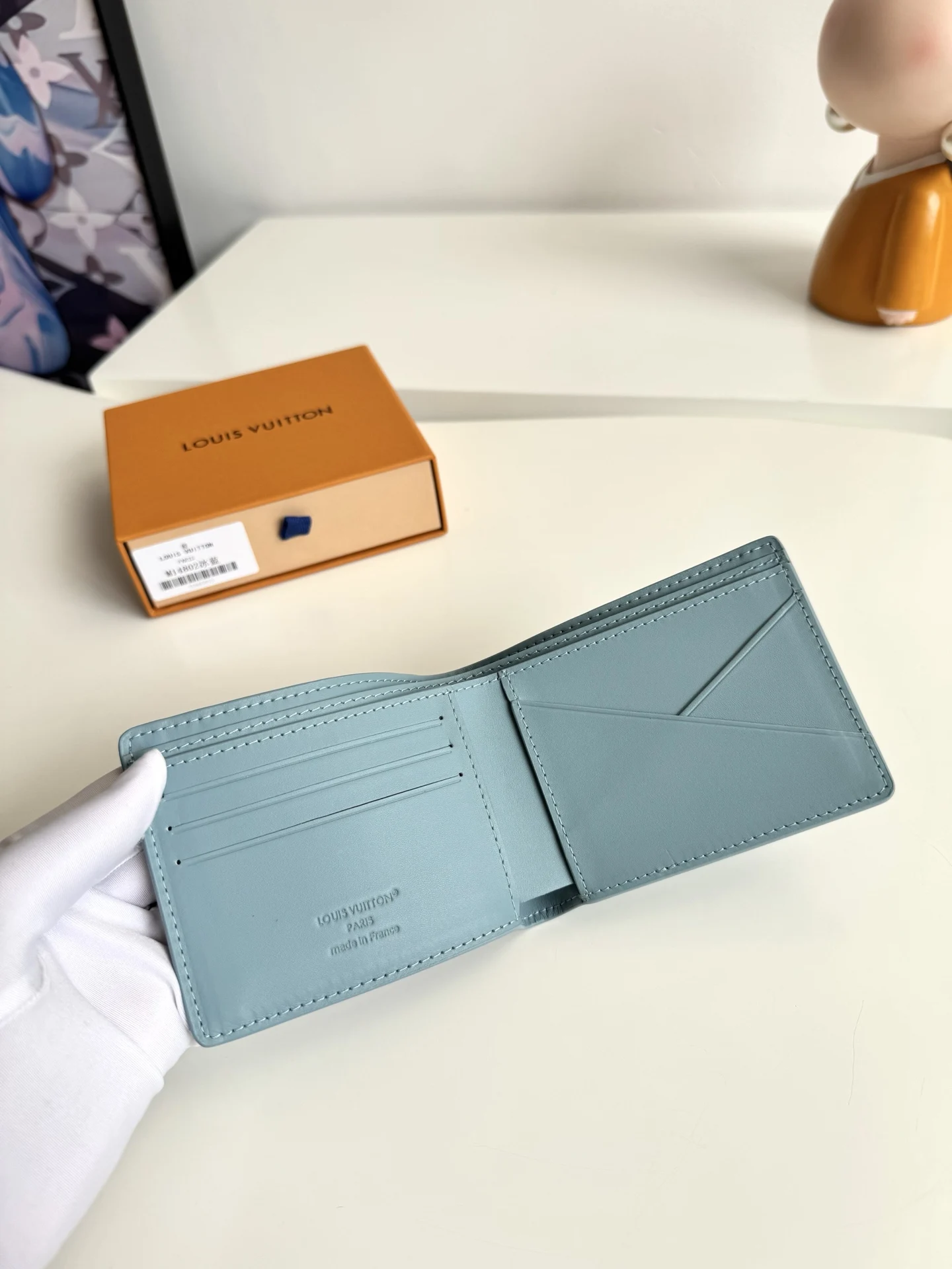 Original overseas order M14802 ice blue exclusive real shot! This Louis Vuitton Multiple wallet boasts a clean and simple design. The blue Monogram Shadow calf leather is exceptionally soft and adorned with the iconic Monogram embossing. Compact and highly portable, it features multiple credit card slots and compartments for bills and receipts, offering outstanding practicality. Dimensions: 11.5 x 9 x 1.5 cm