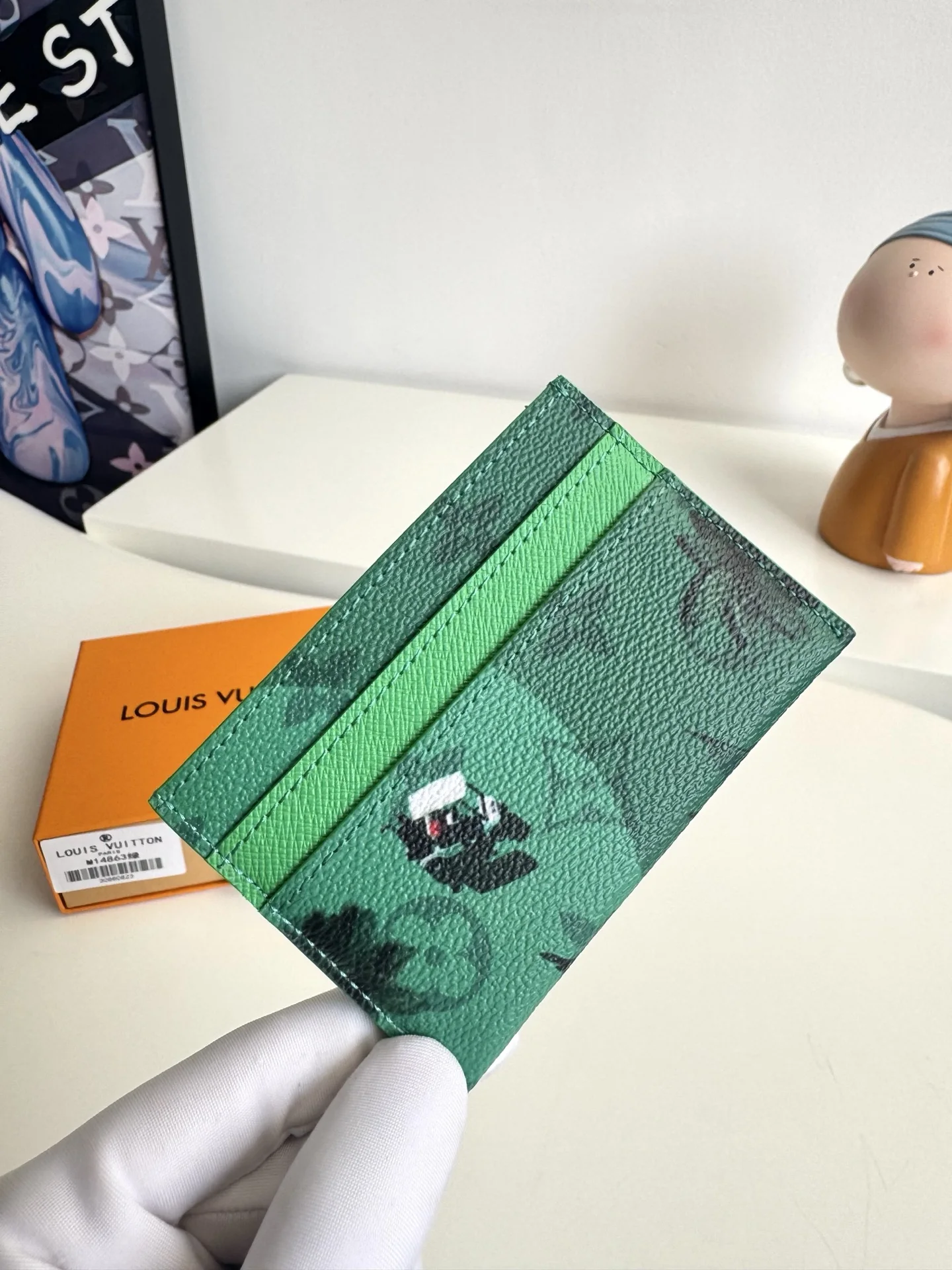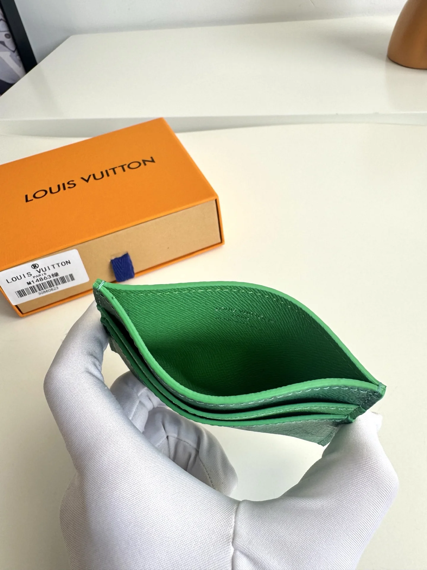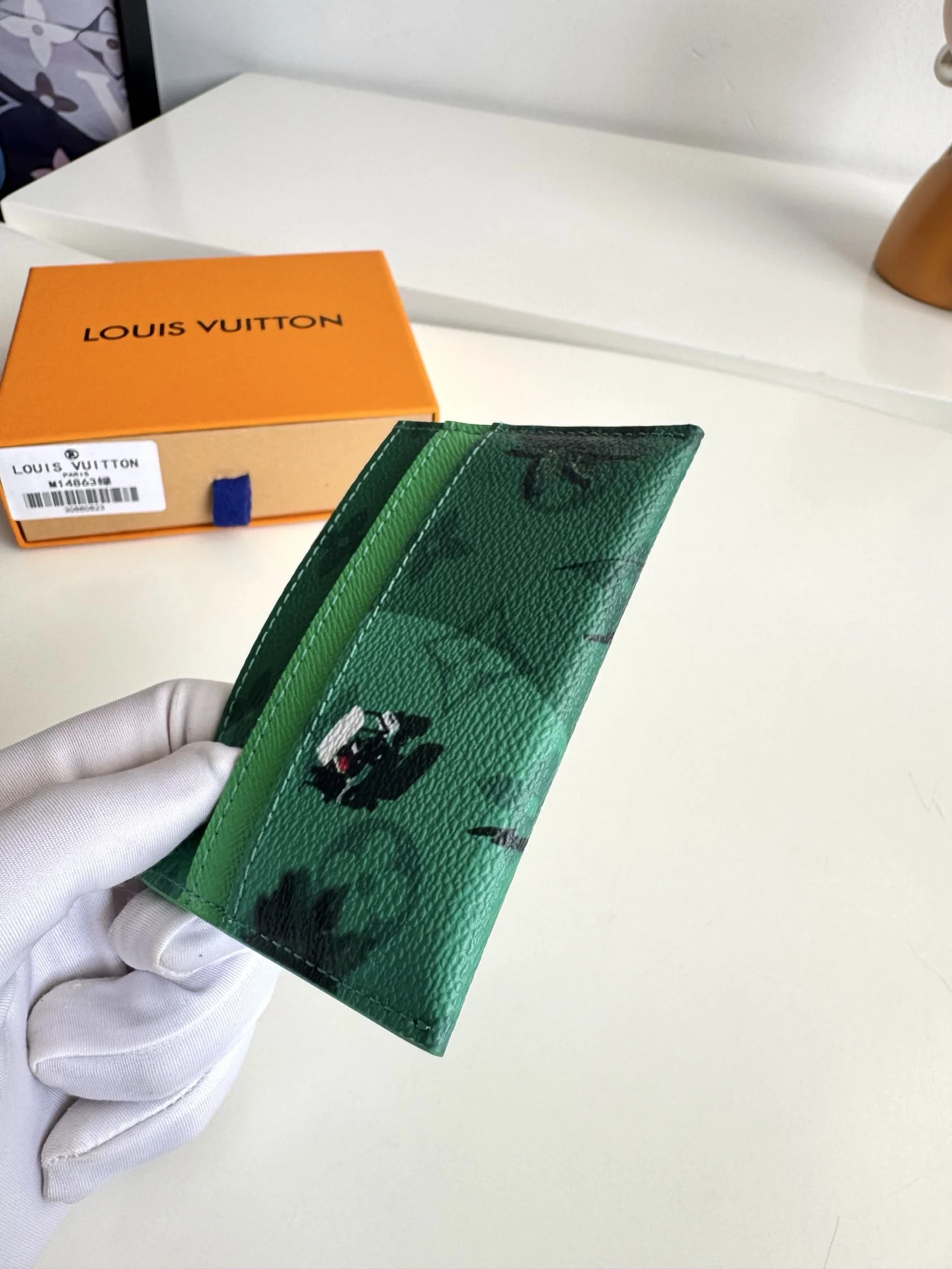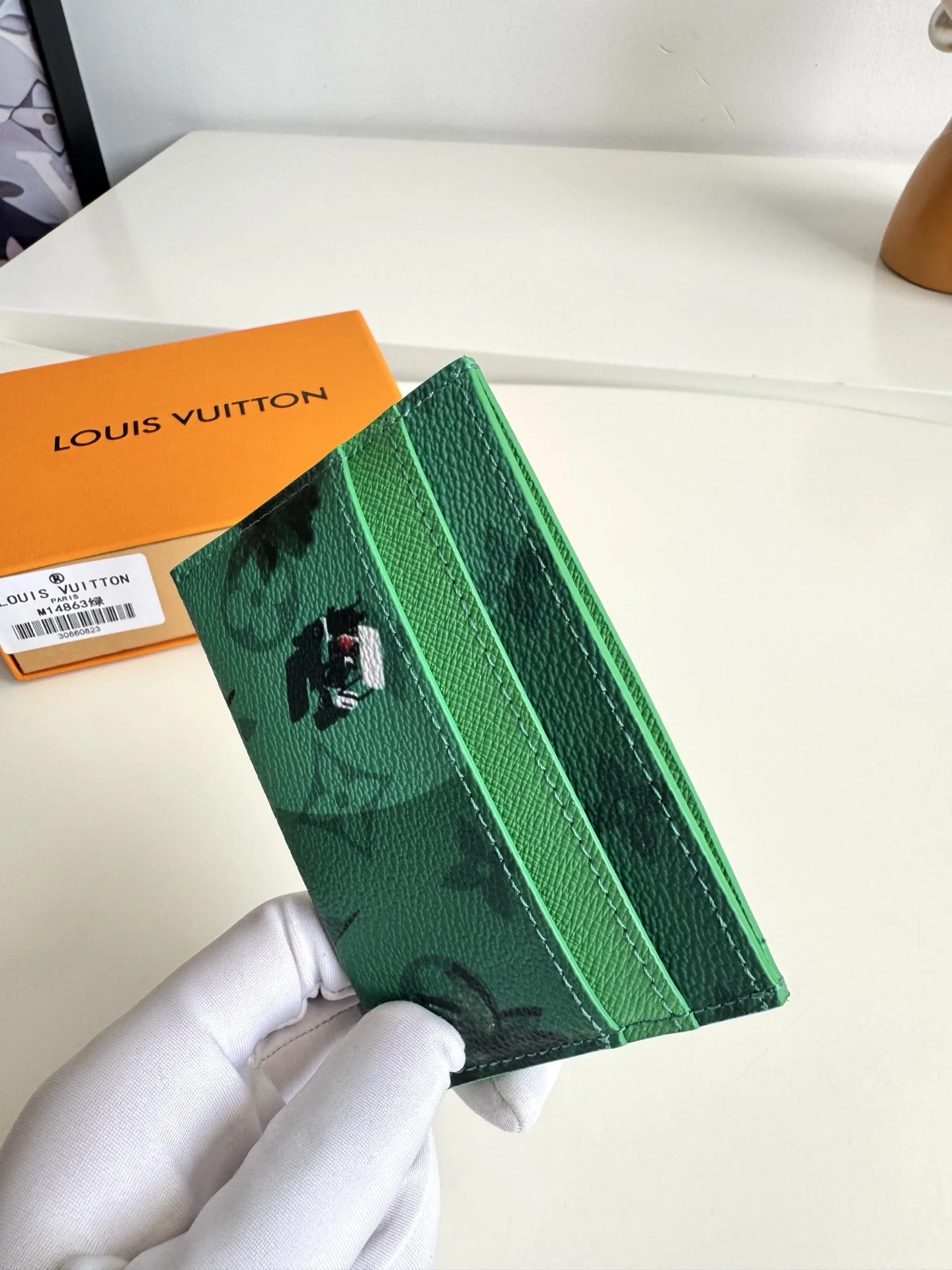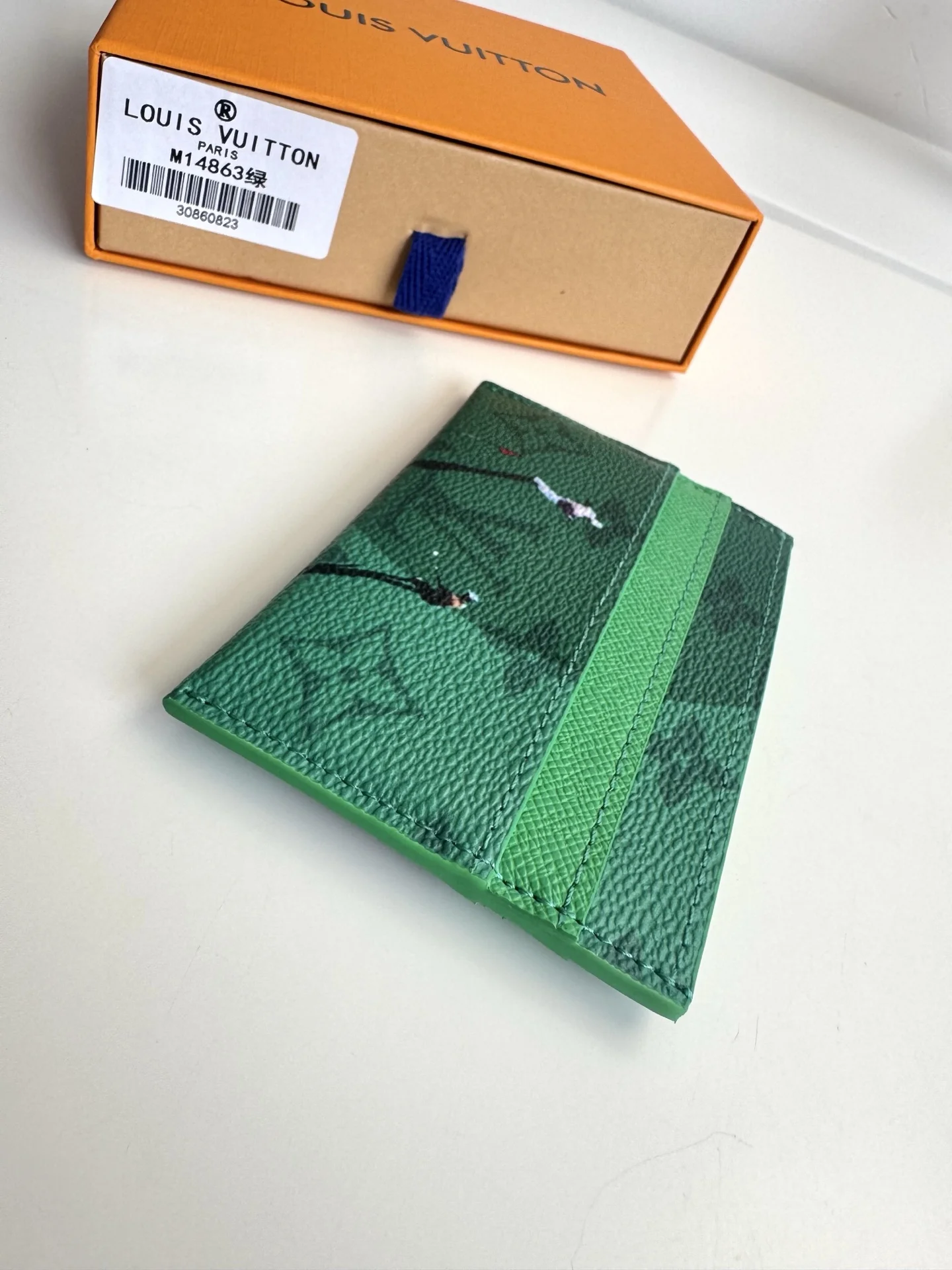 Overseas original M14863 green exclusive real shot! This Double card holder is part of the Father s Day collection, featuring a Colored Monogram canvas infused with a miniatu..