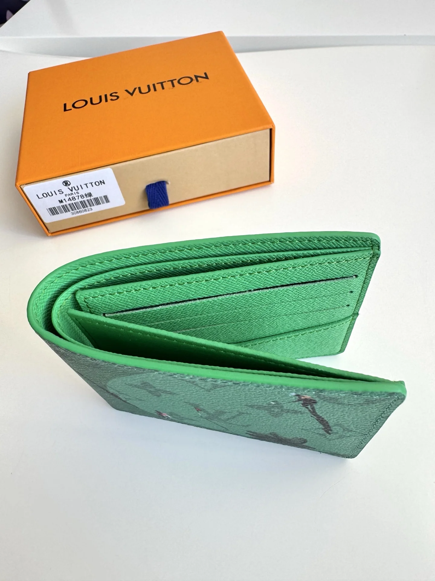 Exclusive original overseas M14878 green in authentic photography! This Slender bag is part of the Father s Day collection, featuring a subtle Monogram pattern presented in Co..