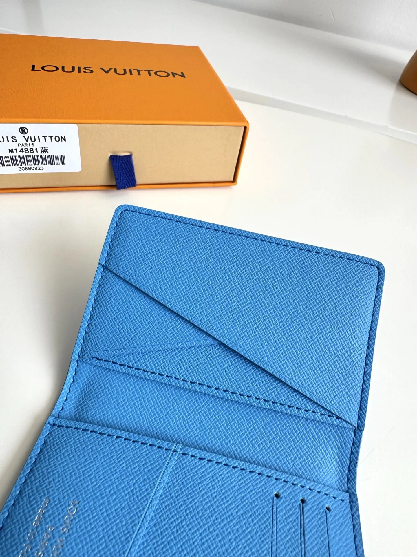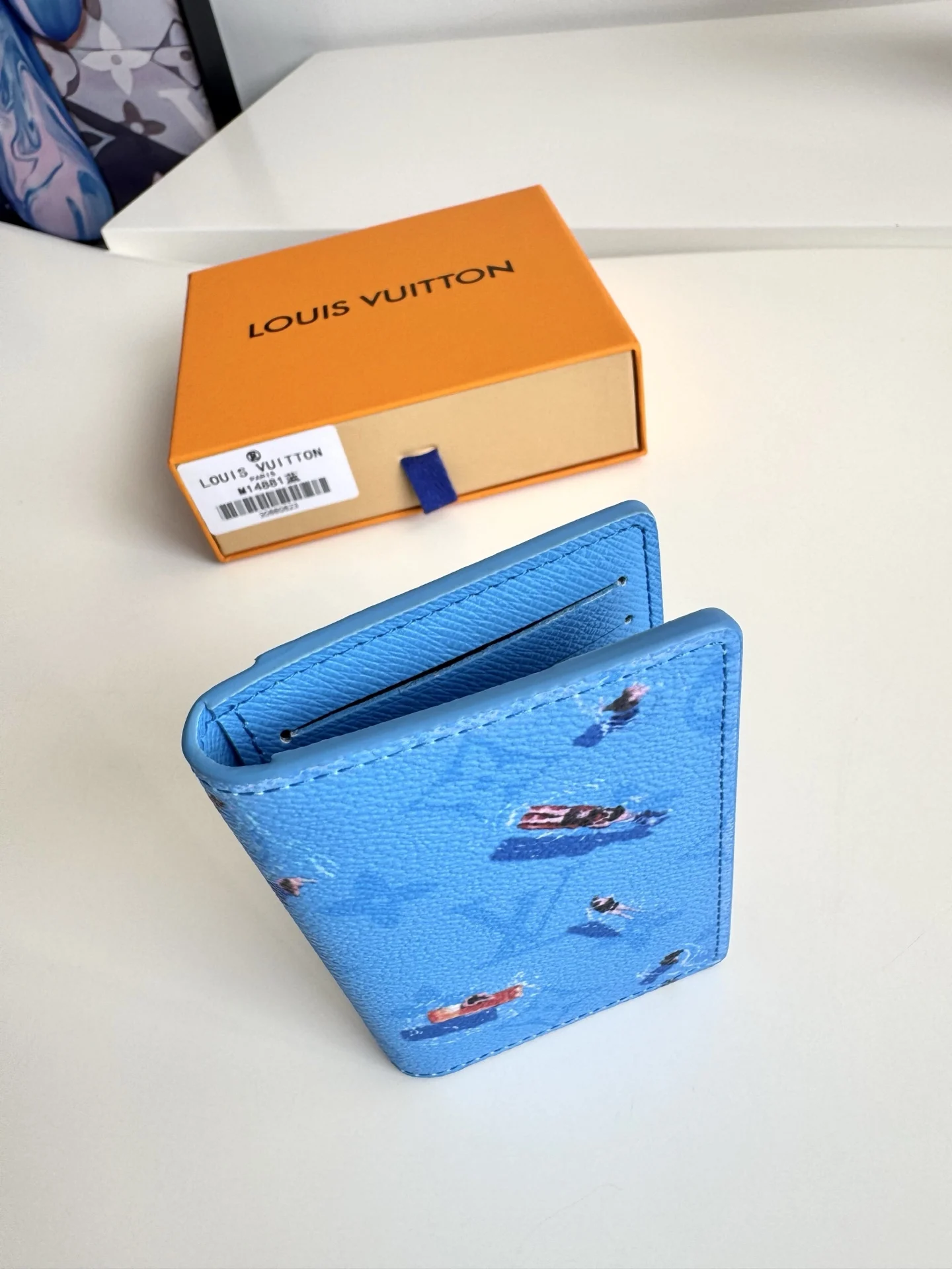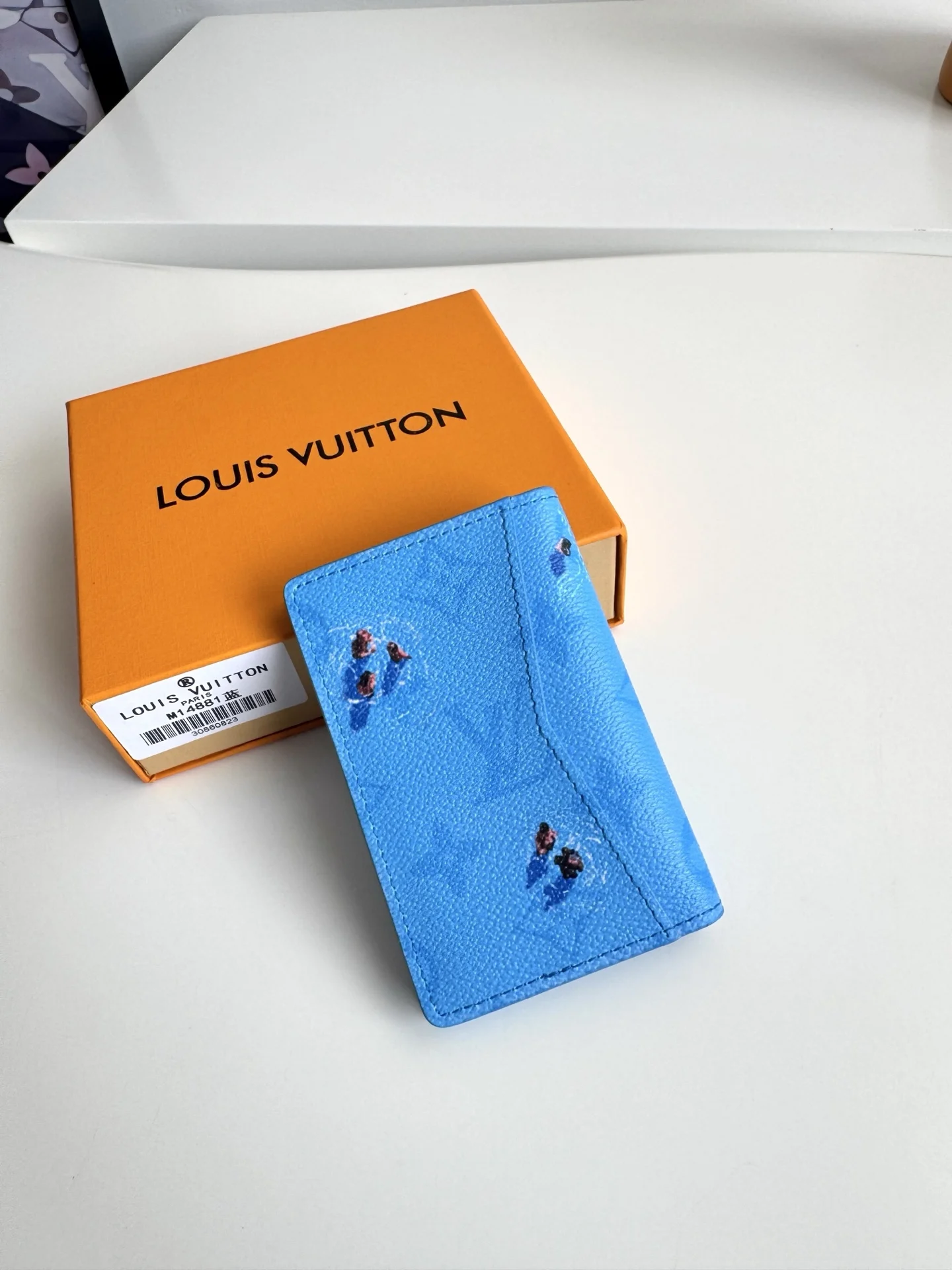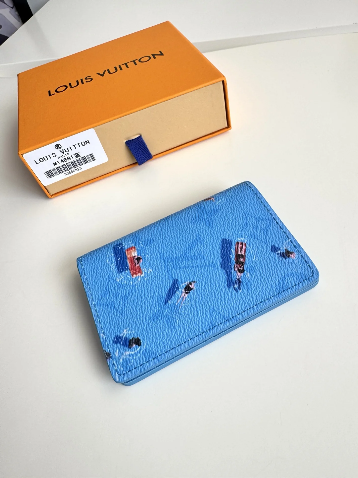 Overseas original M14881 blue exclusive real shot! This pocket wallet is made of Colored Monogram canvas, featuring realistic athlete patterns and silhouettes transformed into miniature sports scene prints, complementing the classic Monogram. The card slots, inner pocket, and outer pocket highlight functional considerations, making it another great Father s Day gift. Size: 11×7.5×1cm