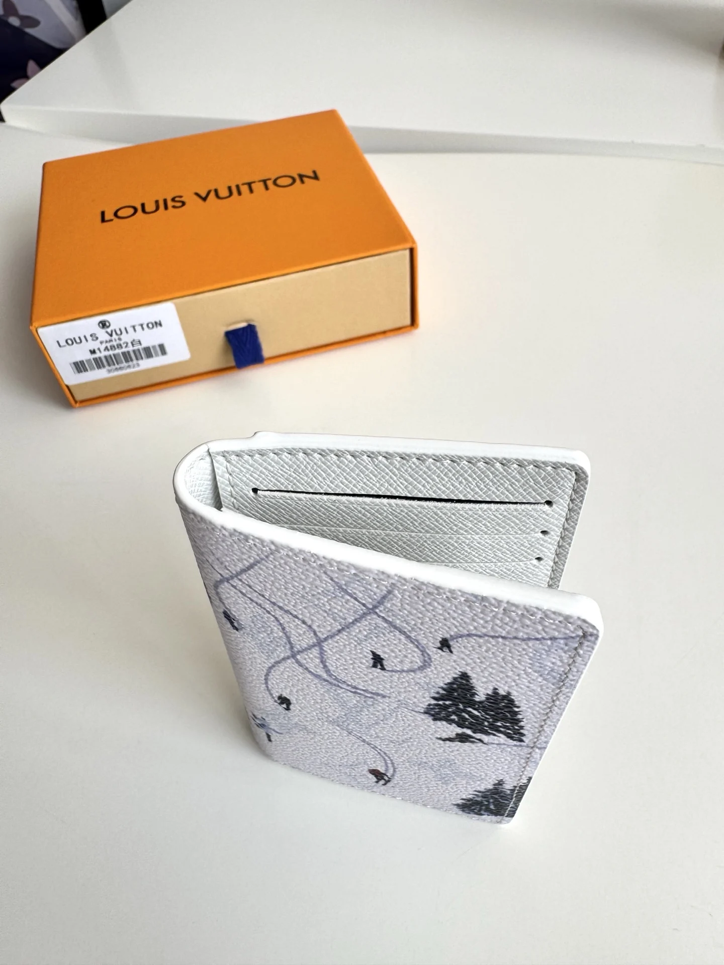 Overseas original M14882 white exclusive real shot! This pocket wallet is made of Colored Monogram canvas, featuring realistic athlete patterns and silhouettes transformed into miniature sports scene prints, complementing the classic Monogram. The card slots, inner pocket, and outer pocket highlight functional considerations, making it another great Father s Day gift. Size: 11×7.5×1cm