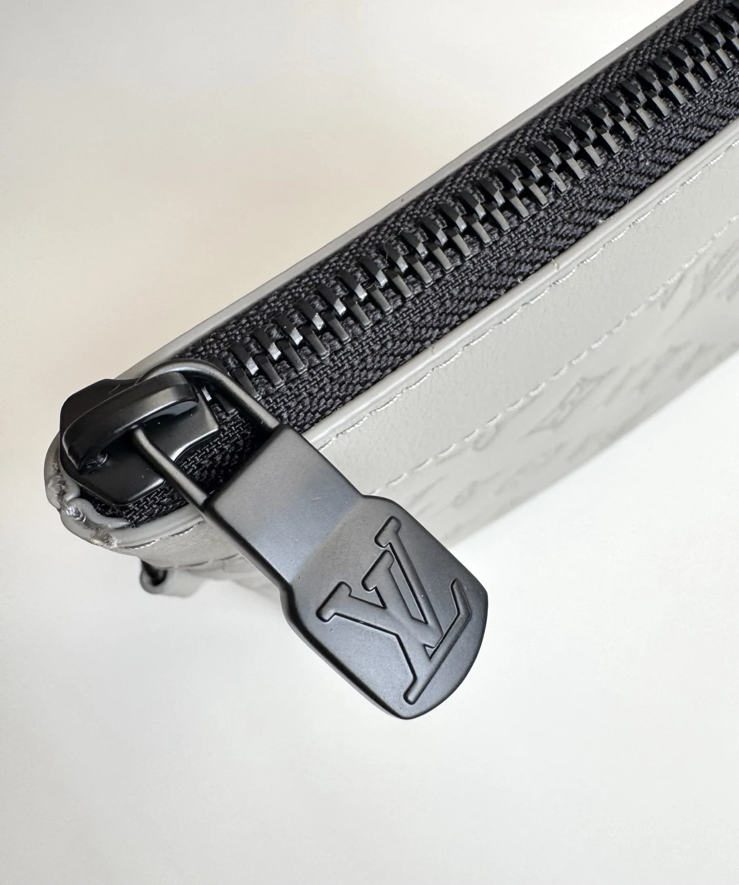 Exclusive real shot of overseas original M14914 in Ice Grey! This Pochette To-Go clutch is made from Monogram Shadow embossed leather, featuring a slim silhouette, exquisite m..