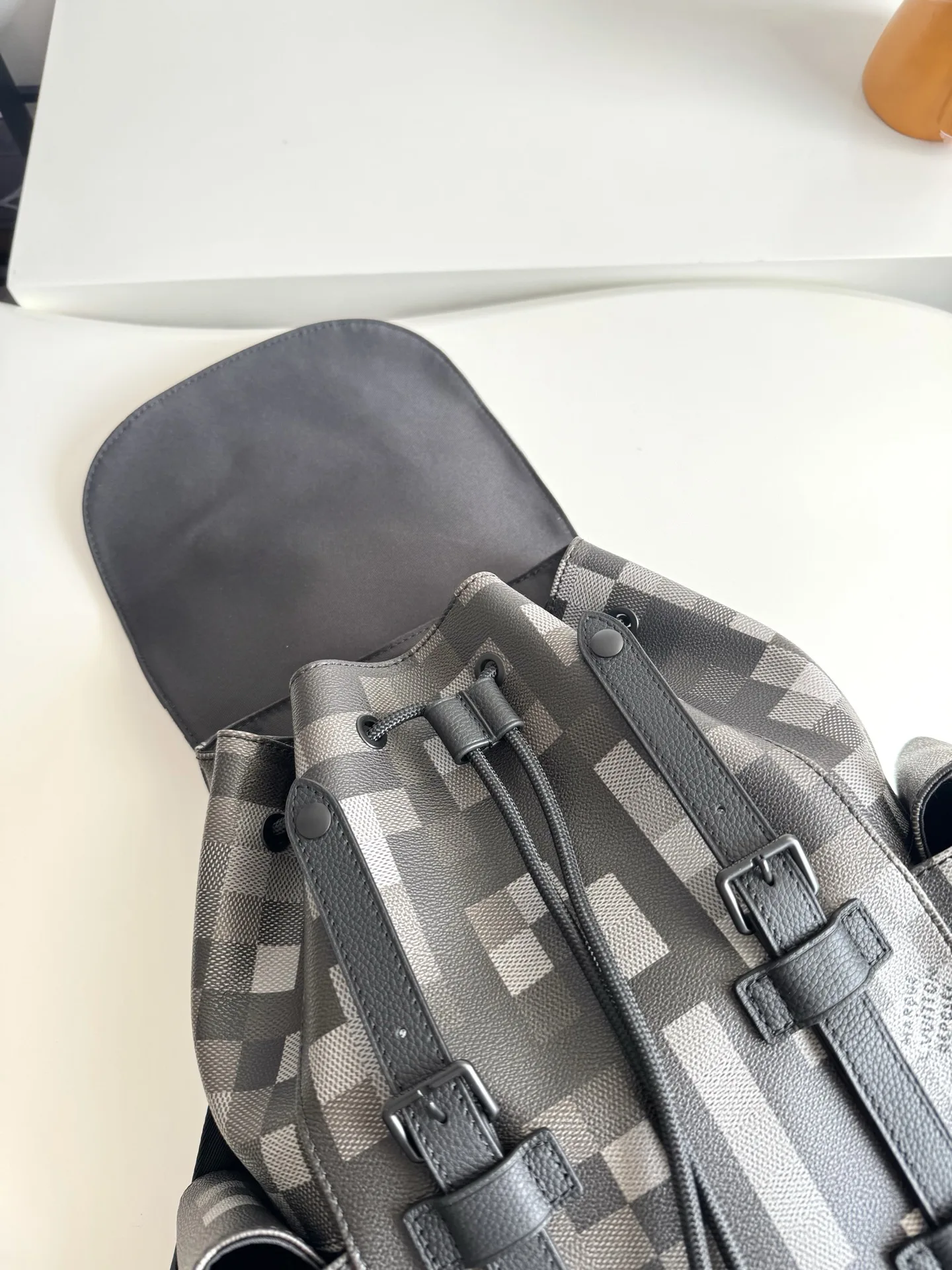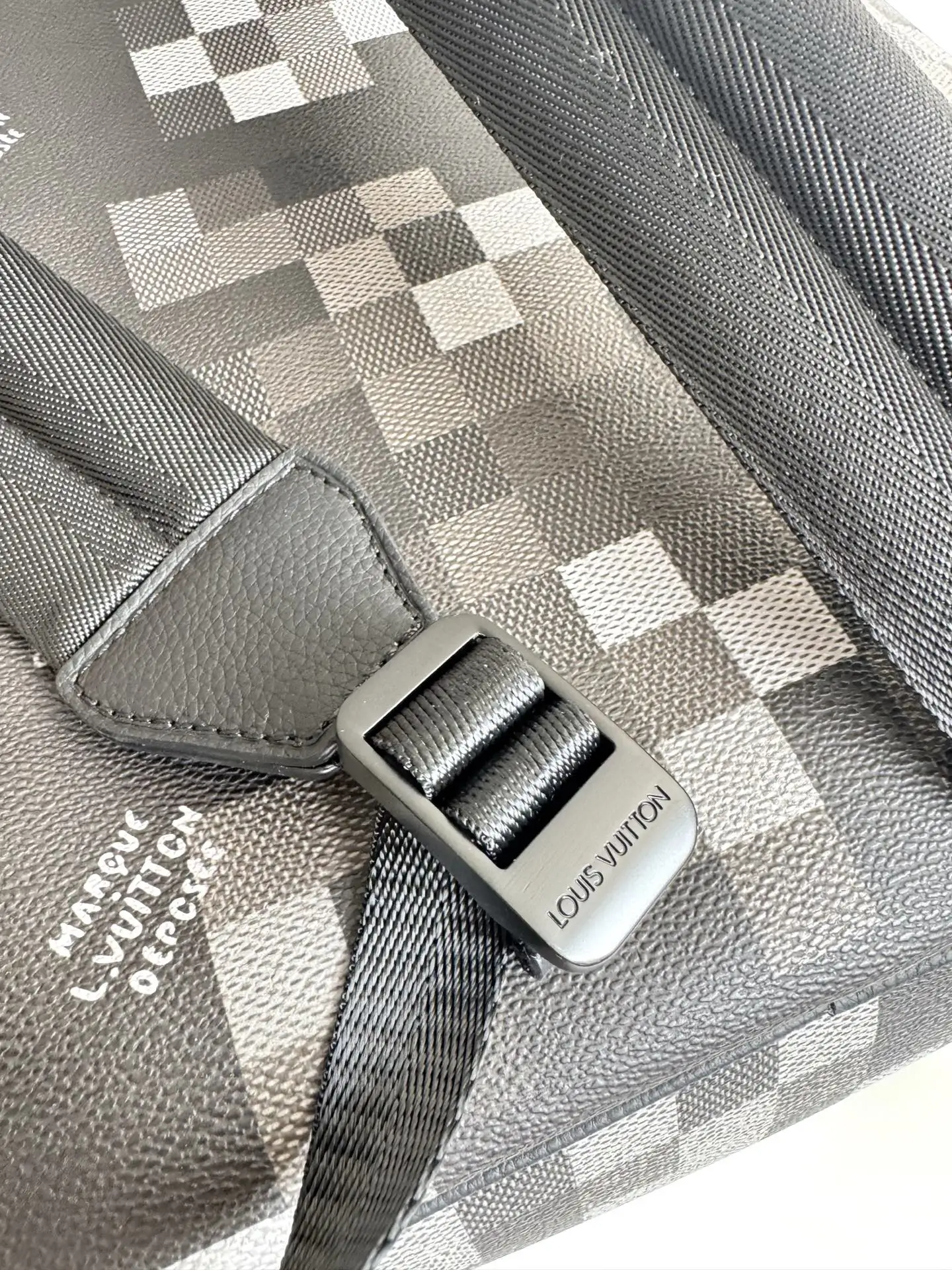 Exclusive real shots of the overseas original M14952! This Christopher medium backpack is crafted from Damoflage Black canvas, creating a modern and sophisticated silhouette, and reconstructs the classic Damier pattern with a pixel effect. The Marque L. Vuitton Deposee logo is also integrated, vividly interpreting ultra-modern style. Dimensions: 44×38×12.5cm