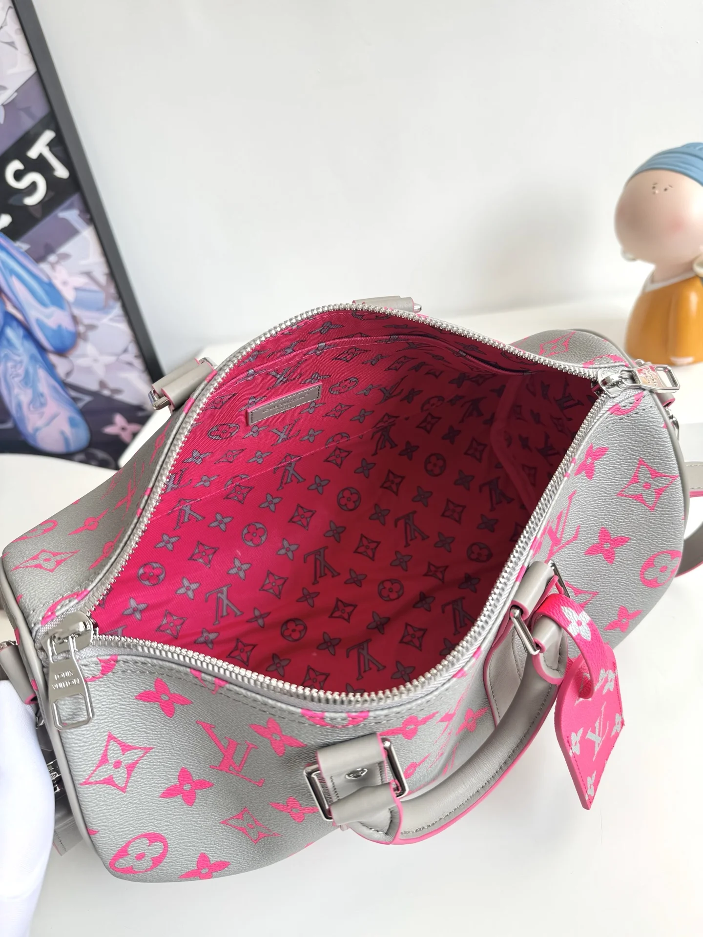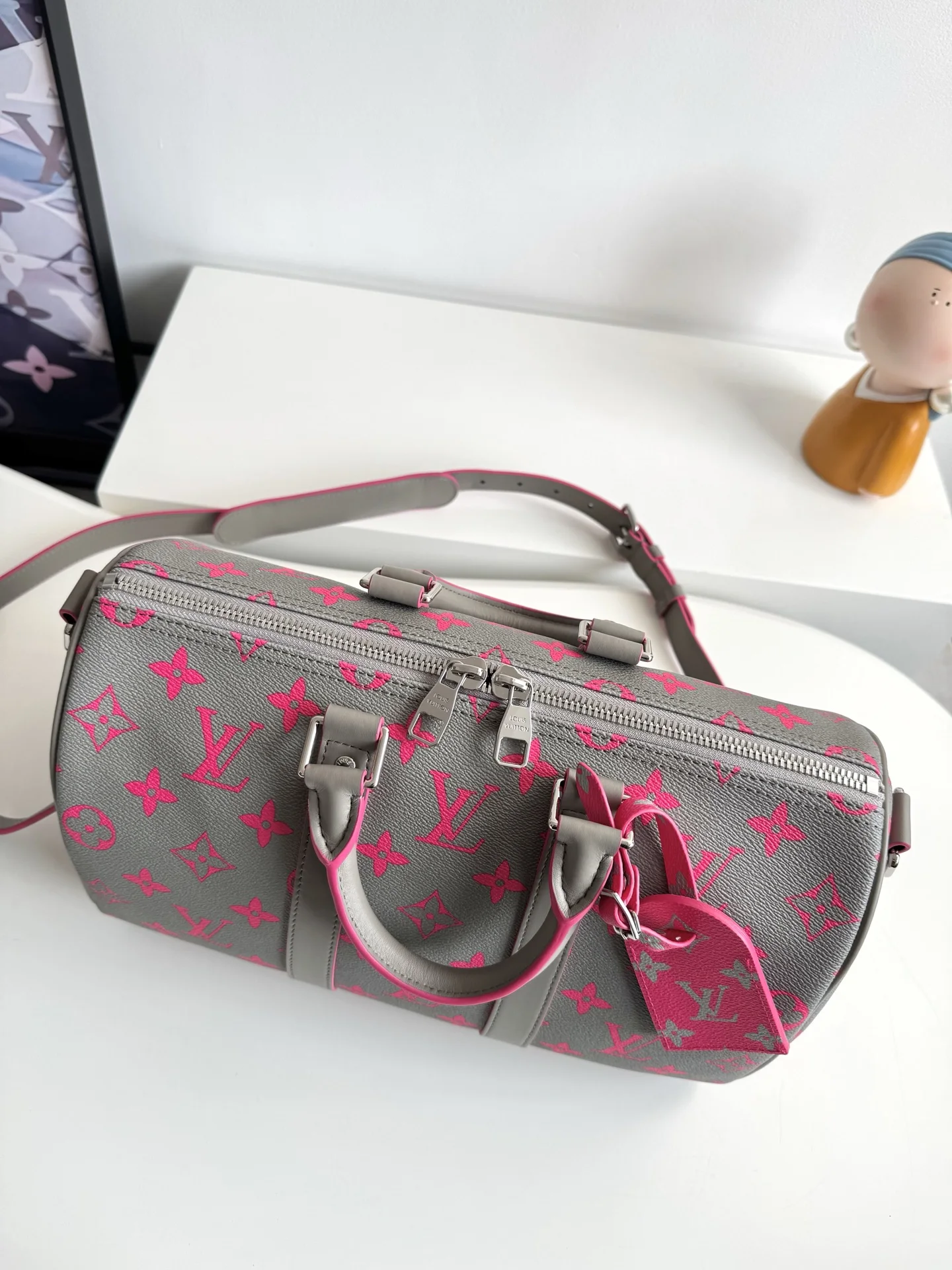 Exclusive real shot of overseas original M15023! The medium Keepall Bandouliere 35 bag is made of Monogram Glow coated canvas, complemented by leather trim. The vibrant color ..