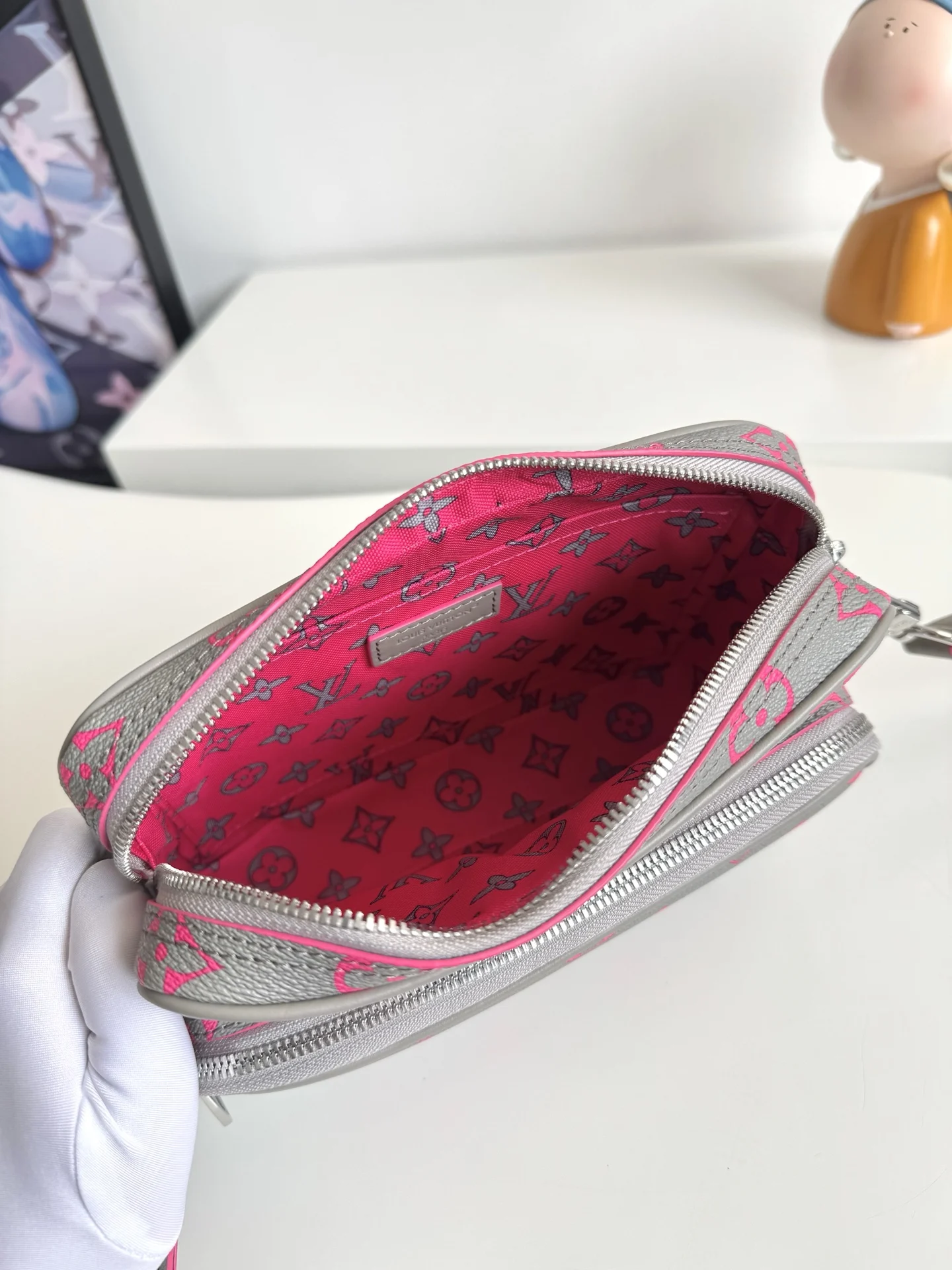 Exclusive live shoot of the overseas original M15024! The iconic Nil bag, one of the 1980s shapes revived by Pharrell Williams, is made from Monogram Glow canvas. The colorful pattern is inspired by the neon lights of Miami. This retro design features a main compartment and a front zip pocket. The detachable top handle and detachable leather shoulder strap provide carrying options. Dimensions: 25×17.5×11cm