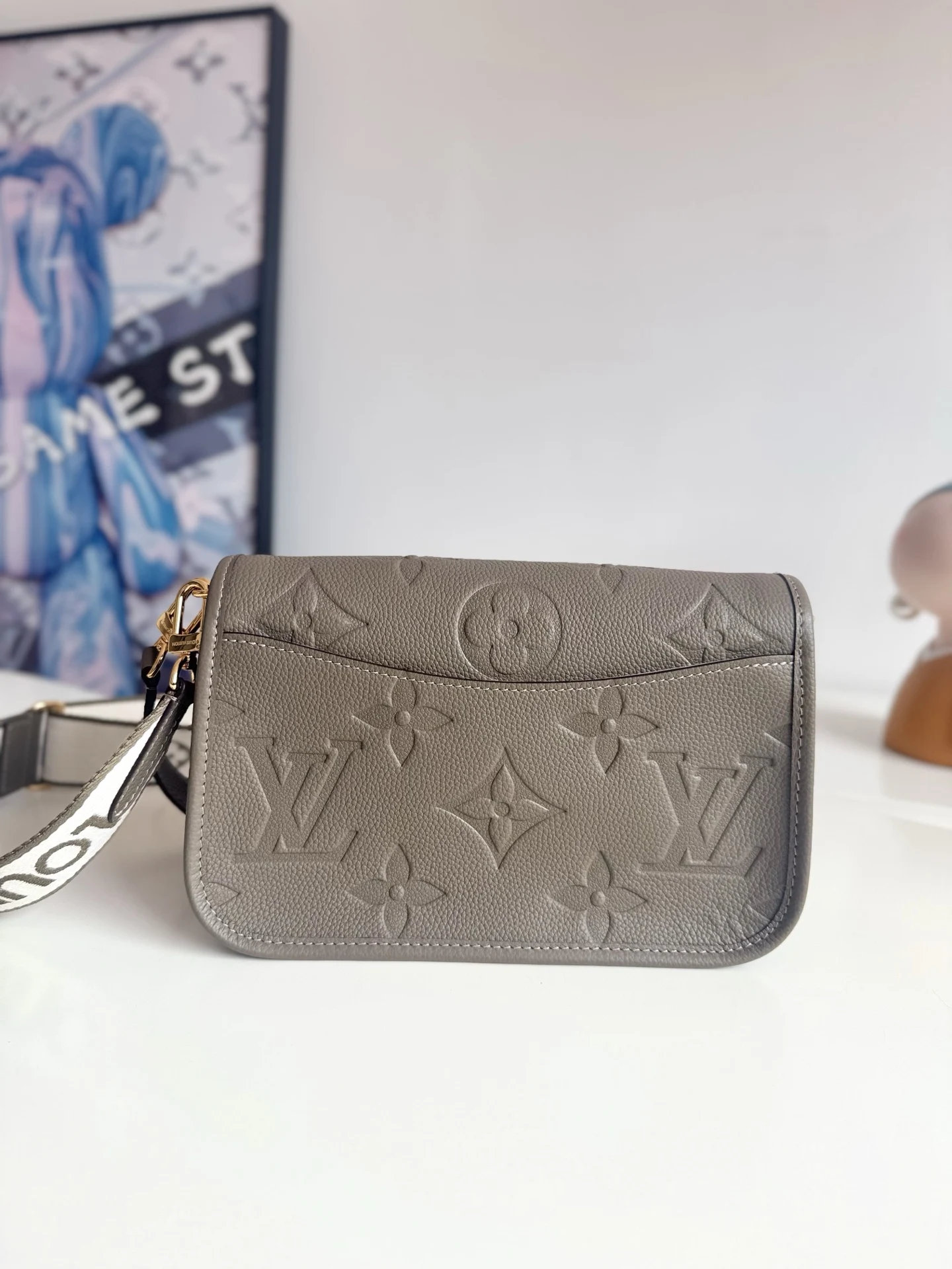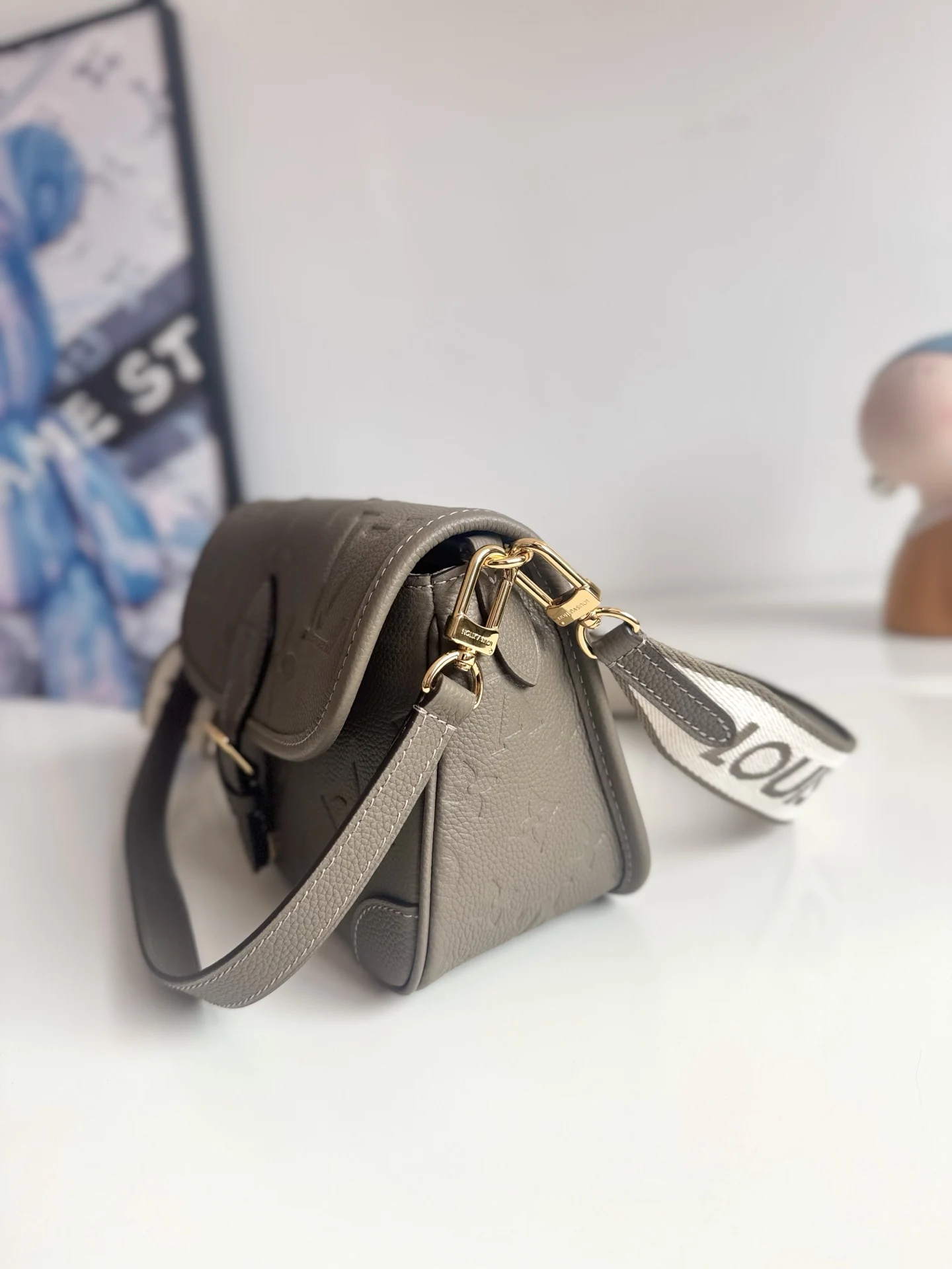 Original overseas order M15049 exclusive real shots! This exquisite Diane handbag is crafted from the brand s iconic Monogram Empreinte leather in this season s Smoke color. The handbag is adorned with gold-tone hardware and features a contrasting detachable textile strap for added elegance. With its elegant design and spacious interior, it can easily accommodate everyday essentials and features an internal zipped pocket. It can also be carried in a variety of ways. Dimensions: 24×15×9cm