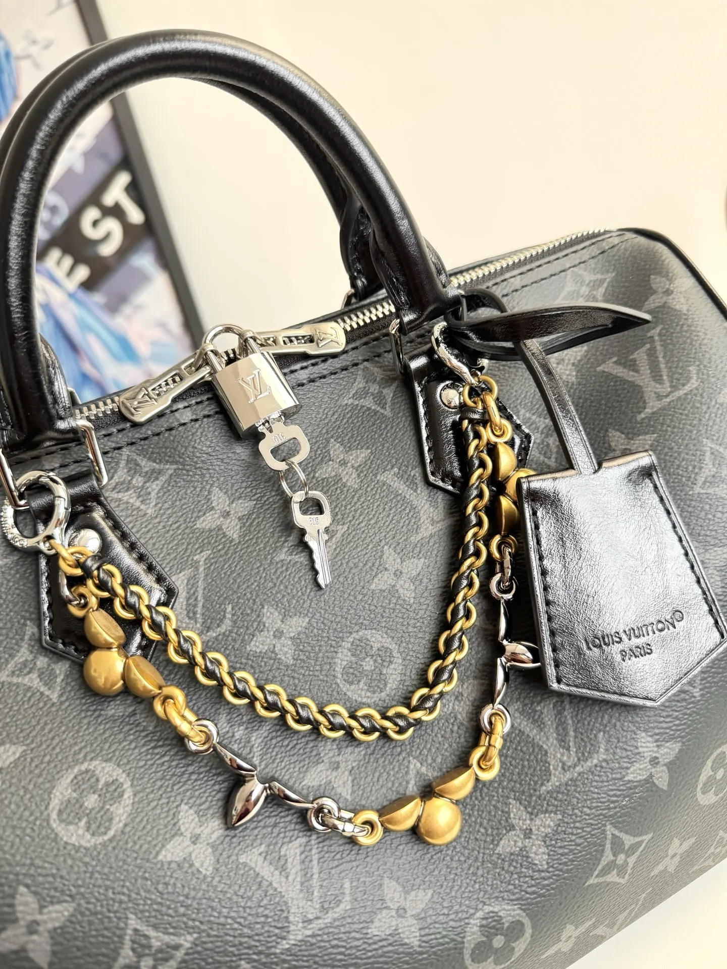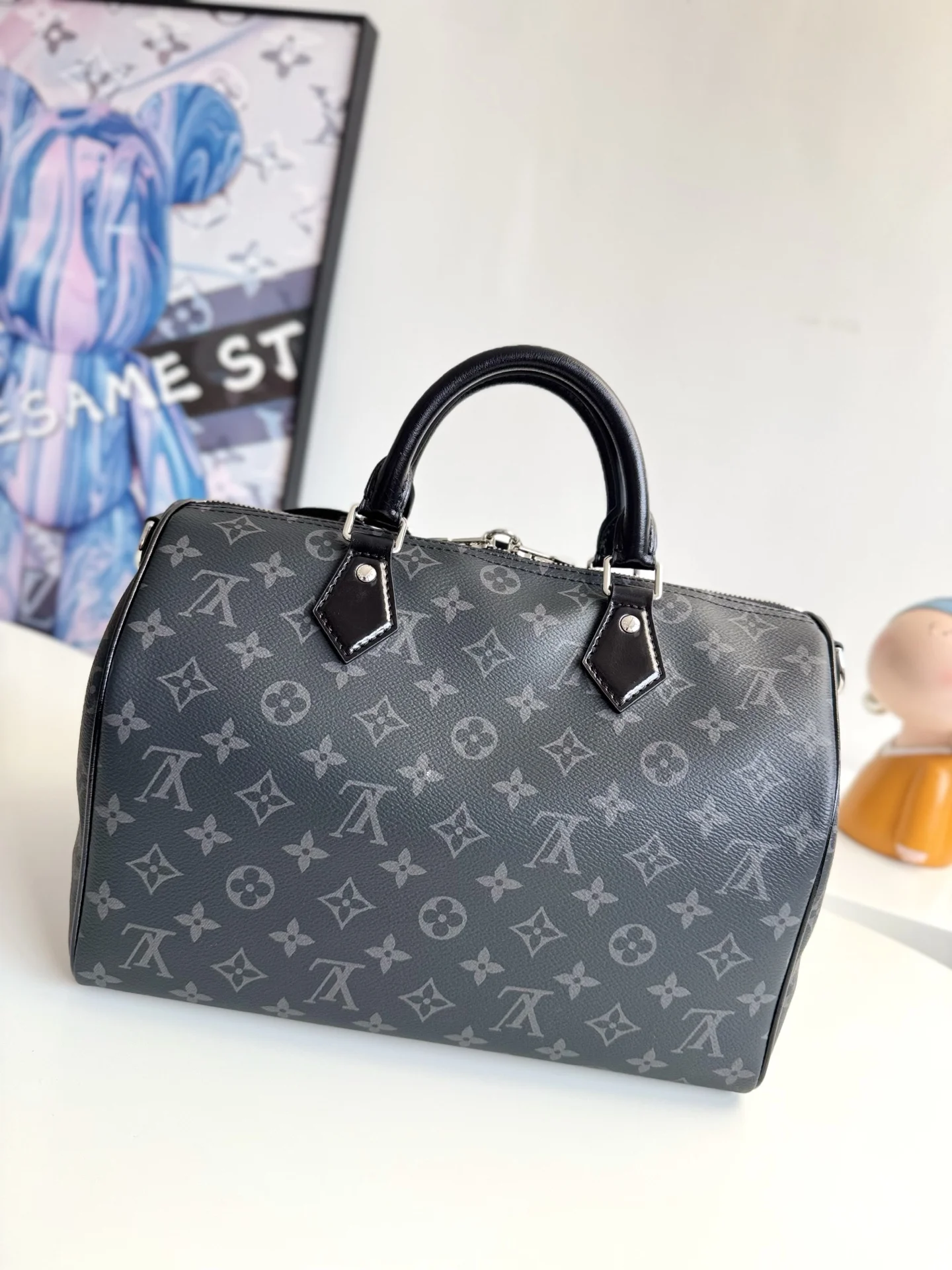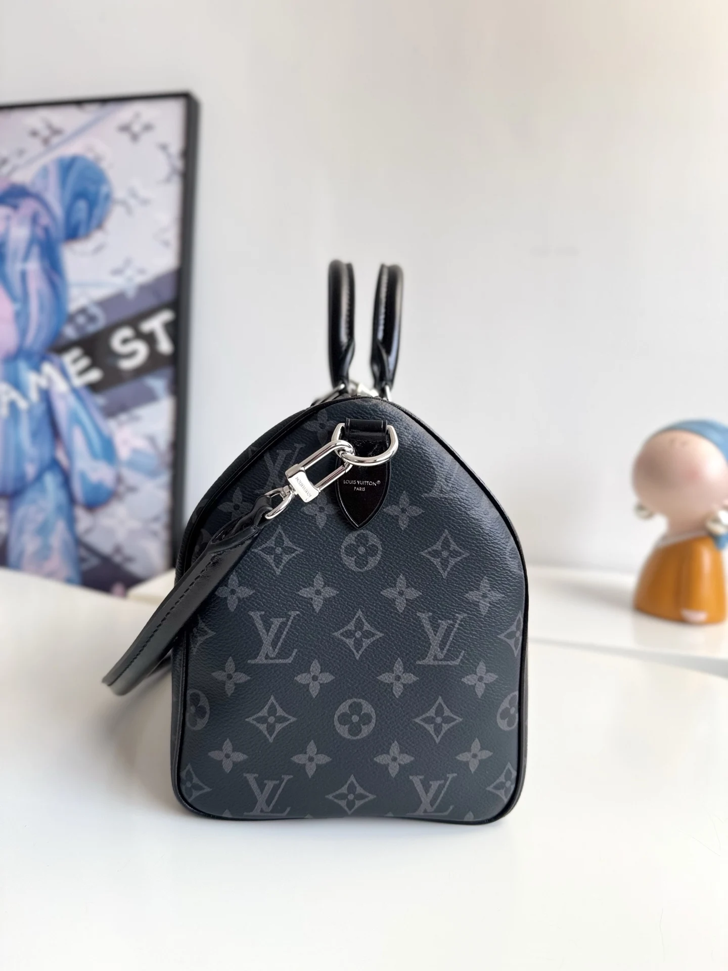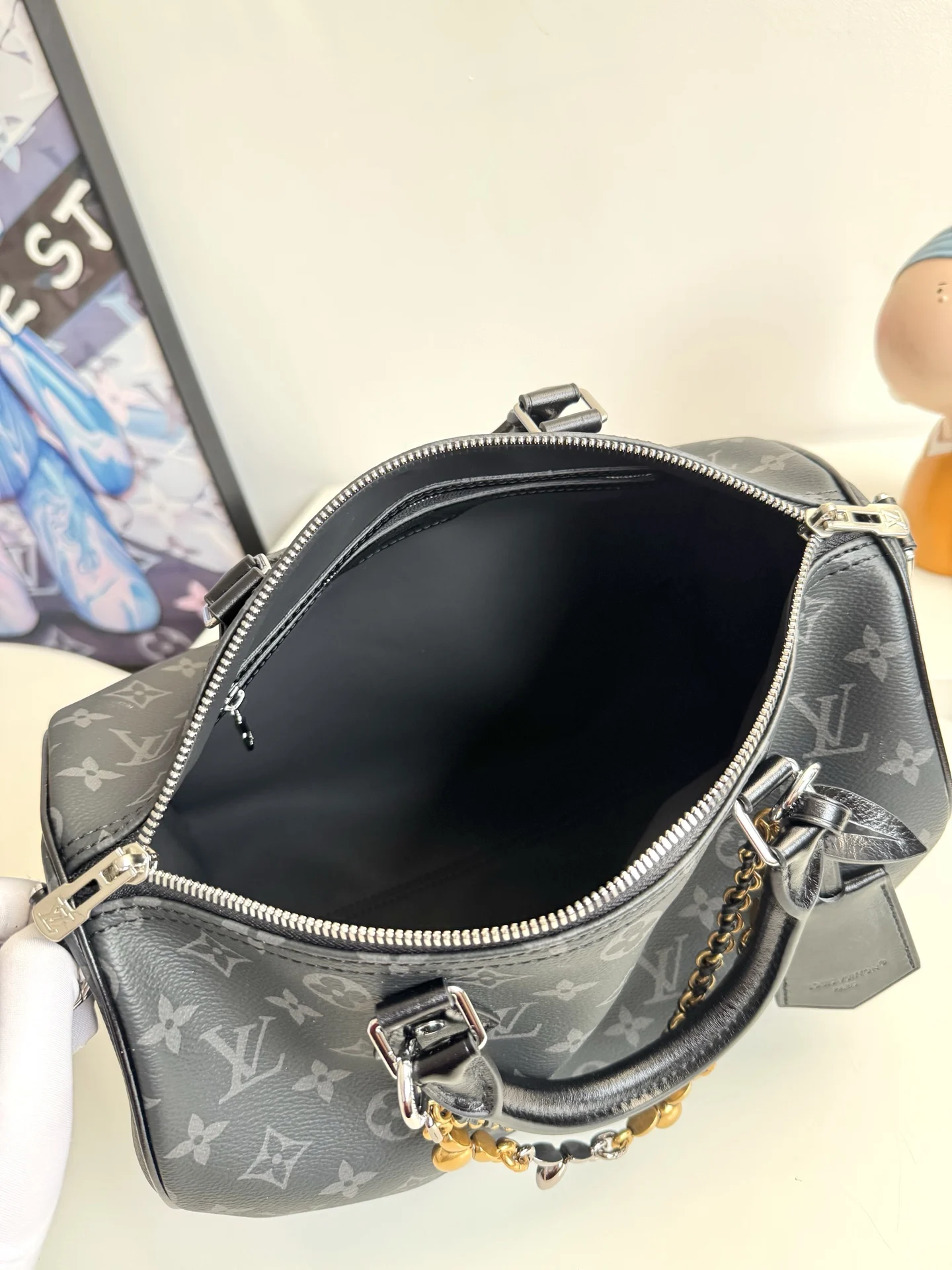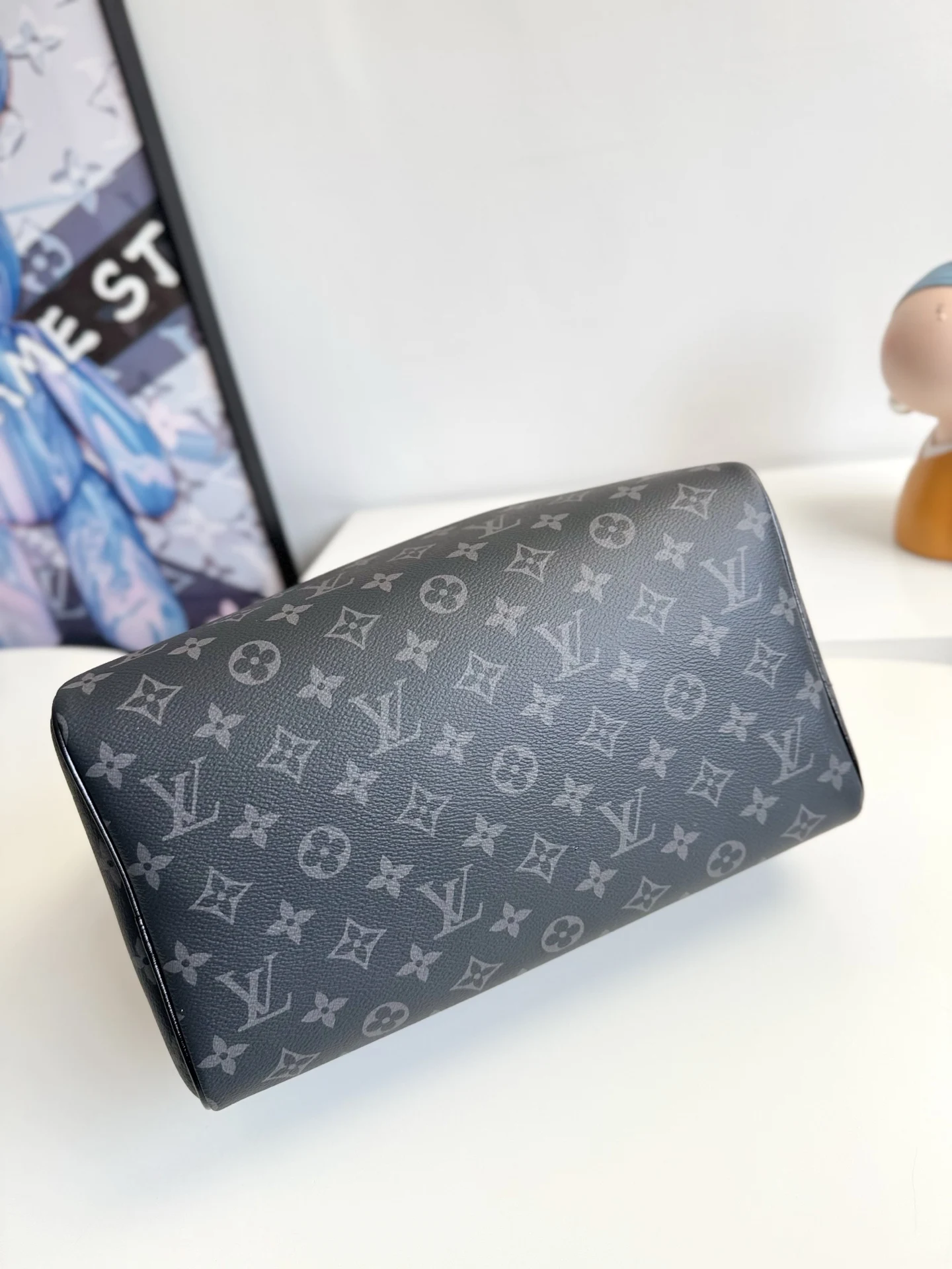 Exclusive real shot of the overseas original M15102! This Speedy Soft 30 handbag is from the LV Ski collection, featuring a classic design refreshed with Monogram Eclipse canvas. The double chain, pleated leather key pouch, and iconic padlock highlight exquisite details, while the appropriate size accommodates a tablet and other daily essentials. Dimensions: 30×21×17cm