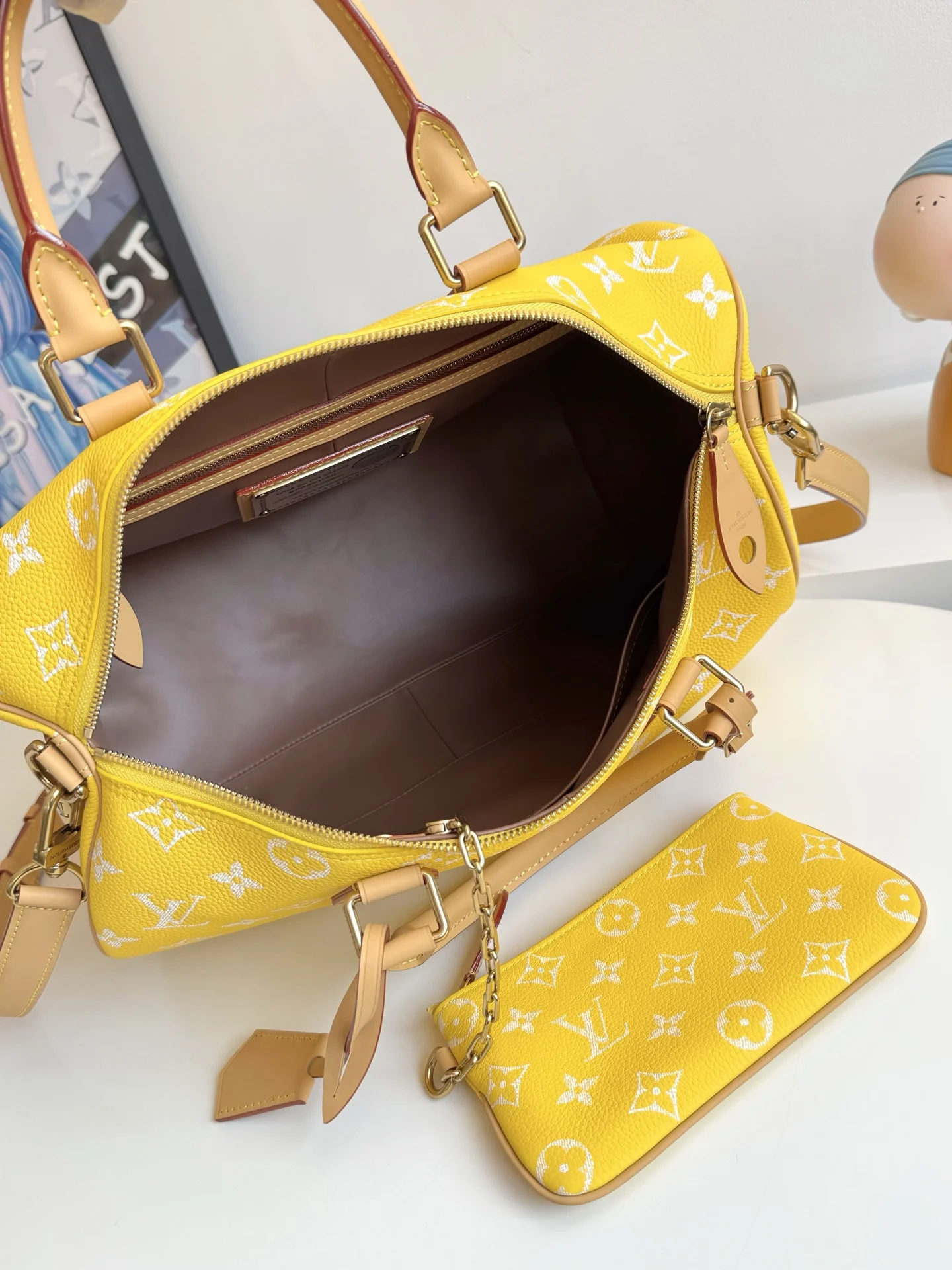 Exclusive live shoot of the overseas original M22419! This Speedy P9 Bandouliere 40 Monogram Leather handbag is wrapped in soft grain cowhide leather with a lambskin lining, s..