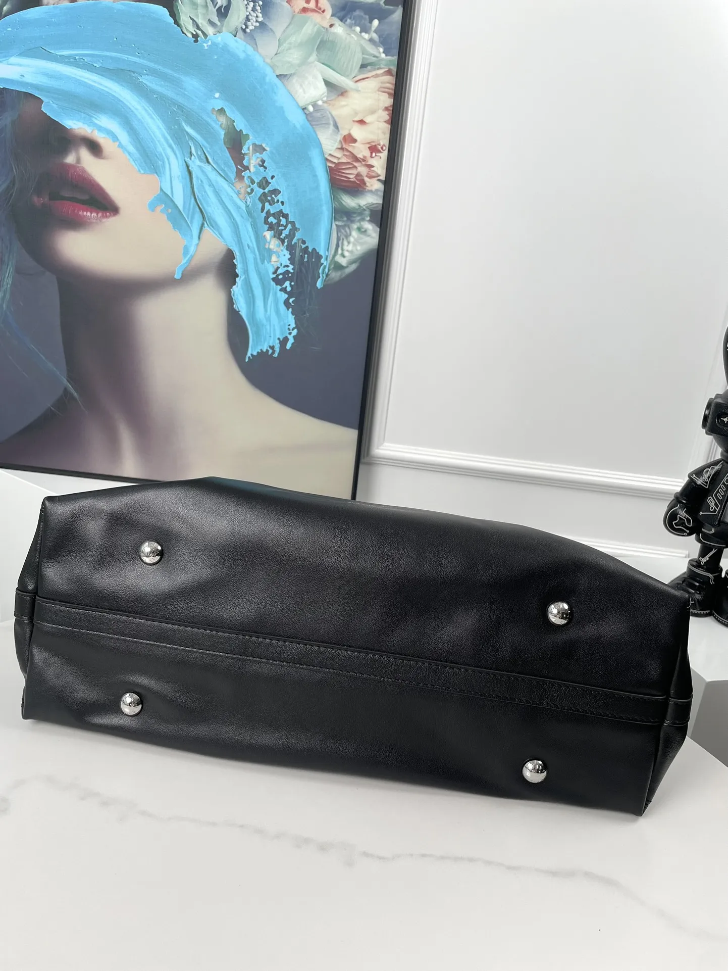 Exclusive real shots of the overseas original M25143! This CarryAll Dark medium handbag is crafted from soft lambskin, creating a stylish and relaxed silhouette that adds a striking touch to the 2024 spring/summer runway looks. Polished metal accents complement the pleasantly textured crinkled finish. Ample space accommodates various daily essentials, making it an excellent travel companion. Dimensions: 39×30×15cm