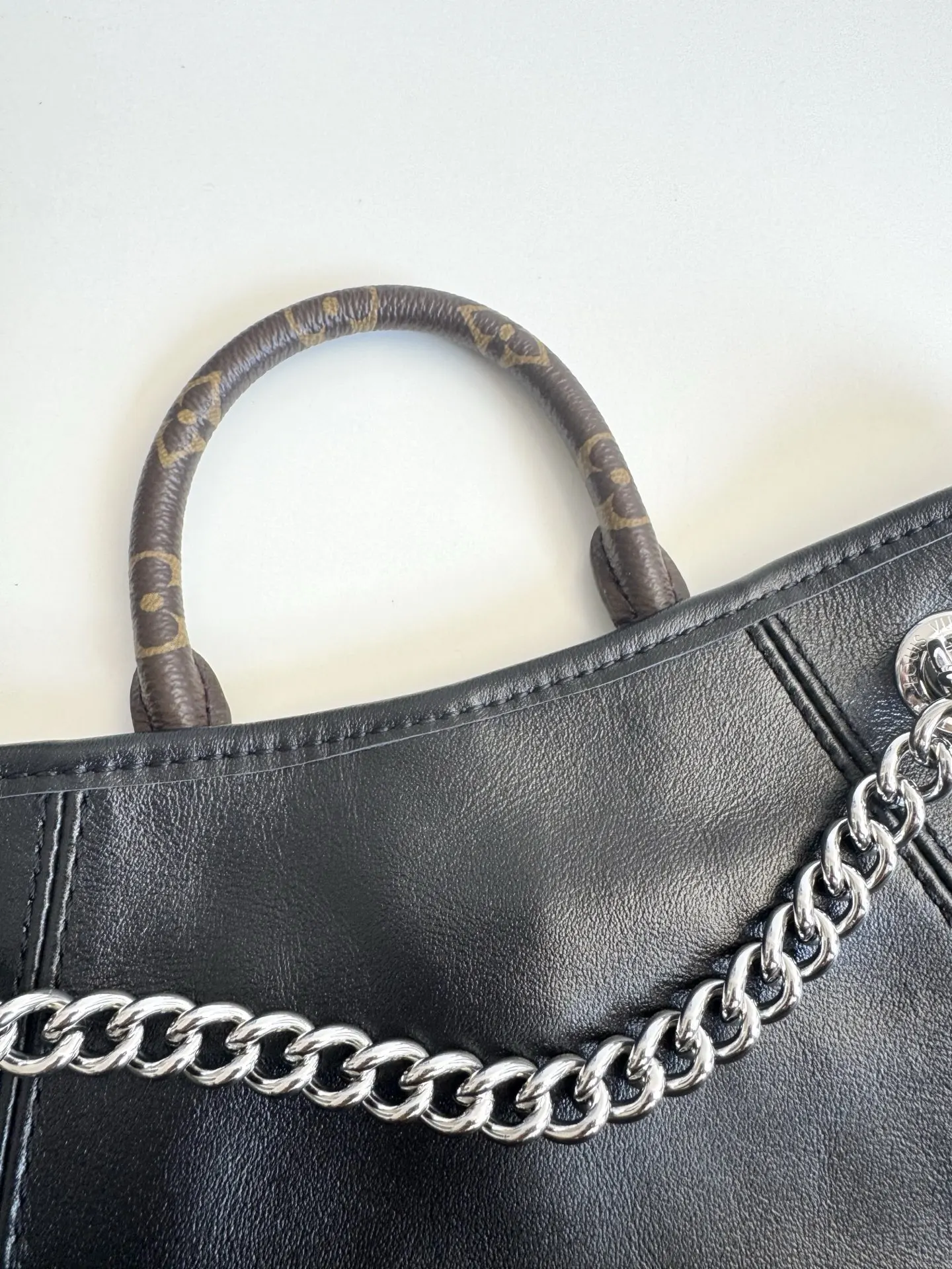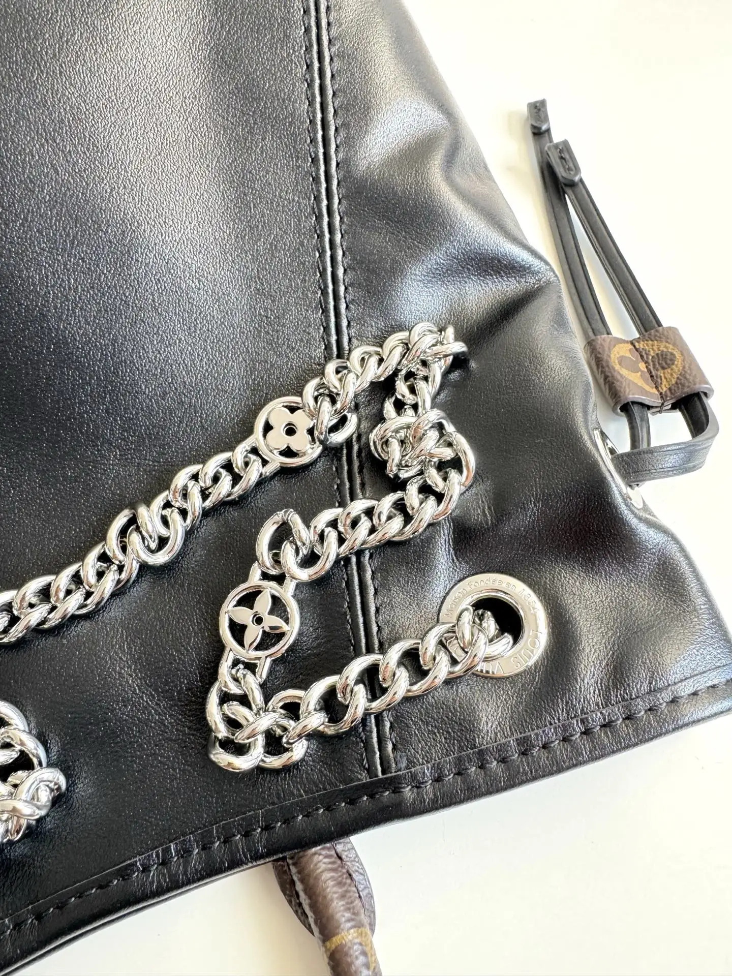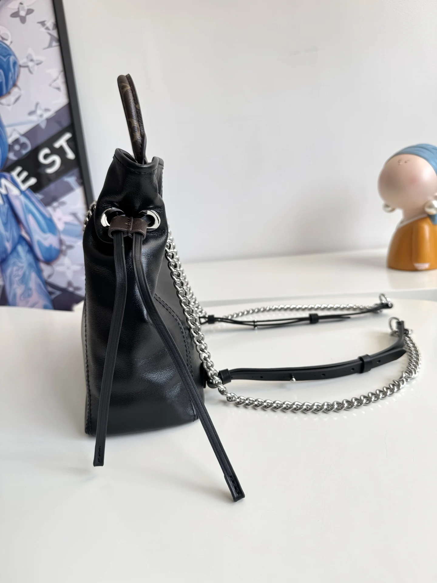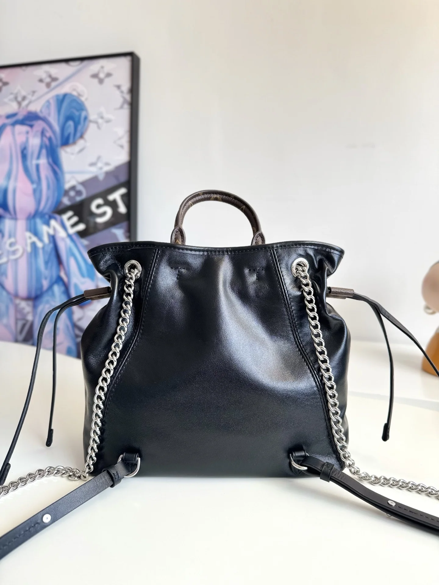 Original overseas order M25522 exclusive real shots! The LV Vibe series introduces the Off Duty backpack, crafted from sheepskin to create a casual shape, making it an excellent choice for daily outings. The jewel-like shimmering chain embellishes the LV Circle logo and can be easily switched to a shoulder bag. Size: 25×24×10cm