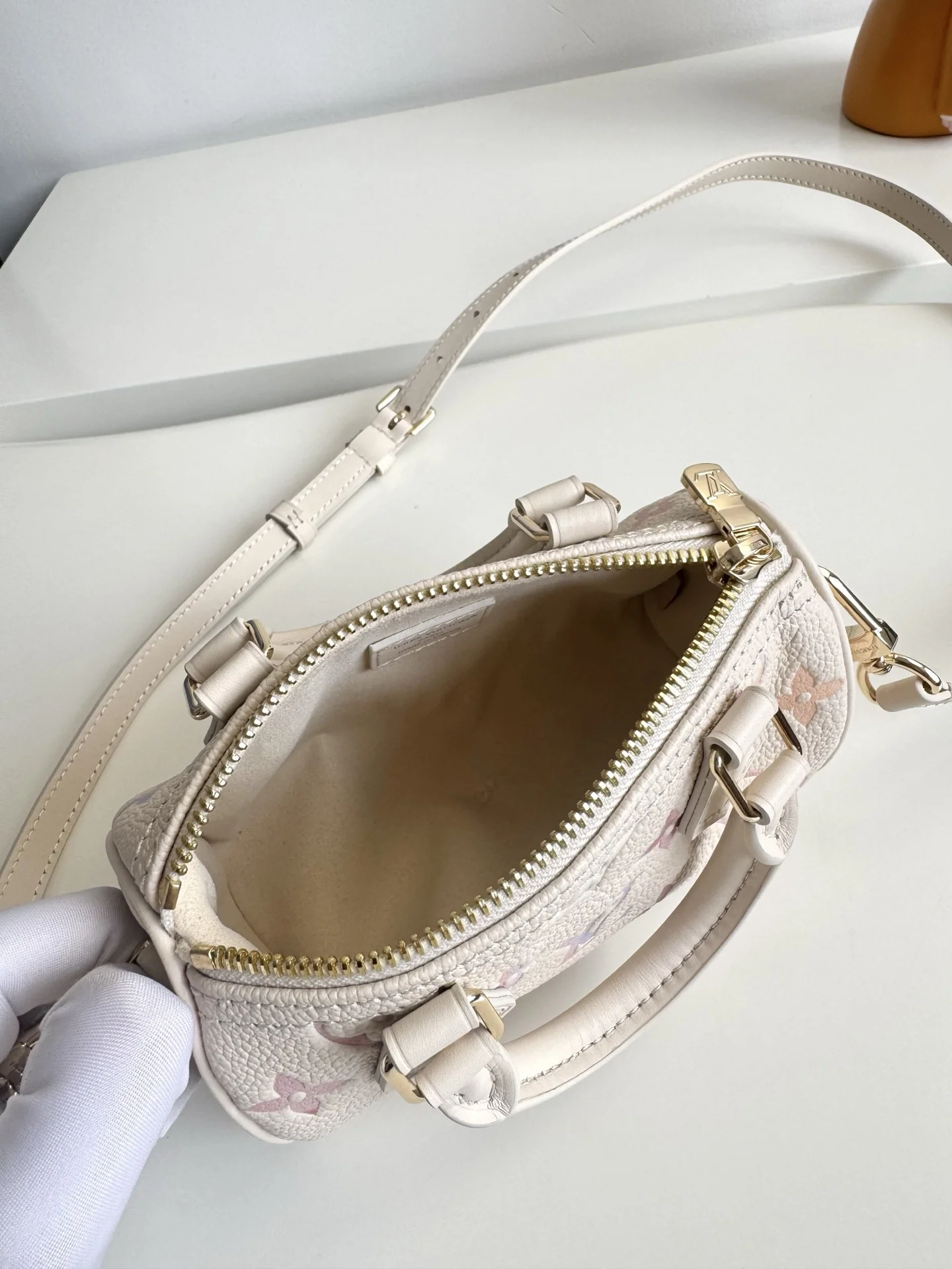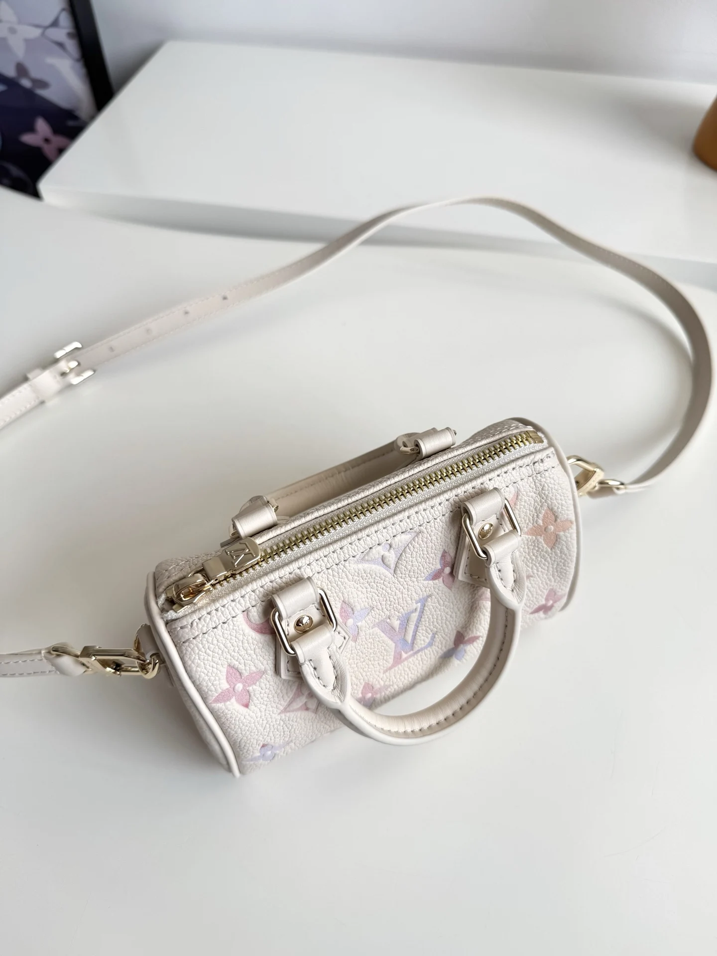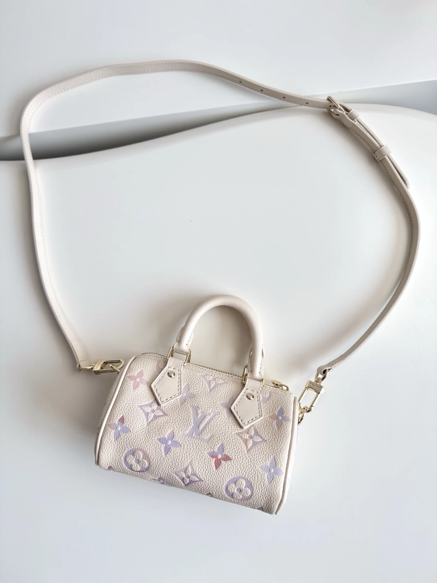 Exclusive real shot of overseas original M25591! This Nano Speedy handbag is infused with a delicate dreamlike color for the new season, easily brightening up various styles. The classic Monogram Empreinte leather body is paired with metal fittings, and the spacious interior can accommodate a short wallet and other daily essentials. The detachable shoulder strap allows for multiple carrying options. Dimensions: 16×10×7.5cm