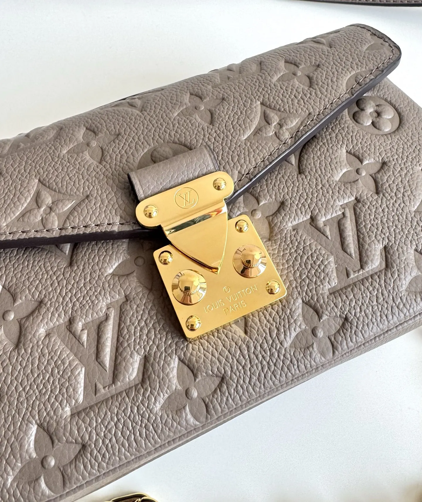 Exclusive real shots of the overseas original M25910! This Pochette Metis East West handbag is showcased in Epi leather from the Monogram Empreinte collection, featuring a modern flair with eye-catching metal elements such as the S-lock clasp and detachable chain. Multiple compartments, a central zip pocket, and a zippered outer pocket ensure organized storage. Dimensions: 21.5×13.5×6cm