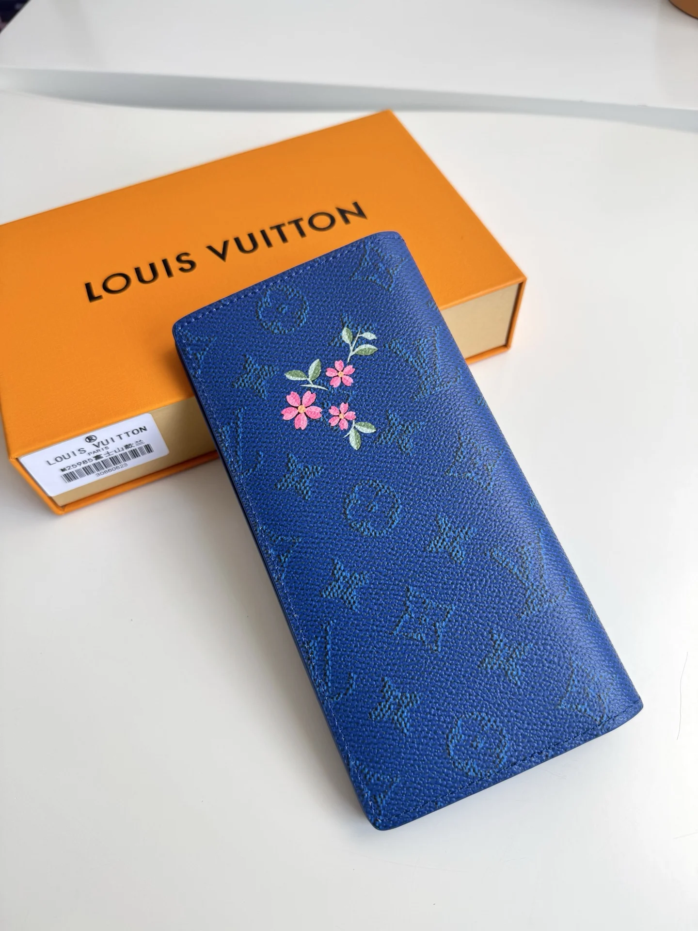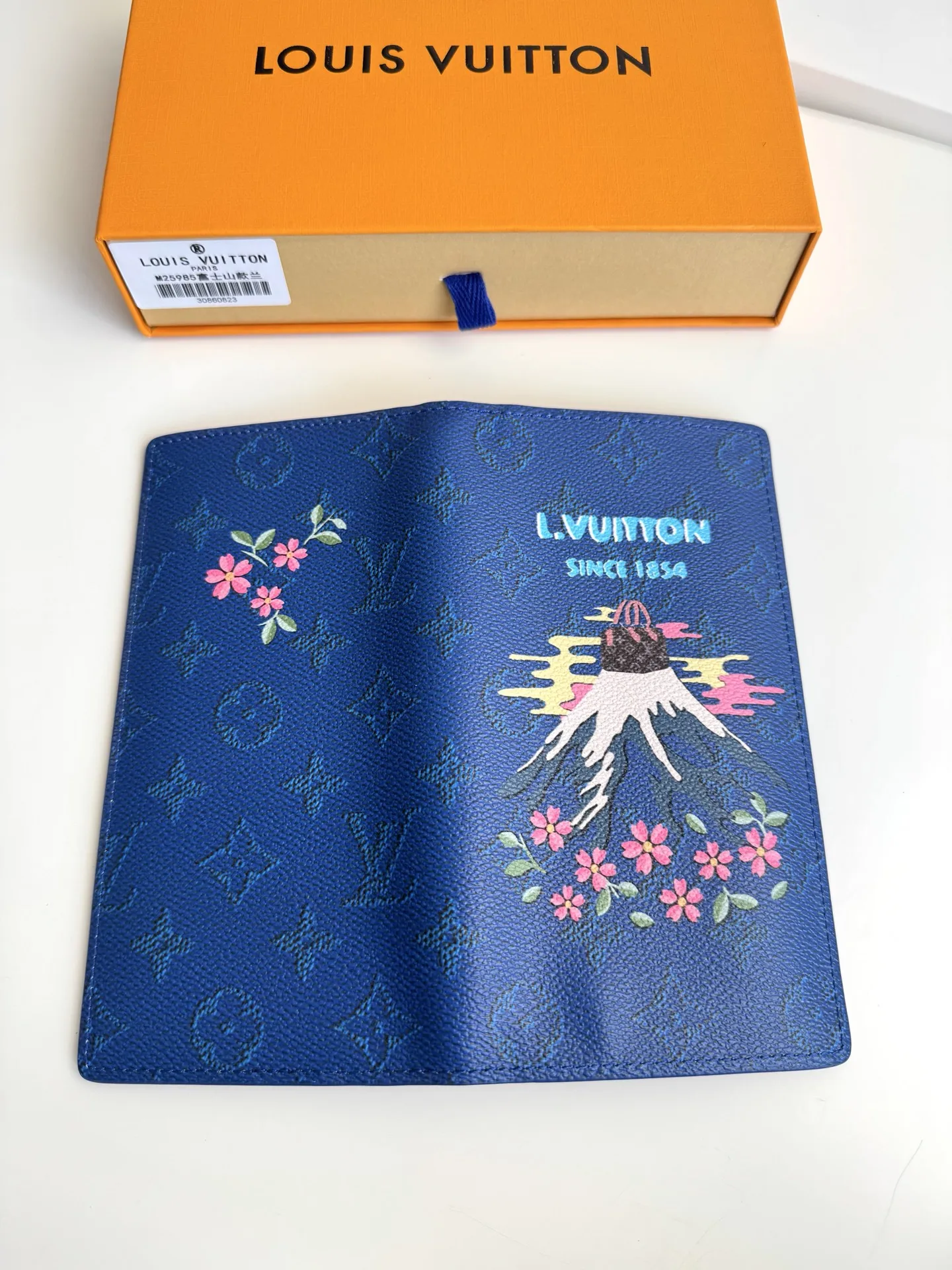 Original overseas single M25985 Mount Fuji Blue exclusive real shot! This Brazza wallet features a vibrant Japanese-style pattern on Monogram canvas. The classic, slender desi..
