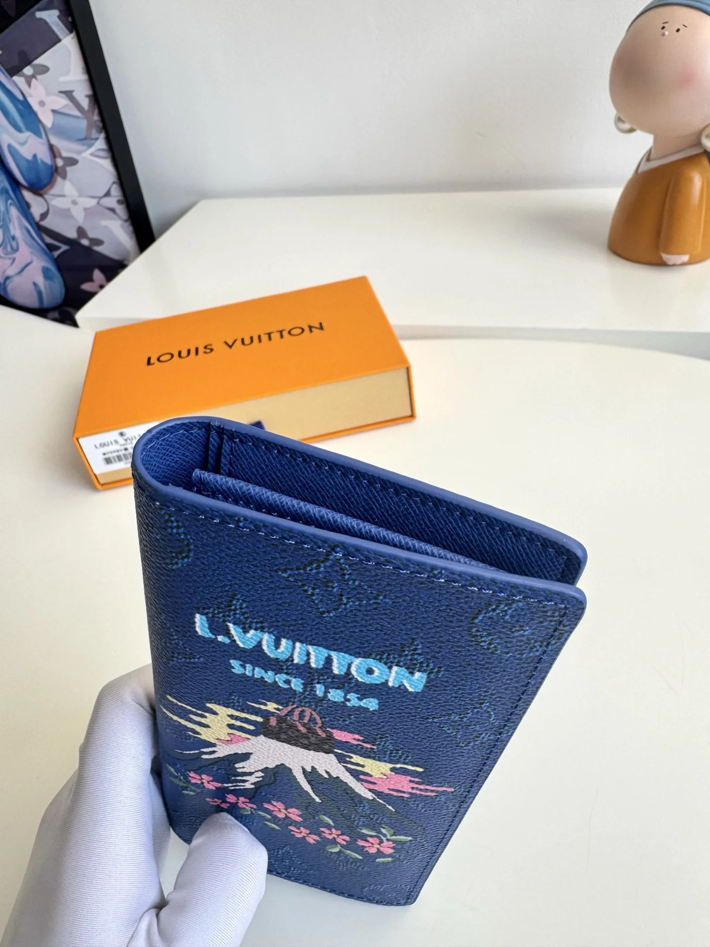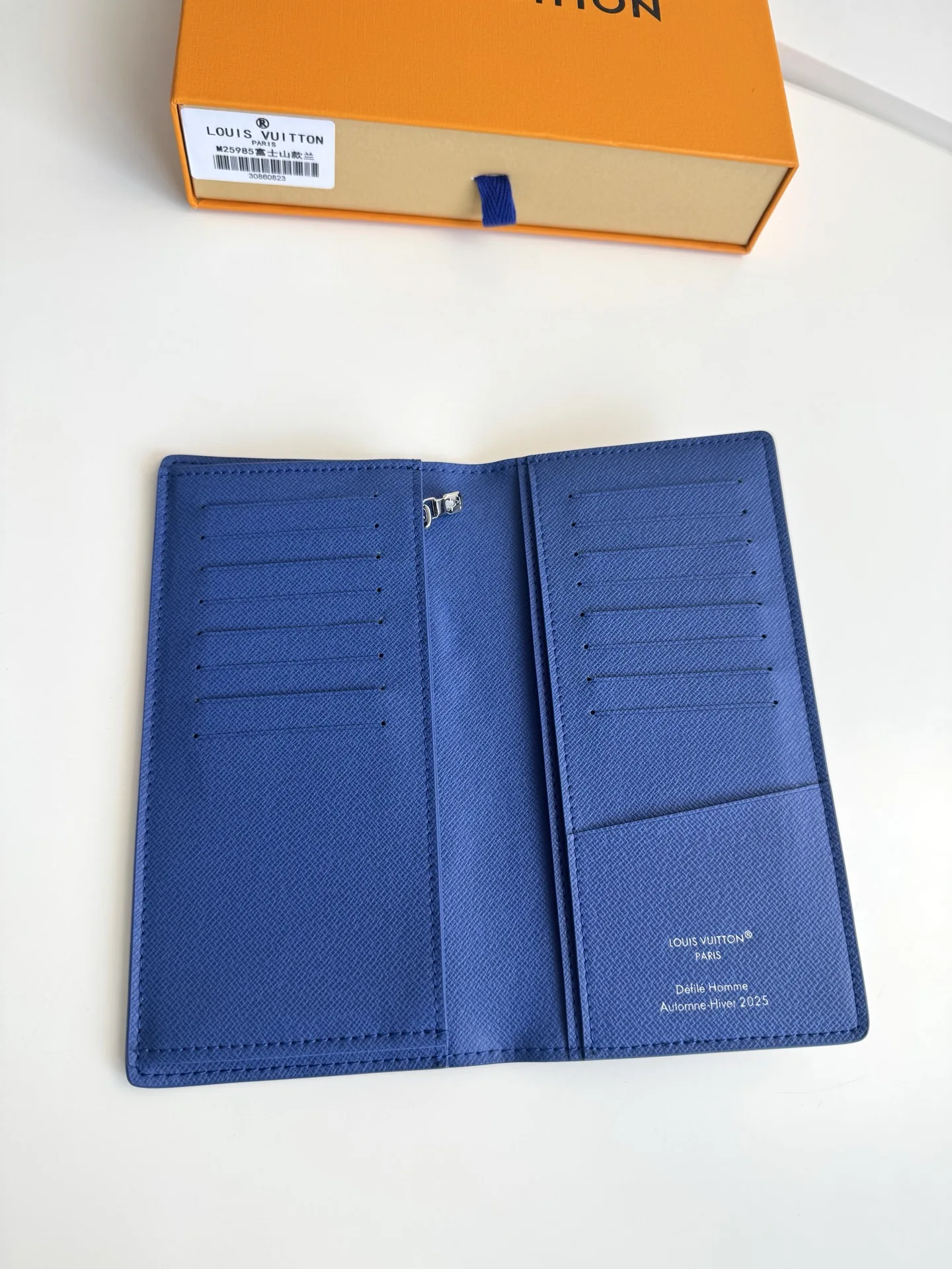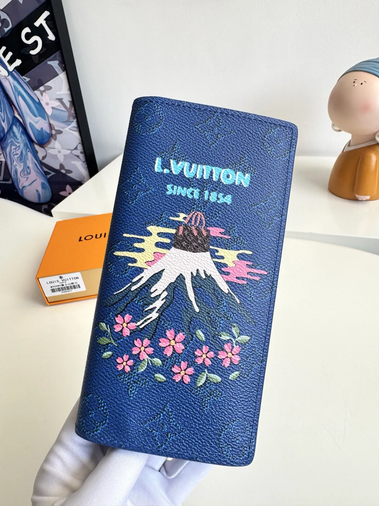 Original overseas single M25985 Mount Fuji Blue exclusive real shot! This Brazza wallet features a vibrant Japanese-style pattern on Monogram canvas. The classic, slender design includes pockets, card slots, and a zipped coin compartment. Dimensions: 19 × 10 × 2 cm