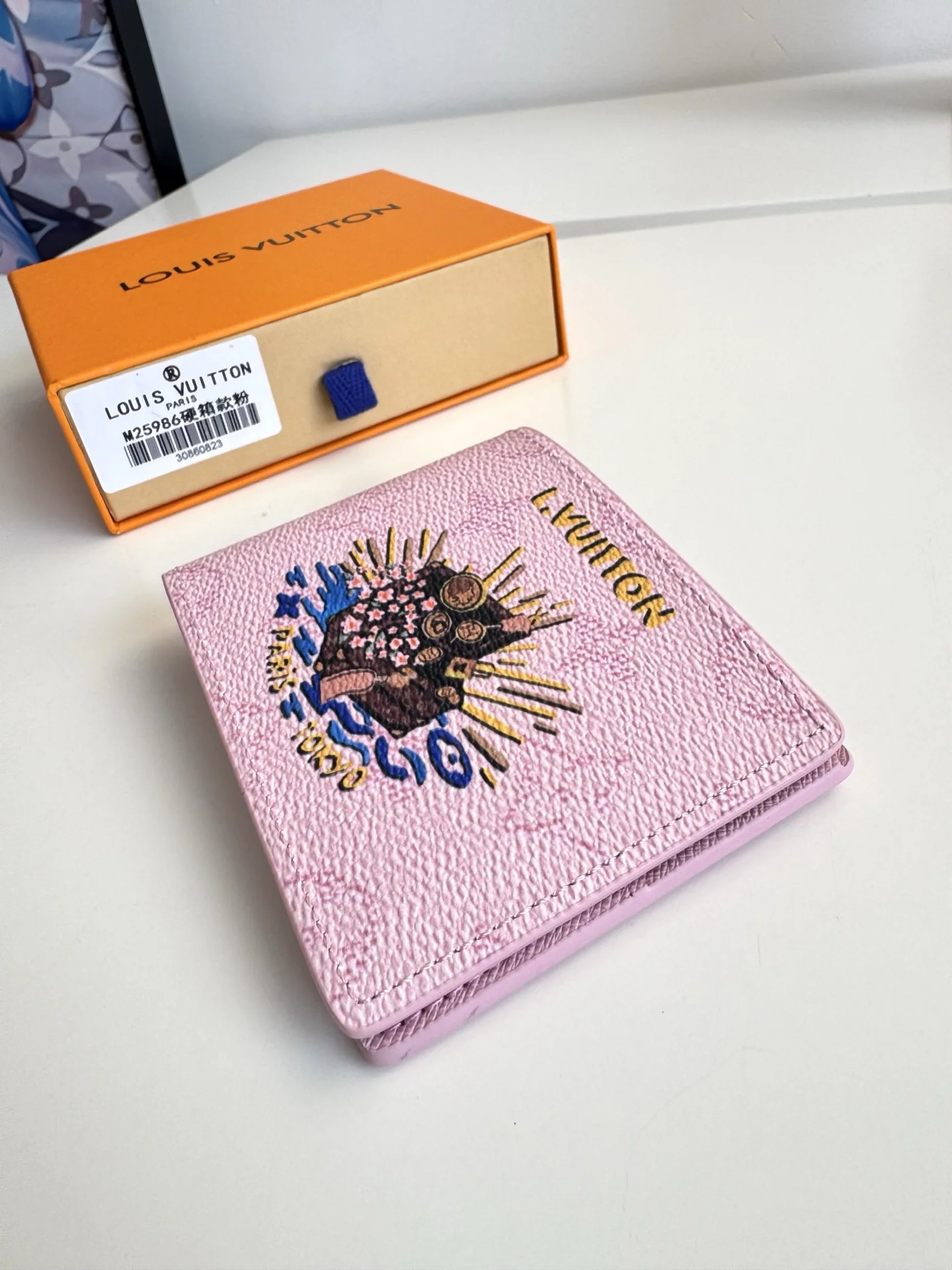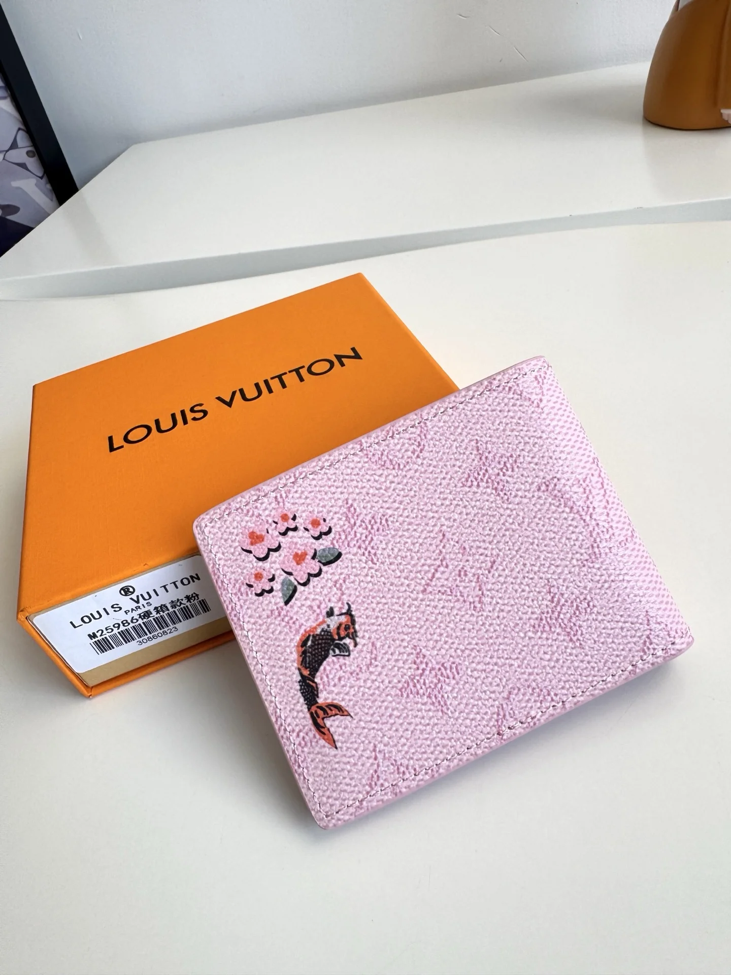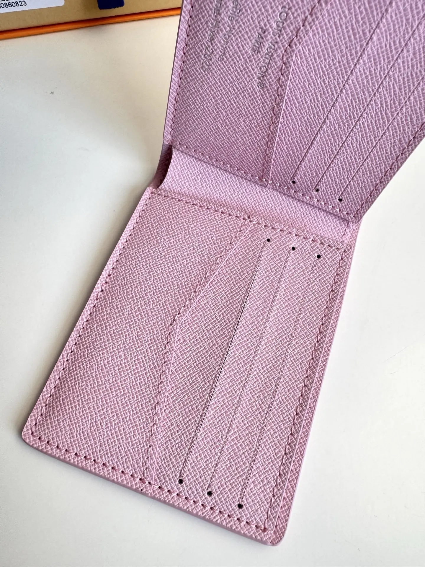Overseas original single M25986 trunk pink exclusive real shot! This Slender clip is made of Monogram coated canvas and features a vibrant Japanese print. The compact design features multiple card slots and bill compartments. Dimensions: 11 × 8.5 × 2cm