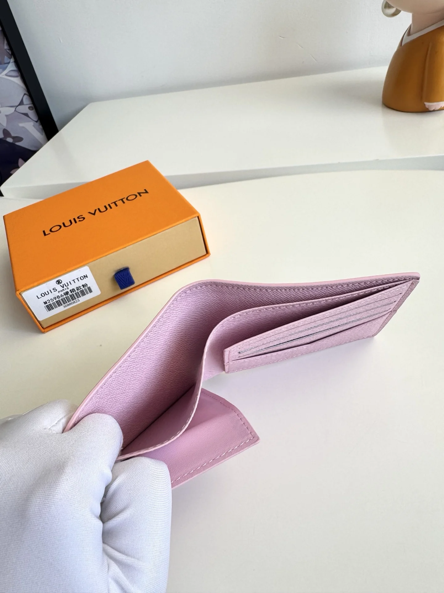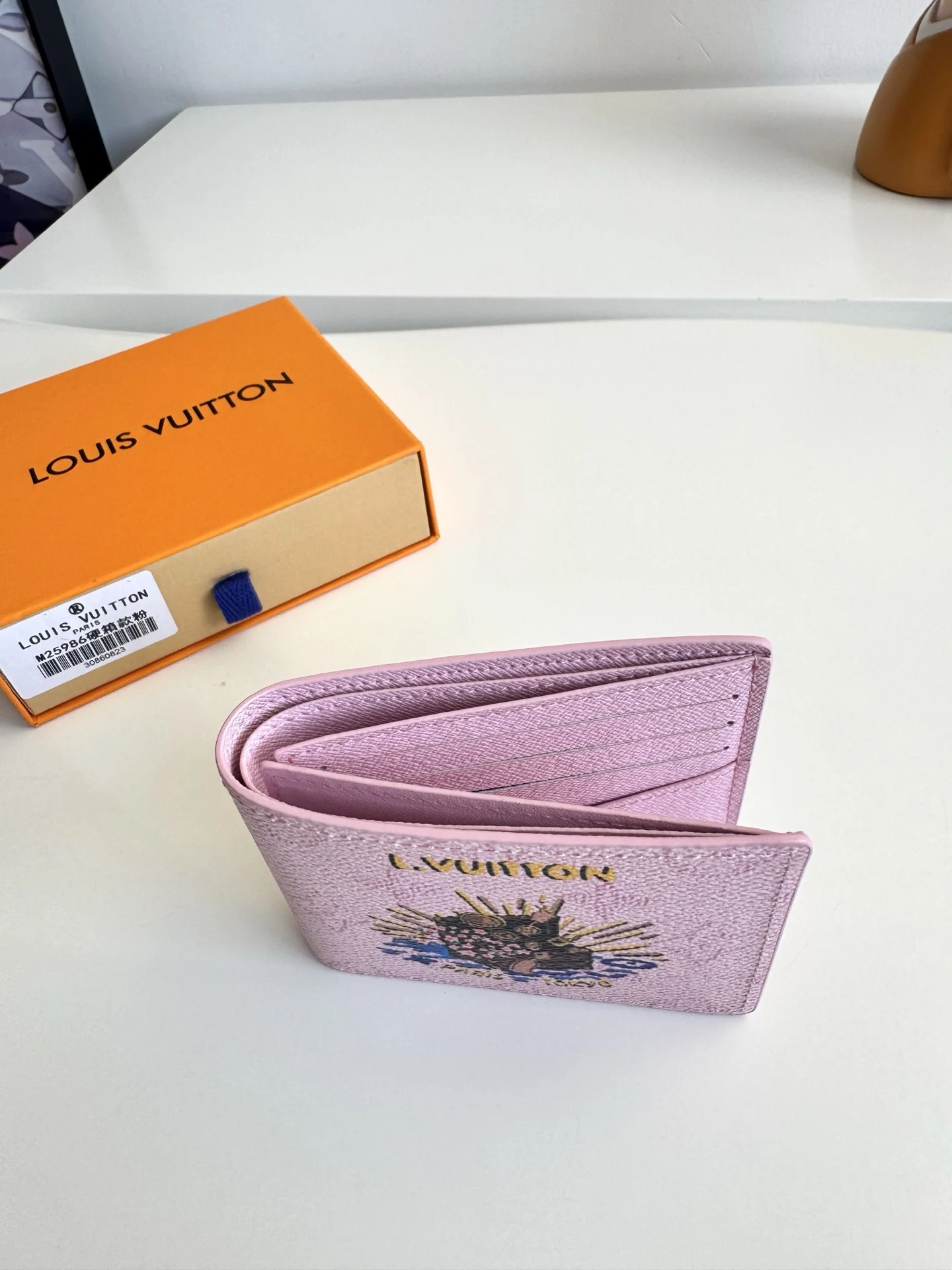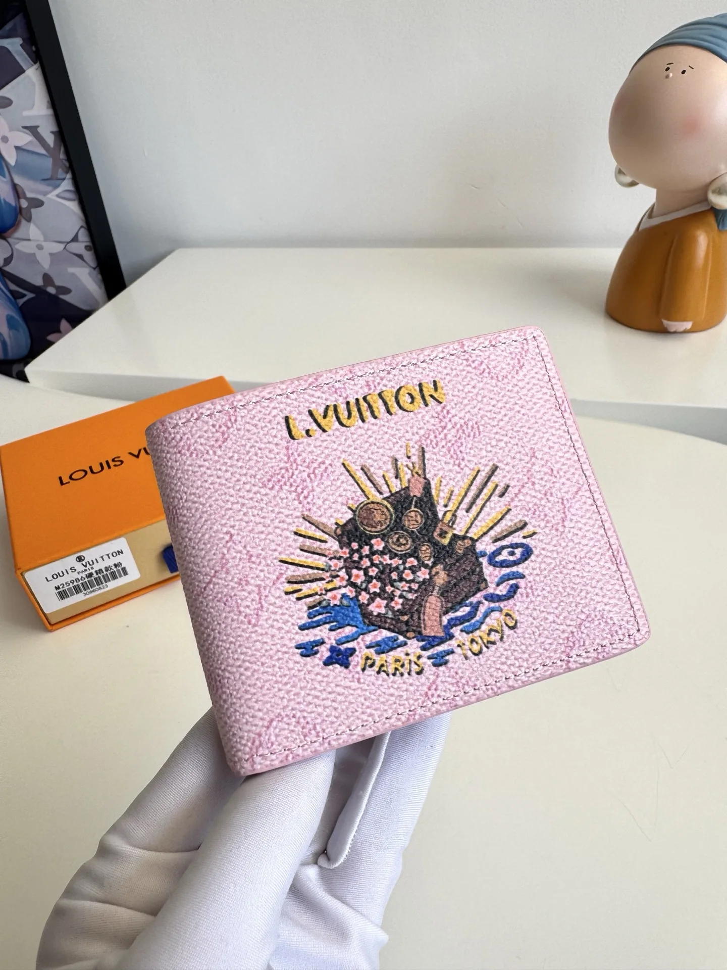 Overseas original single M25986 trunk pink exclusive real shot! This Slender clip is made of Monogram coated canvas and features a vibrant Japanese print. The compact design features multiple card slots and bill compartments. Dimensions: 11 × 8.5 × 2cm