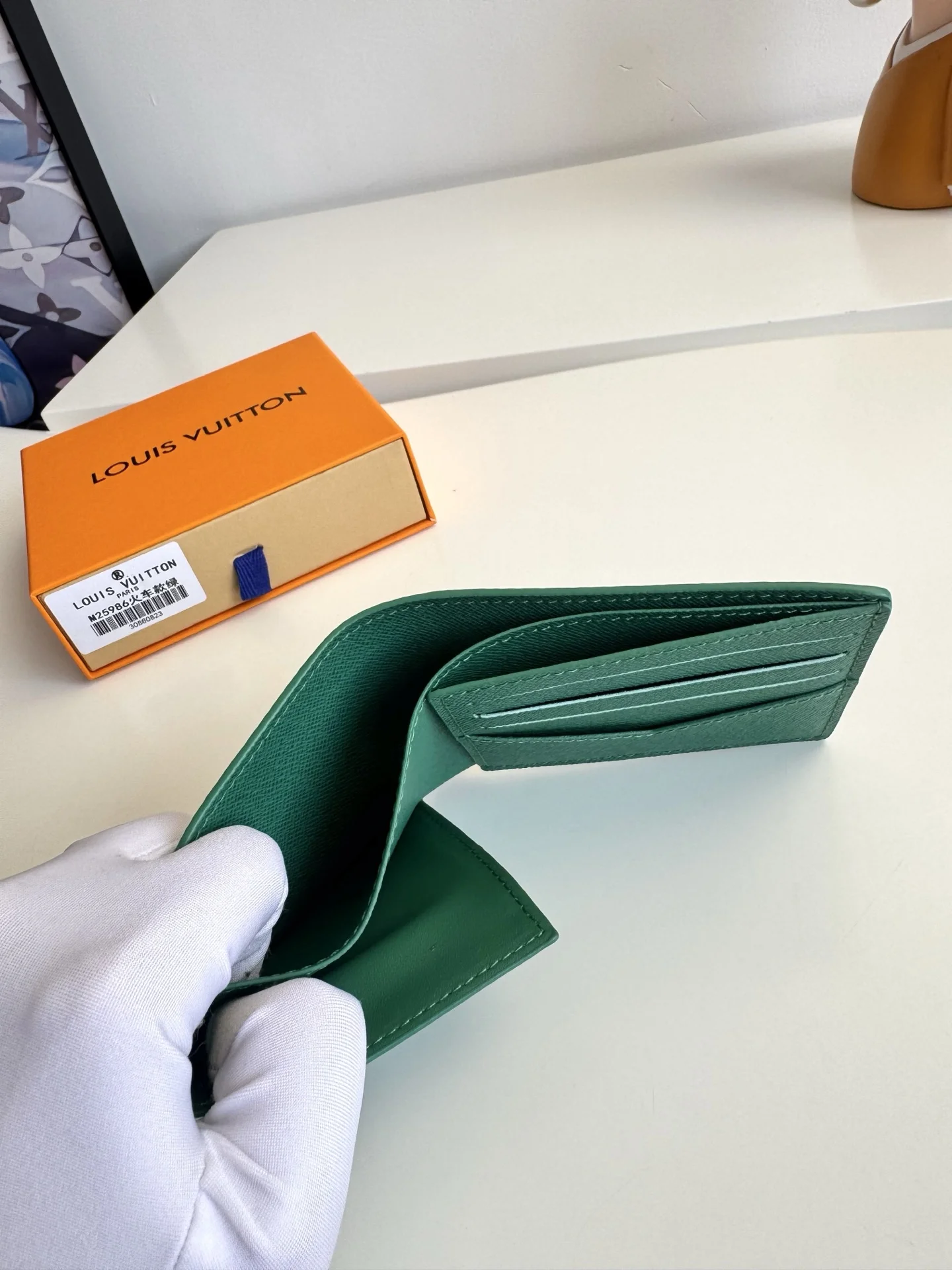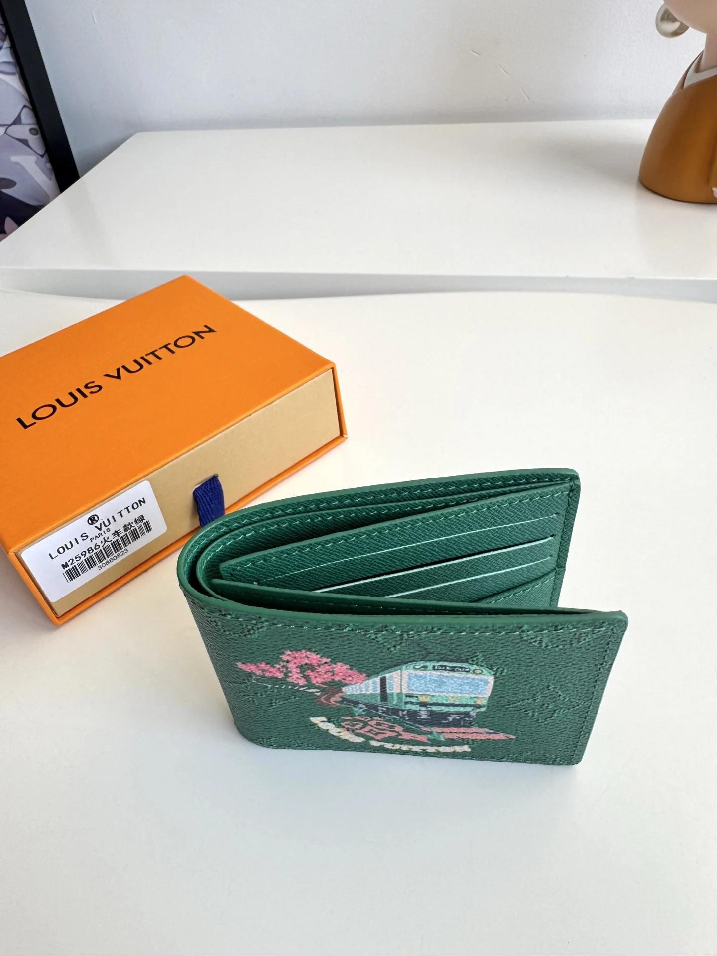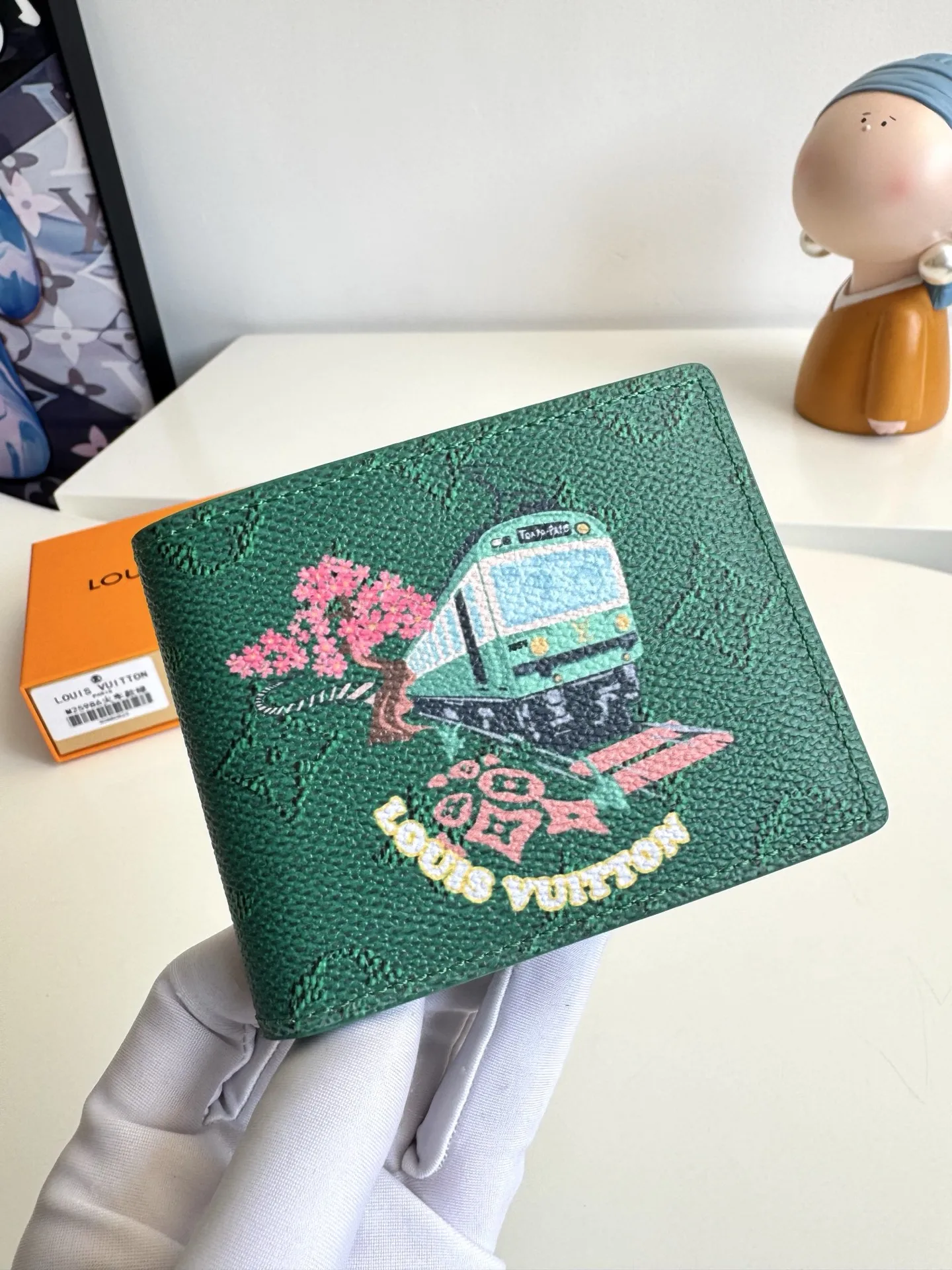 Original overseas order M25986 train green exclusive real shot! This Slender wallet is crafted from Monogram coated canvas and features a vibrant Japanese print. The ingenious design includes multiple card slots and bill compartments. Dimensions: 11×8.5×2cm