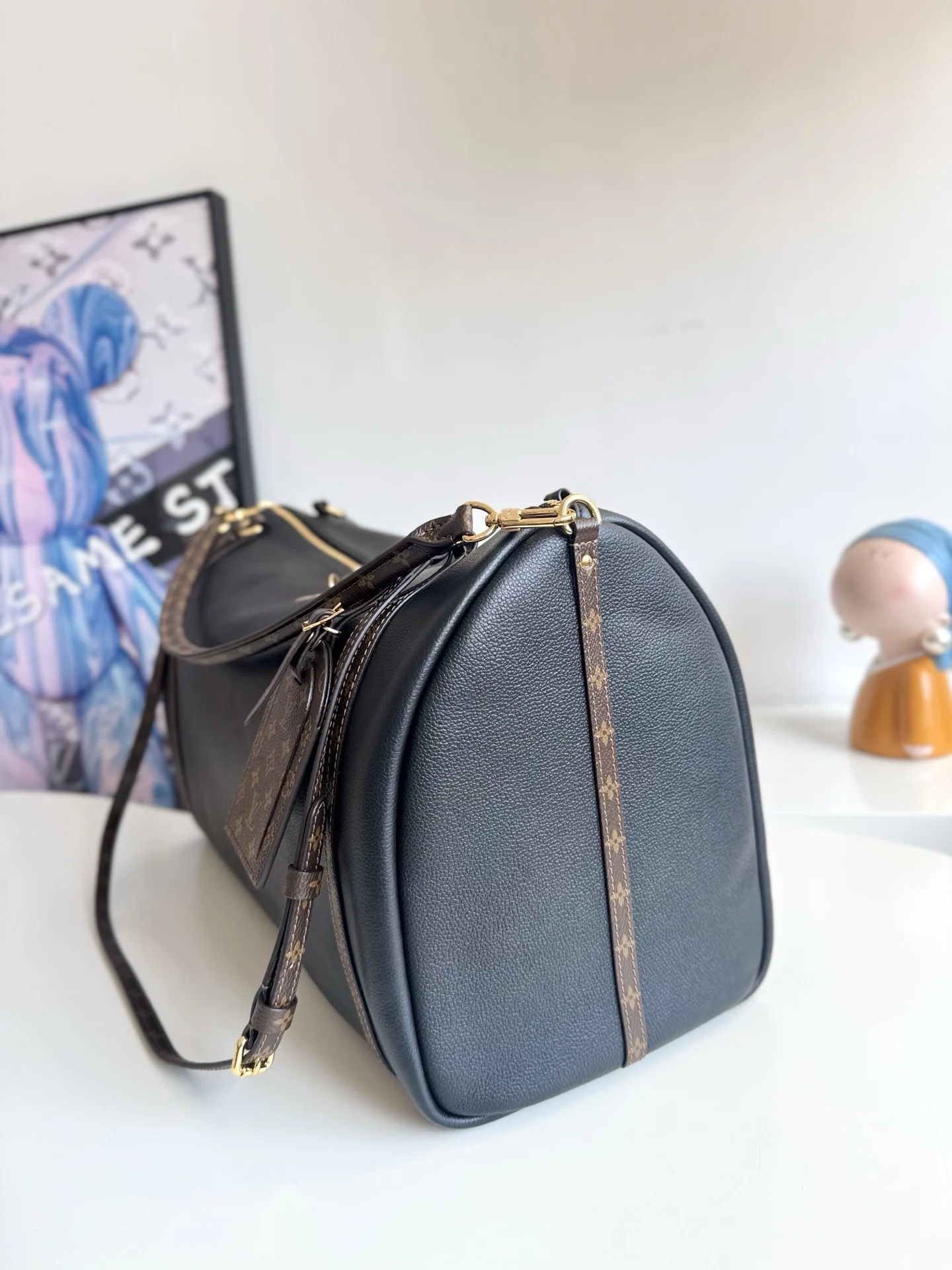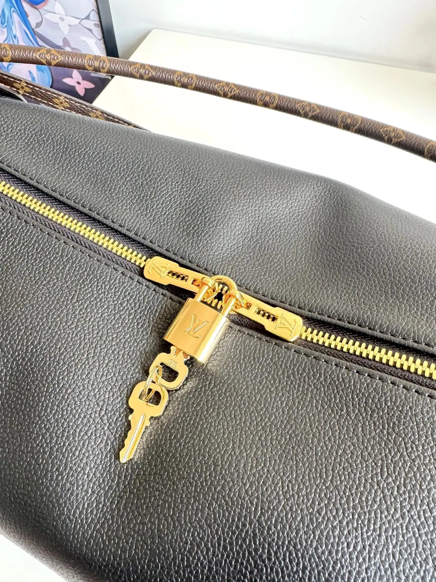 Exclusive live shoot of the overseas original M26037! The Express Travel large handbag infuses a gentle aura into the classic Keepall bag, showcasing Nicolas Ghesquiere s keen insight into the rhythm of urban travel. The bag is made of fine-grained cowhide leather with a Monogram canvas accent, featuring a soft structure that offers ample space, adjustable handles, and a detachable rolled leather handle for flexible carrying. Dimensions: 45×27×20cm