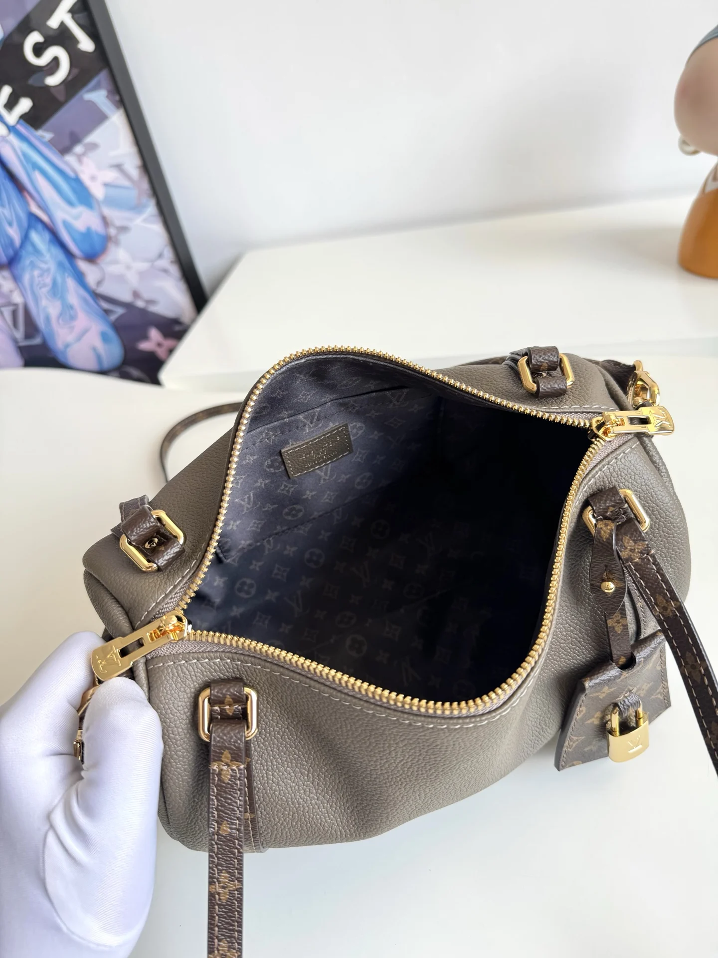 Exclusive live shot of the overseas original M26360! This Express small handbag is a true urban masterpiece, inspired by the brand s classic Keepall travel bag. Crafted from fine cowhide leather, it features Monogram classic pattern trimming and lining, complemented by metal fittings and the iconic key pouch and padlock, showcasing the essence of Louis Vuitton s travel tradition. Its compact size is perfect for storing everyday essentials, with multiple carrying options to suit modern urban life. Dimensions: 26×17×13.5cm