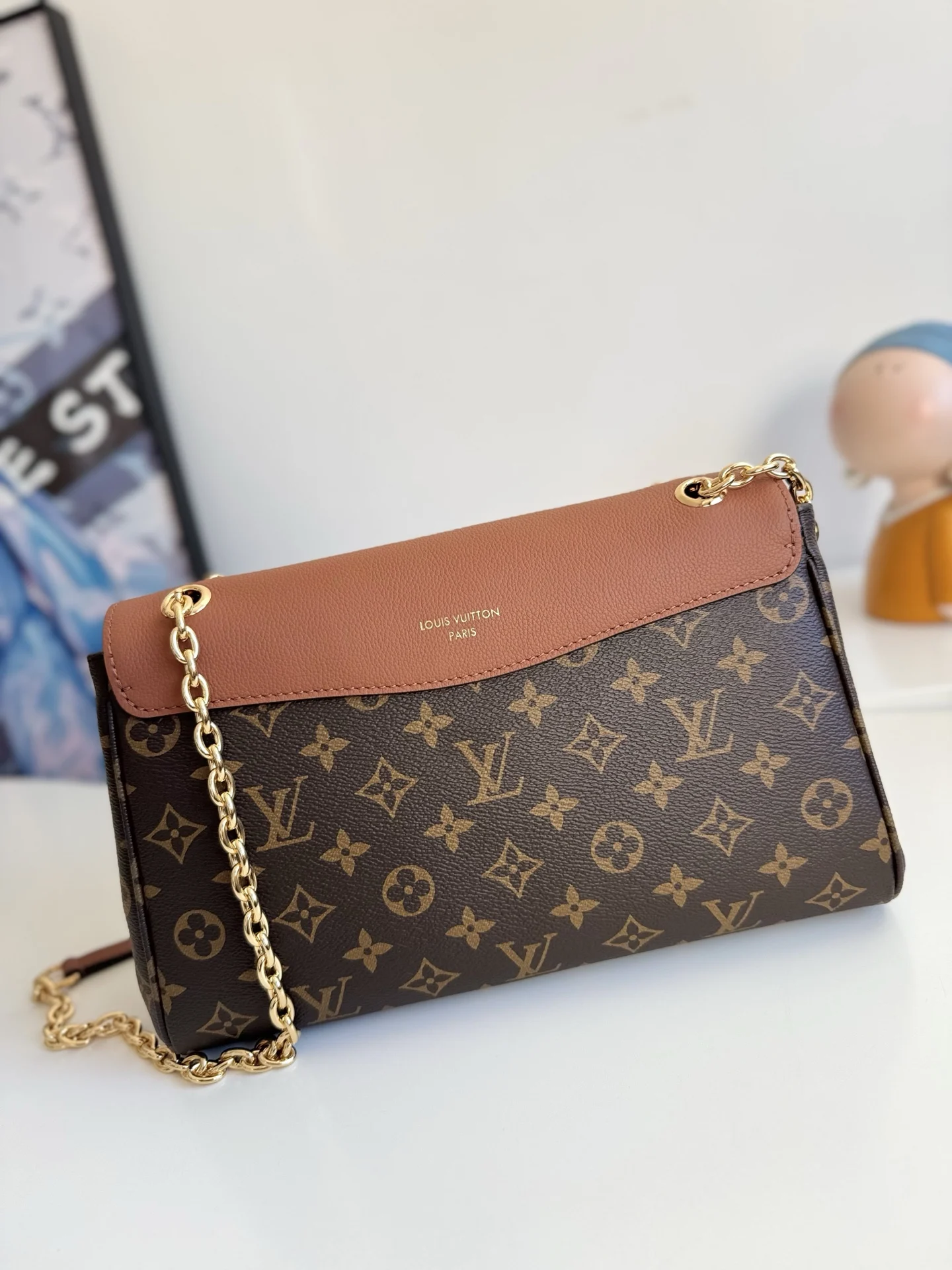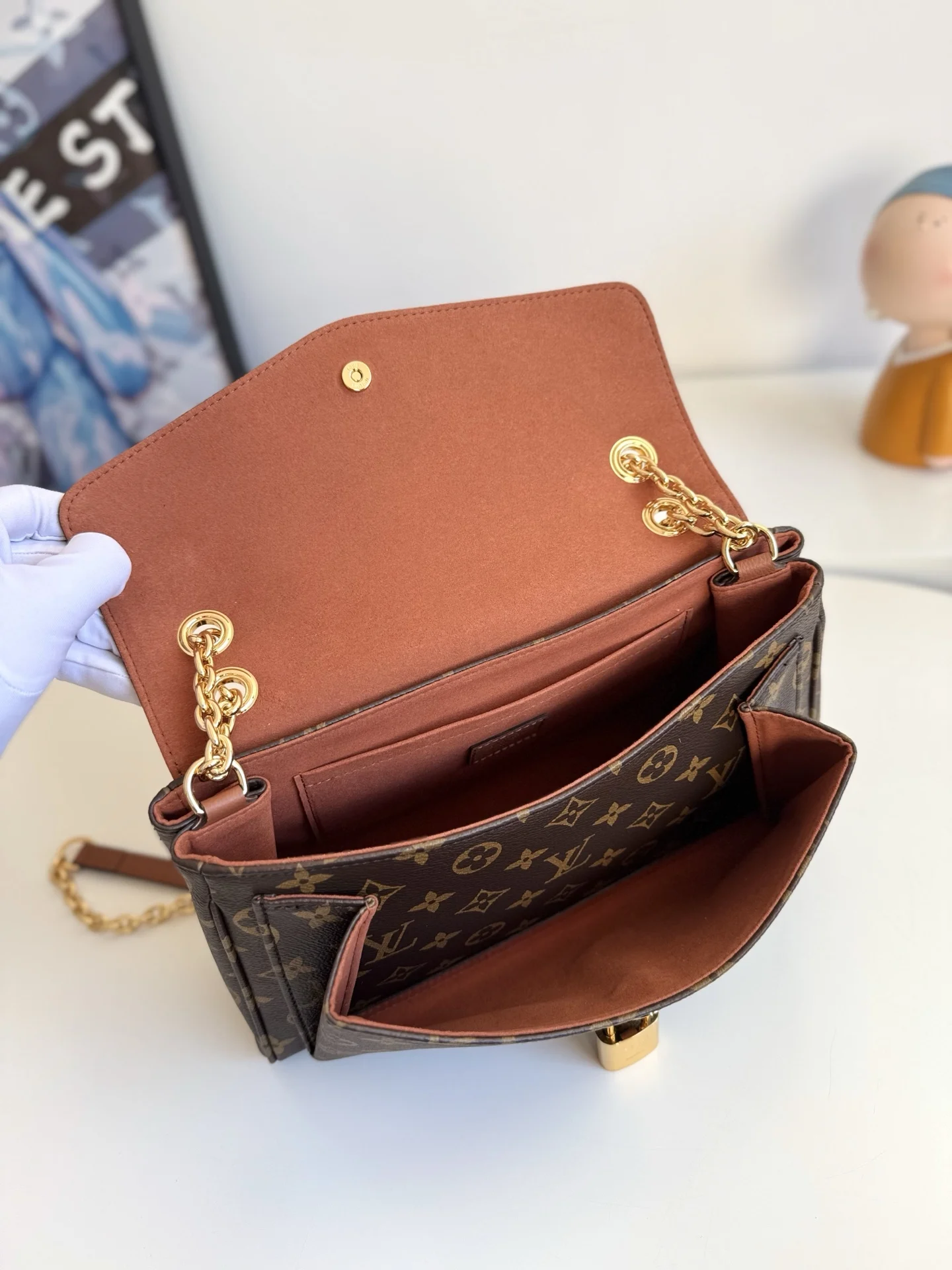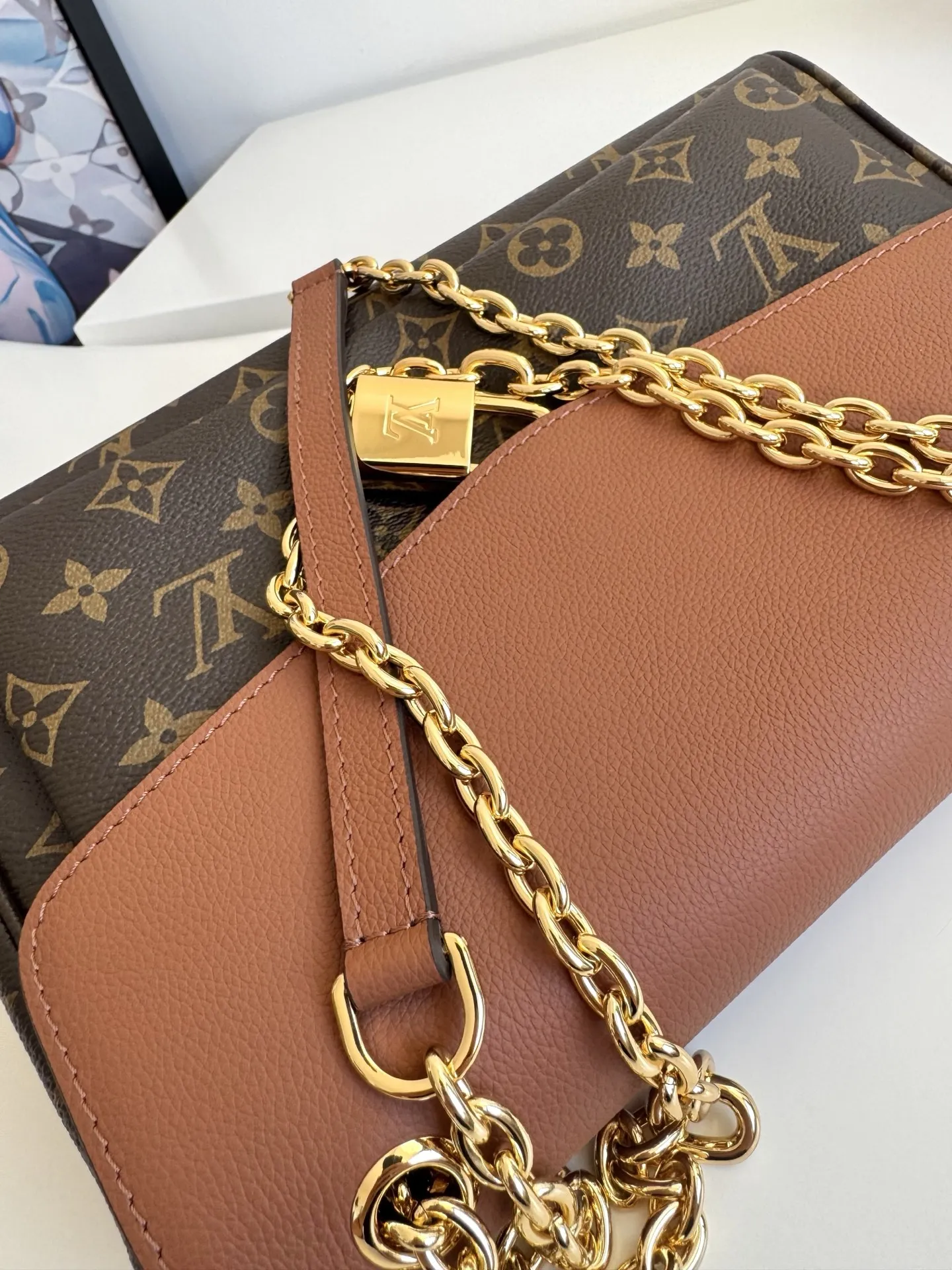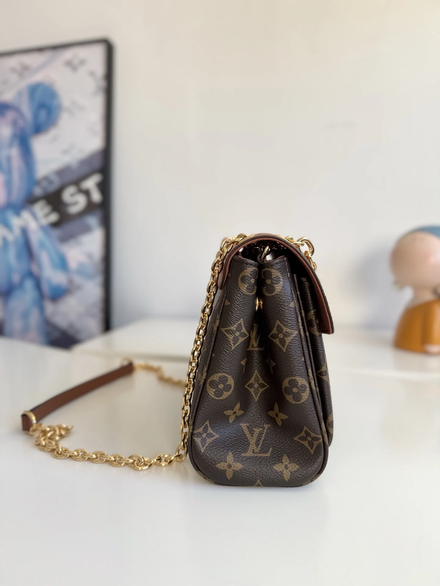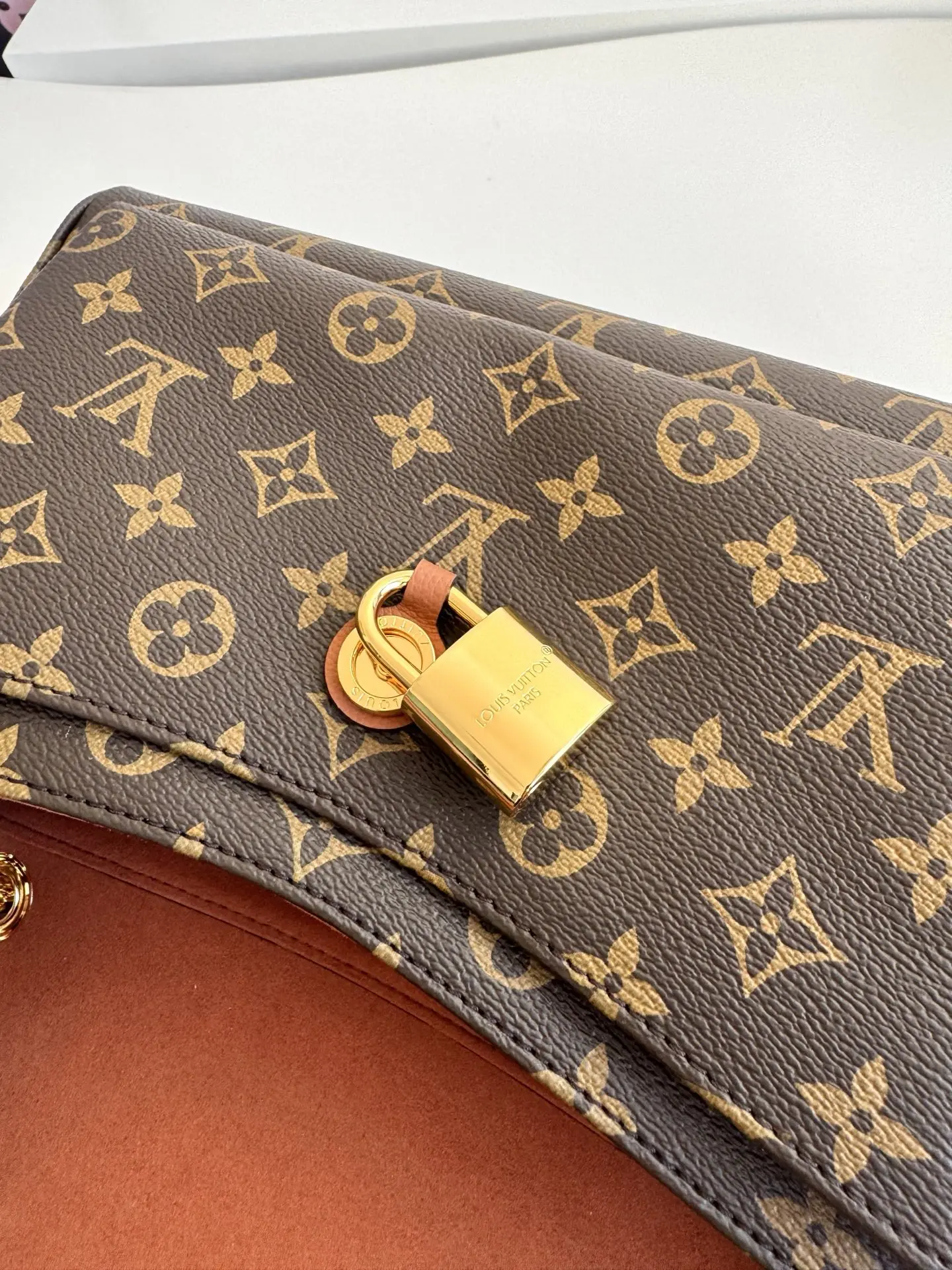 Exclusive live shot of the overseas original M27065! This Saint-Germain PM handbag is inspired by the eponymous district in Paris, symbolizing timeless elegance. This exquisite crossbody design is made of Monogram canvas and leather, adorned with a gold chain and the iconic LV lock, paying tribute to Louis Vuitton s archival trunks. Its perfect size accommodates daily essentials, while the external pocket allows for easy access to cards and keys. The sliding chain enables you to wear it freely on your shoulder or in your hand. Dimensions: 30.5×21×12.5cm