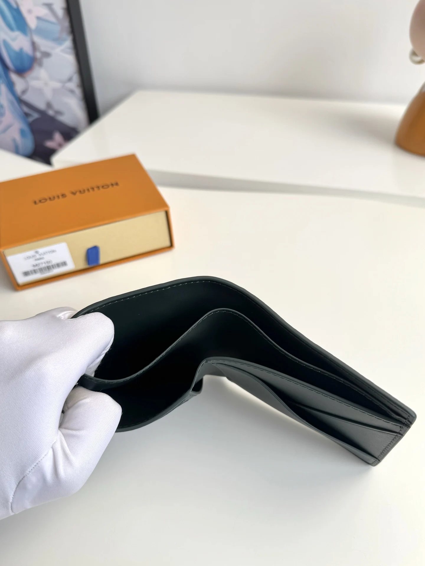 Exclusive live shoot of the overseas original M27150! This Multiple wallet is crafted from soft Monogram Shadow cowhide leather, featuring minimalist lines, with Monogram embossing and printing embellishing it, harking back to the original pattern created by Georges Vuitton in 1896. The interior includes card slots, compartments, and pockets for functional details. Dimensions: 11.5×9×1.5cm