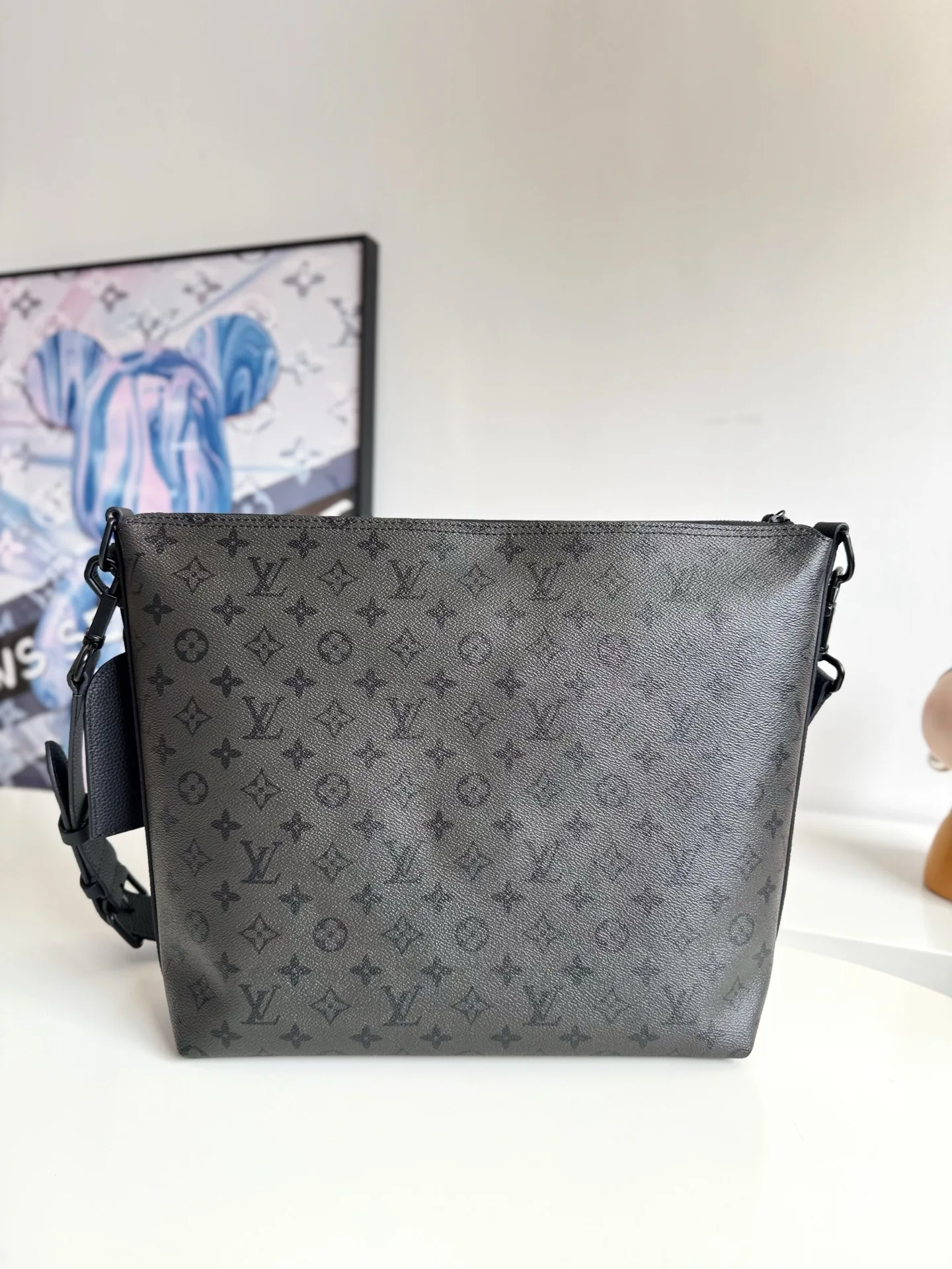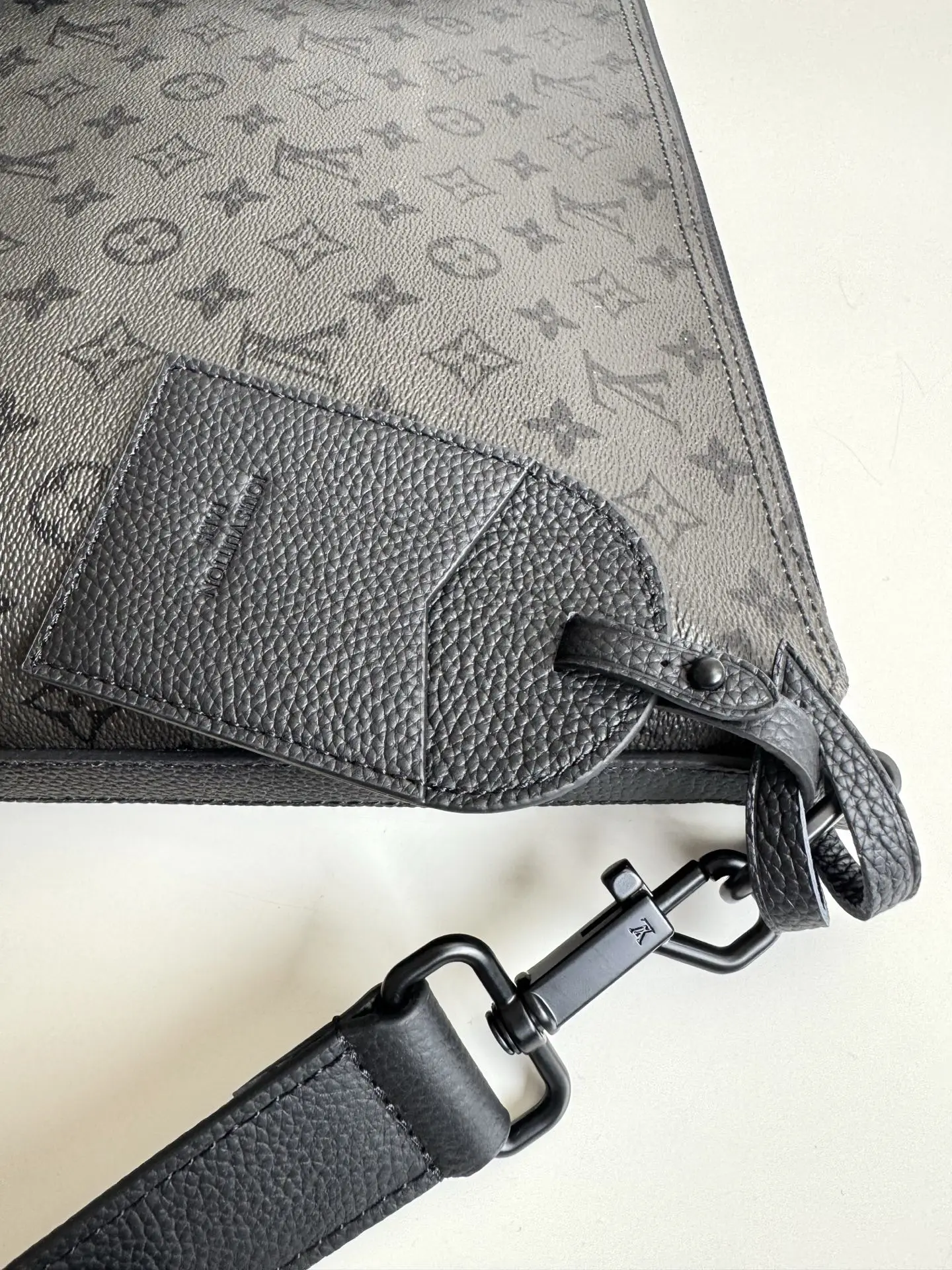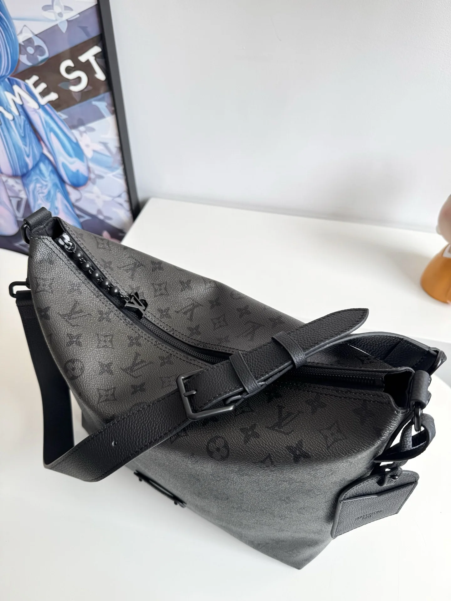 Exclusive real shot of overseas original M27856! This Vagabond Hobo bag features Monogram Midnight coated canvas with matching leather trim. The silhouette fits the body while considering functionality. The adjustable shoulder strap allows for shoulder or crossbody wear. The spacious interior is secured with a matte zipper, and the zippered pocket is convenient for storing personal items. Dimensions: 39×30×8.5cm