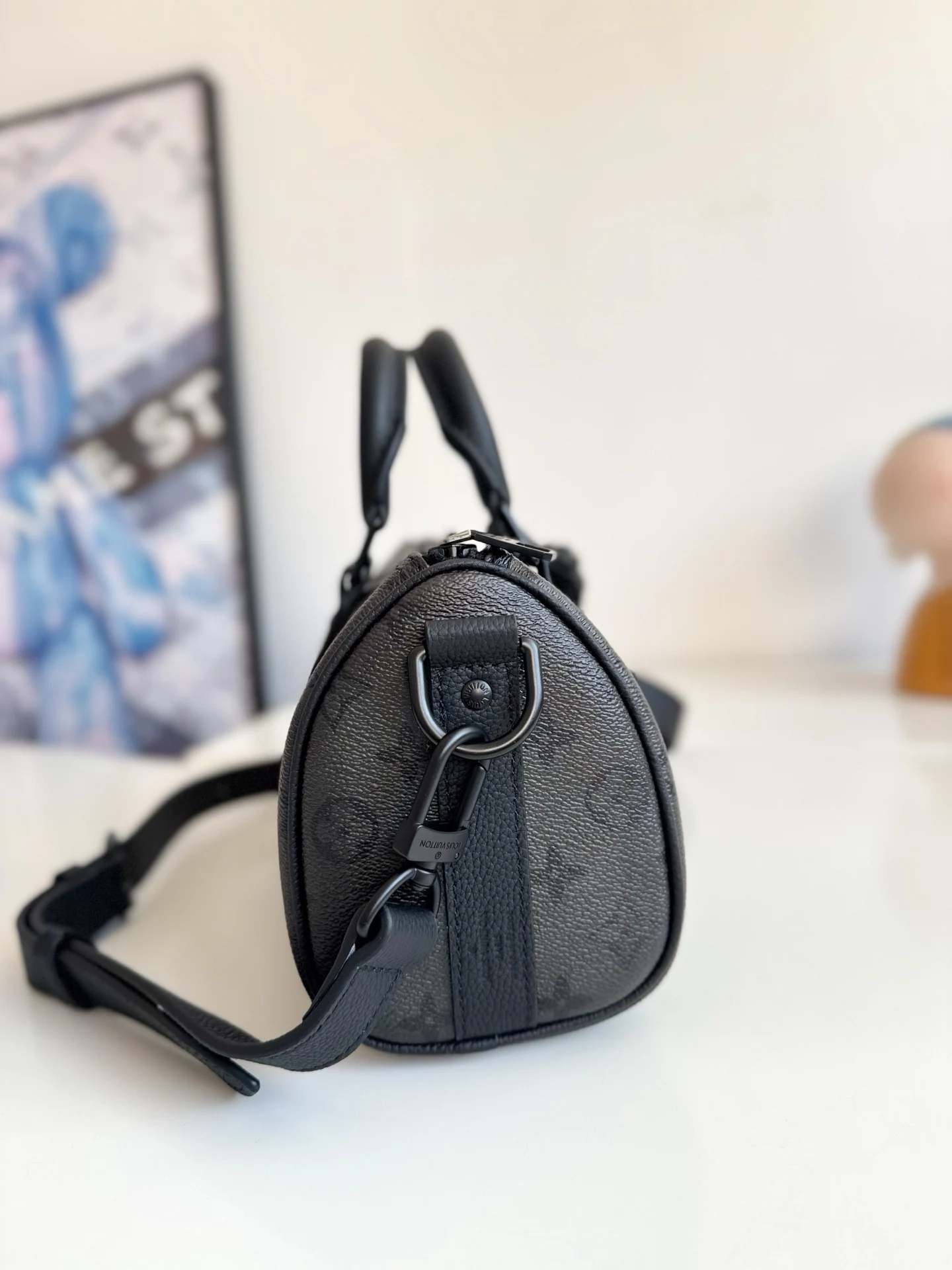 Exclusive real shot of overseas original M28369! This Keepall Bandouliere 25 bag features Monogram Midnight coated canvas adorned with deep Monogram prints, showcasing a conf..