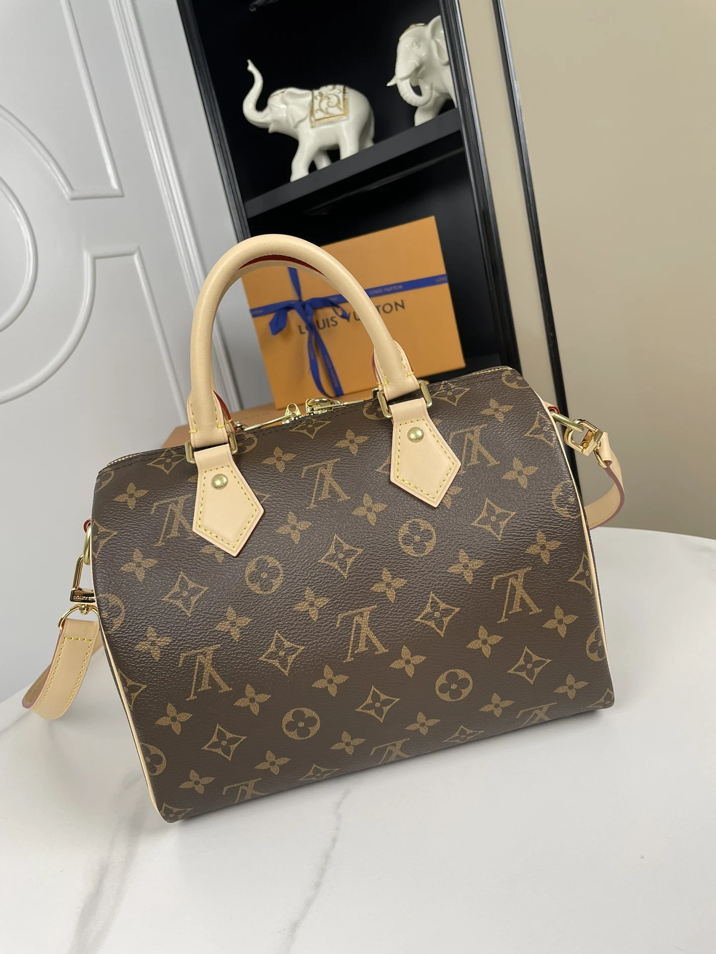 Overseas original M41113 exclusive real shots! This Speedy 25 handbag is made of iconic Monogram canvas and is a high-quality urban bag. Originally designed for travelers in the 1930s, the Speedy pays homage to that era of dramatic change. From the iconic shape to the rolled leather handles, the engraved padlock and the detachable strap, every detail has become a classic. Size: 25×19×15cm