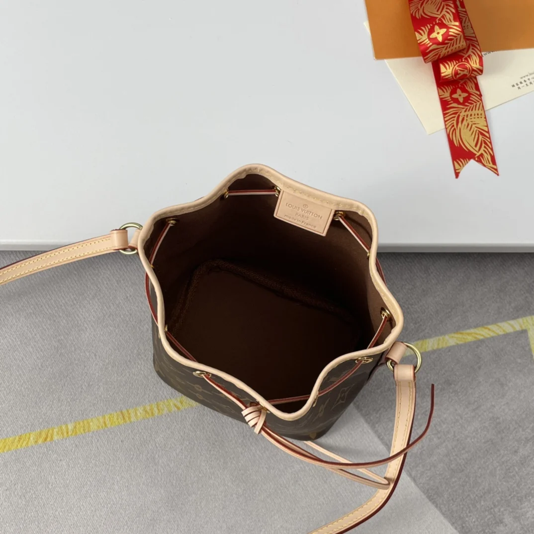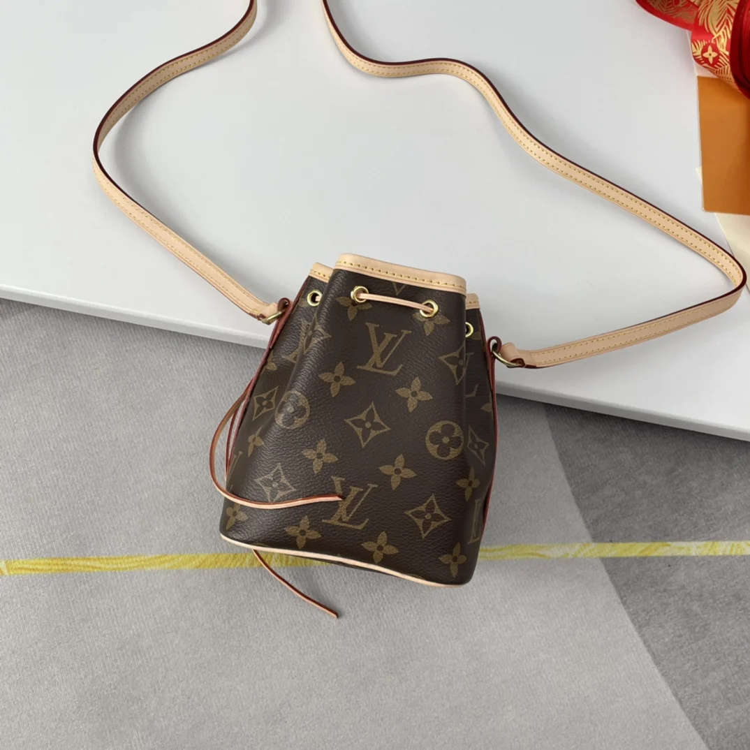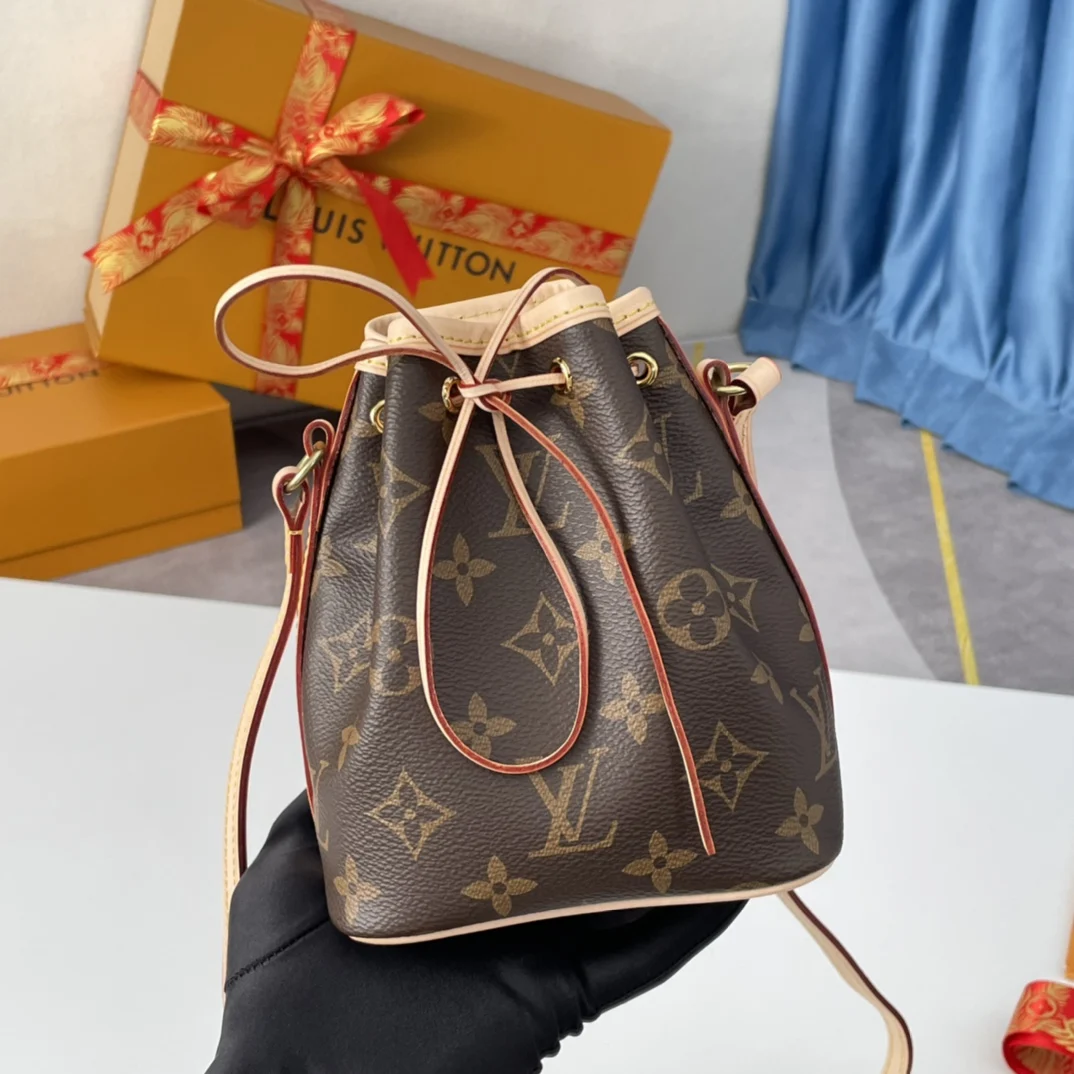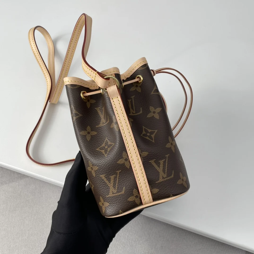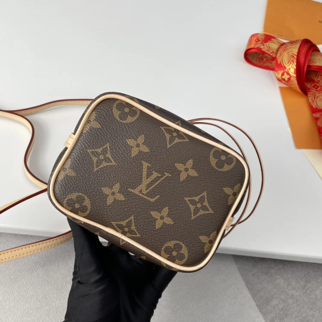 Exclusive live shots of the overseas original NANO NOE handbag M41346! Made from classic Monogram canvas, the Nano Lockit handbag exudes ultimate femininity and is the ideal choice for carrying your daily essentials. This handbag is the perfect mini version of the prototype Noe handbag, featuring exquisite stitching and an incredibly lightweight design that easily accommodates your smartphone, credit cards, and keys! Dimensions 13x15x9cm