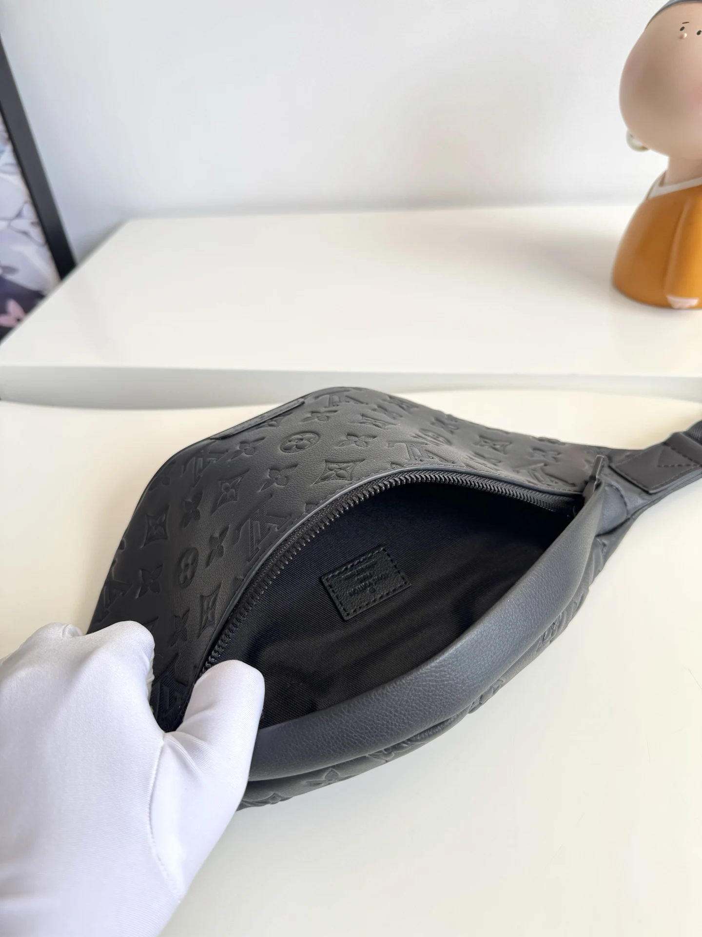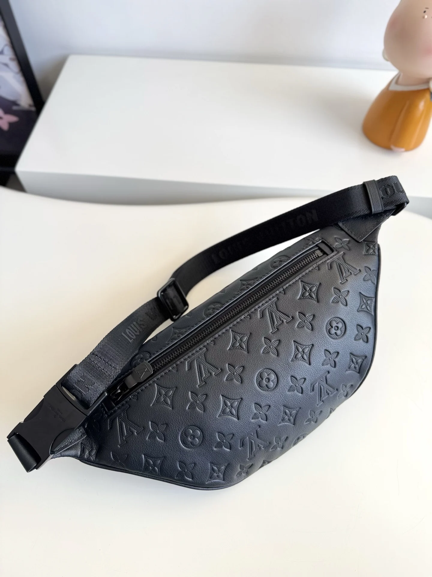 海外原单M46036独家实拍 本款 Discovery 腰包取材柔软 Monogram Shadow 压纹牛皮革 以复古笔触传递闲适个性 前后拉链袋便于存取手机 钥匙和卡片 可调节腰带亦可实现肩背或斜挎选择 尺寸 44×15×9cm