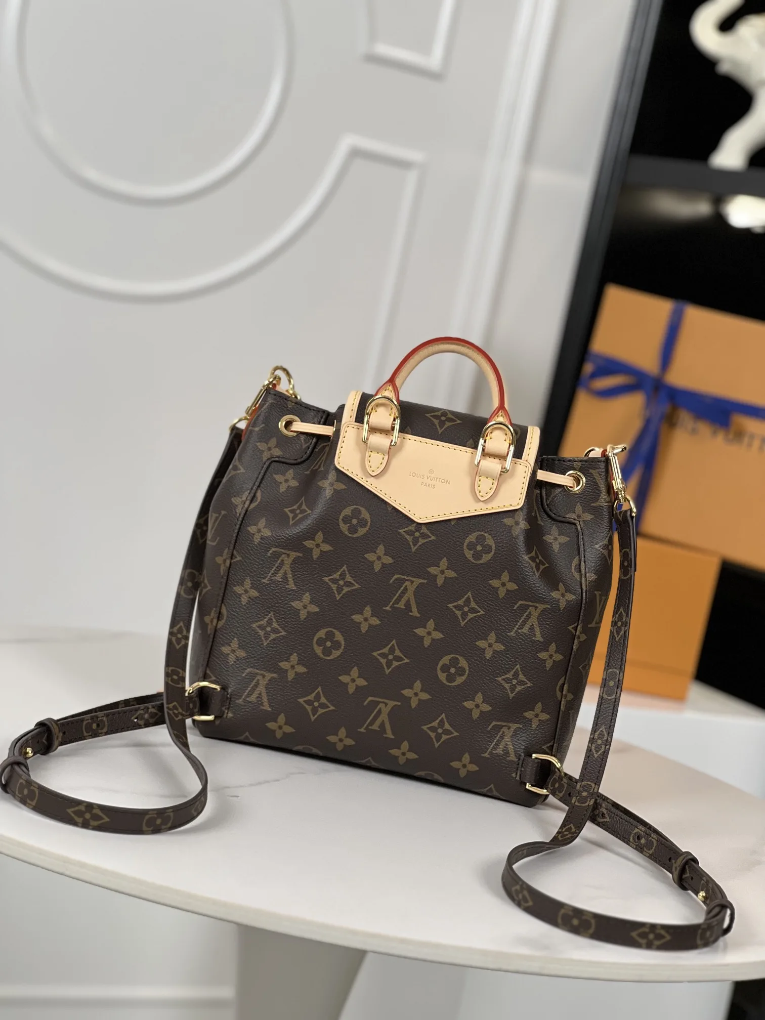 Exclusive real shot of the overseas original M46932! This exquisite and practical Excursion small backpack is made of Monogram canvas with leather trim, exuding a hiking style..