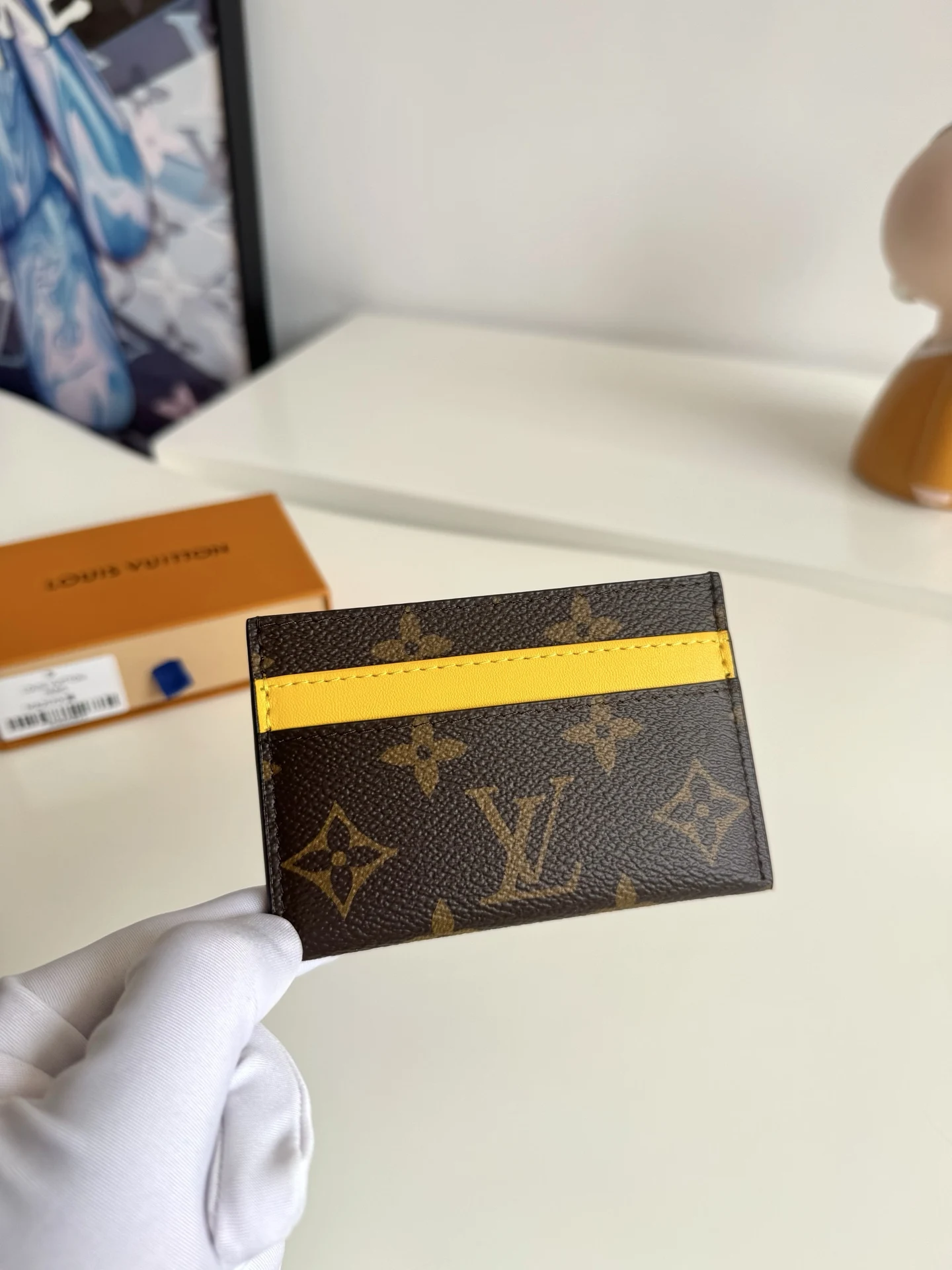 Exclusive original overseas M62170 yellow with real shots! This card holder features a stylish and fashionable design made of the new Monogram Eclipse coated canvas material, compact enough to easily fit into your pocket. It includes a central pocket and four slots for storing credit cards, plane and train tickets, as well as business cards. Dimensions: 11×7×1.5cm