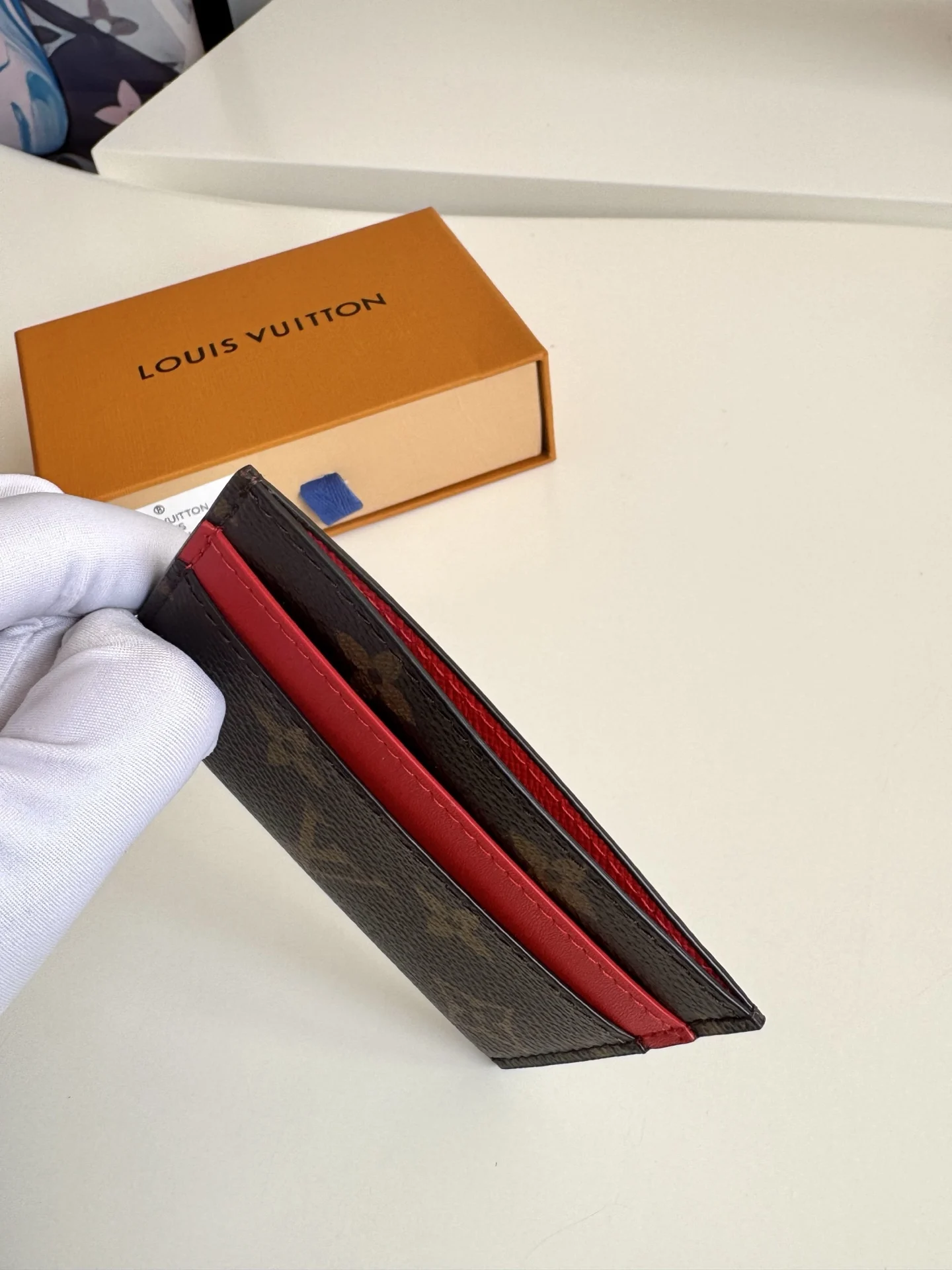 Overseas original M62170 bright red exclusive real shot! This card holder features a stylish and fashionable design made of the new Monogram Eclipse coated canvas material, compact in size and easily fits into your pocket. It includes a central pocket and four slots for storing credit cards, plane and train tickets, as well as business cards. Dimensions: 11×7×1.5cm