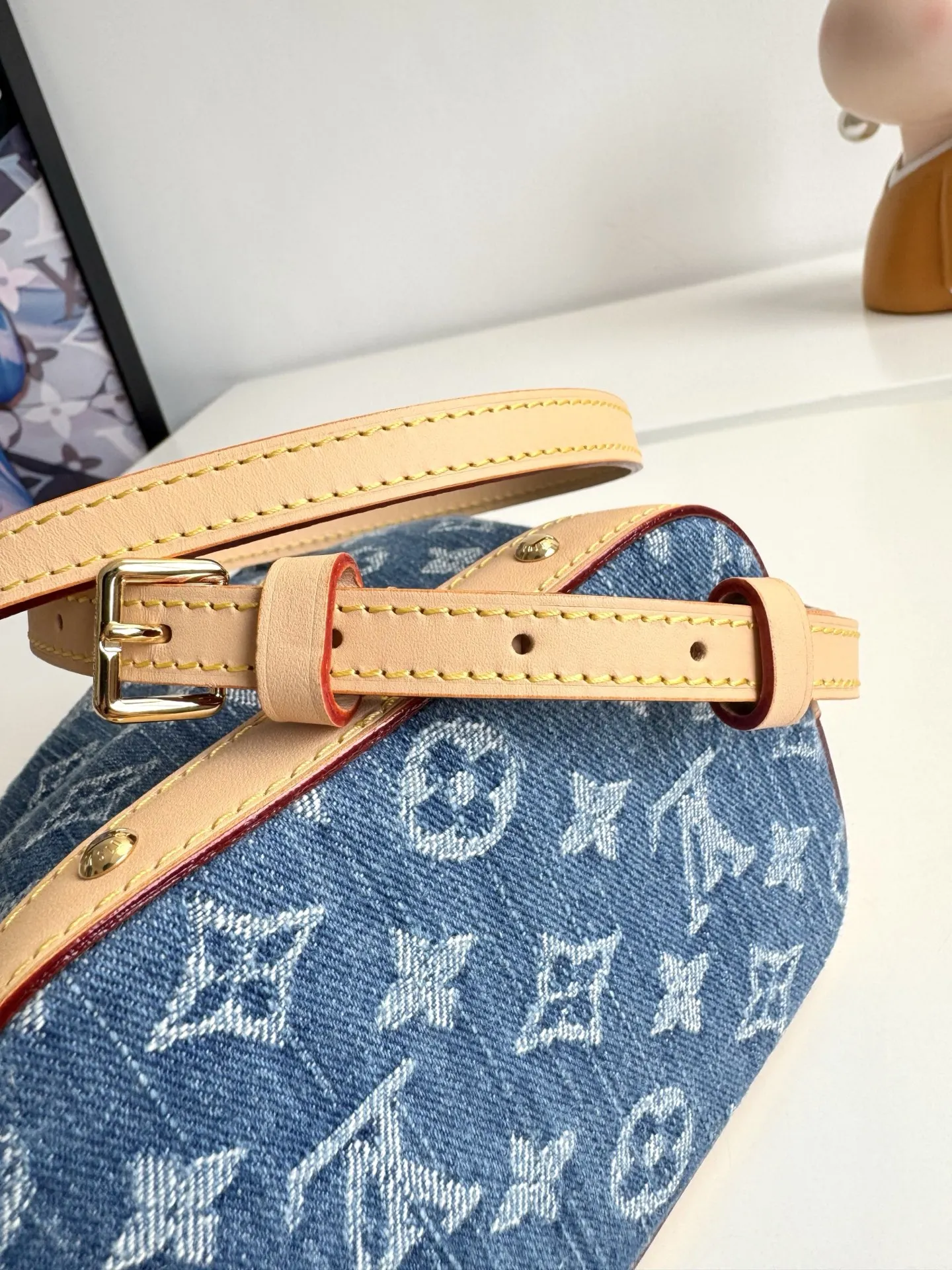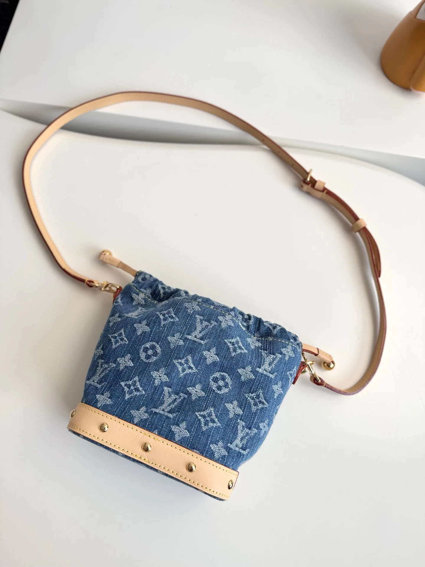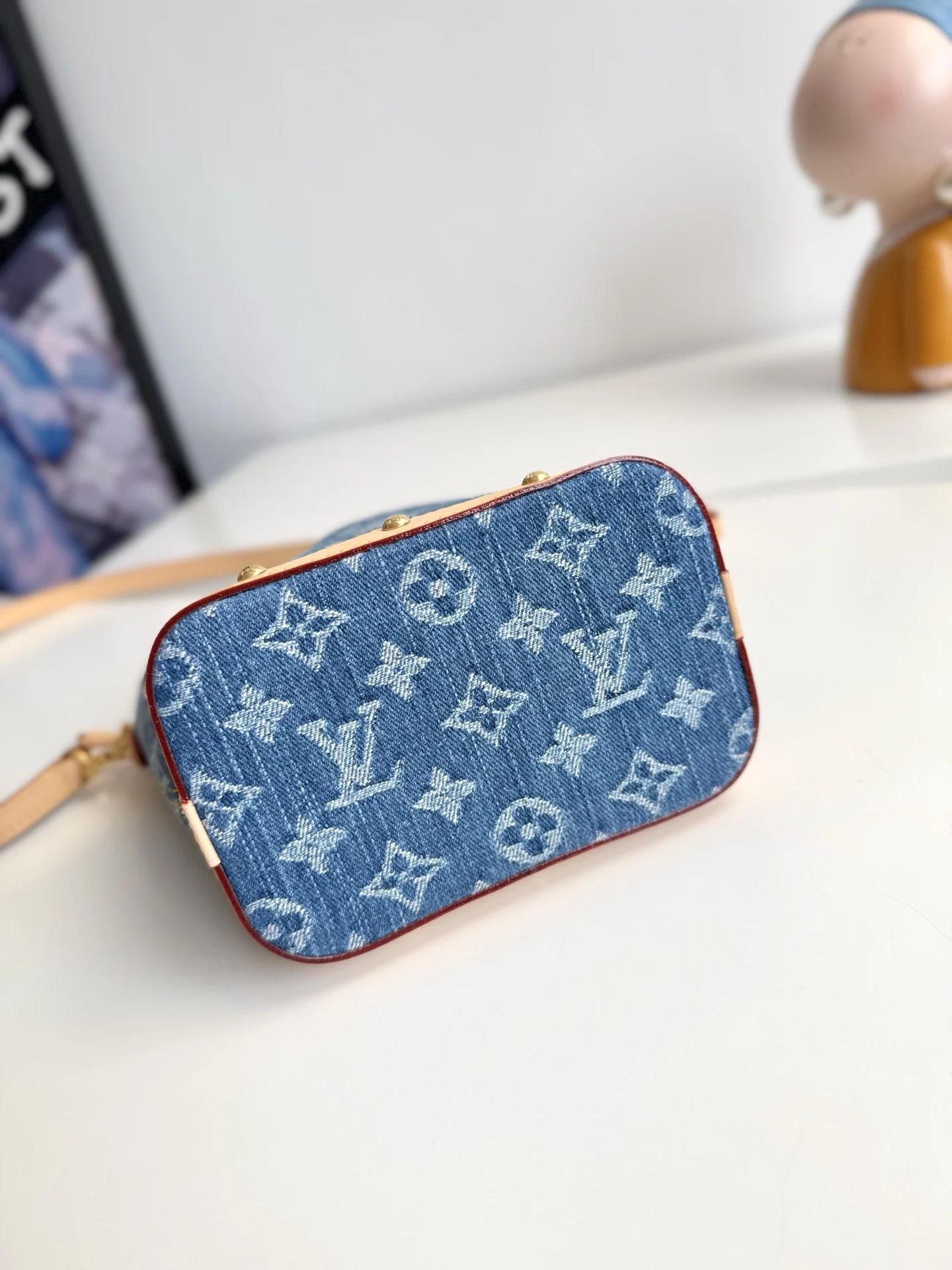 Exclusive real shot of the overseas original M83043! This Nano Noe backpack features a cotton fabric rendered in trendy denim tones, layered with the classic Monogram pattern,..
