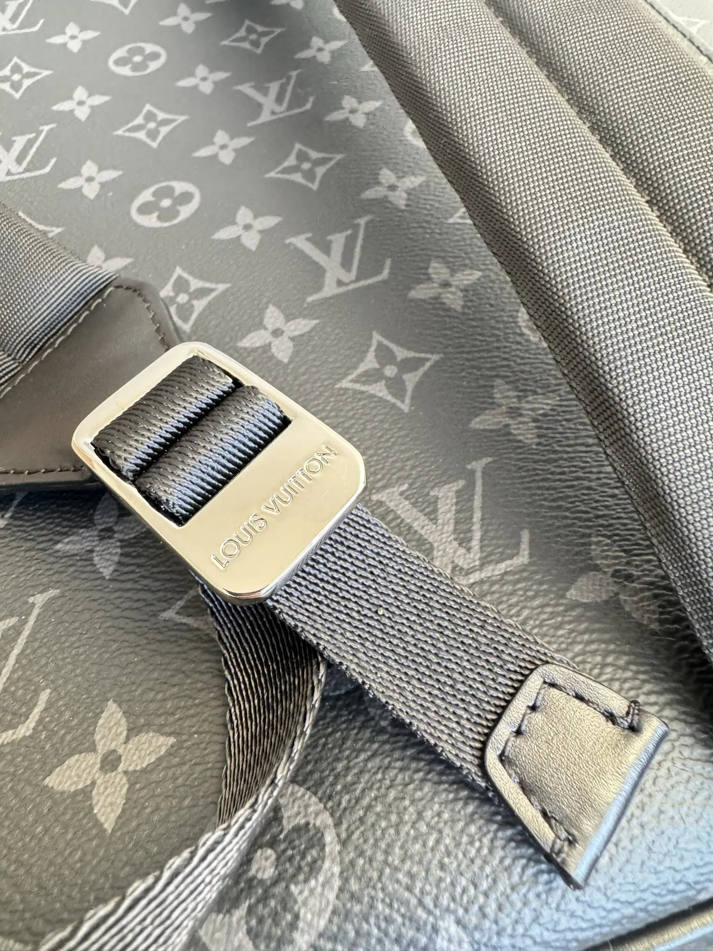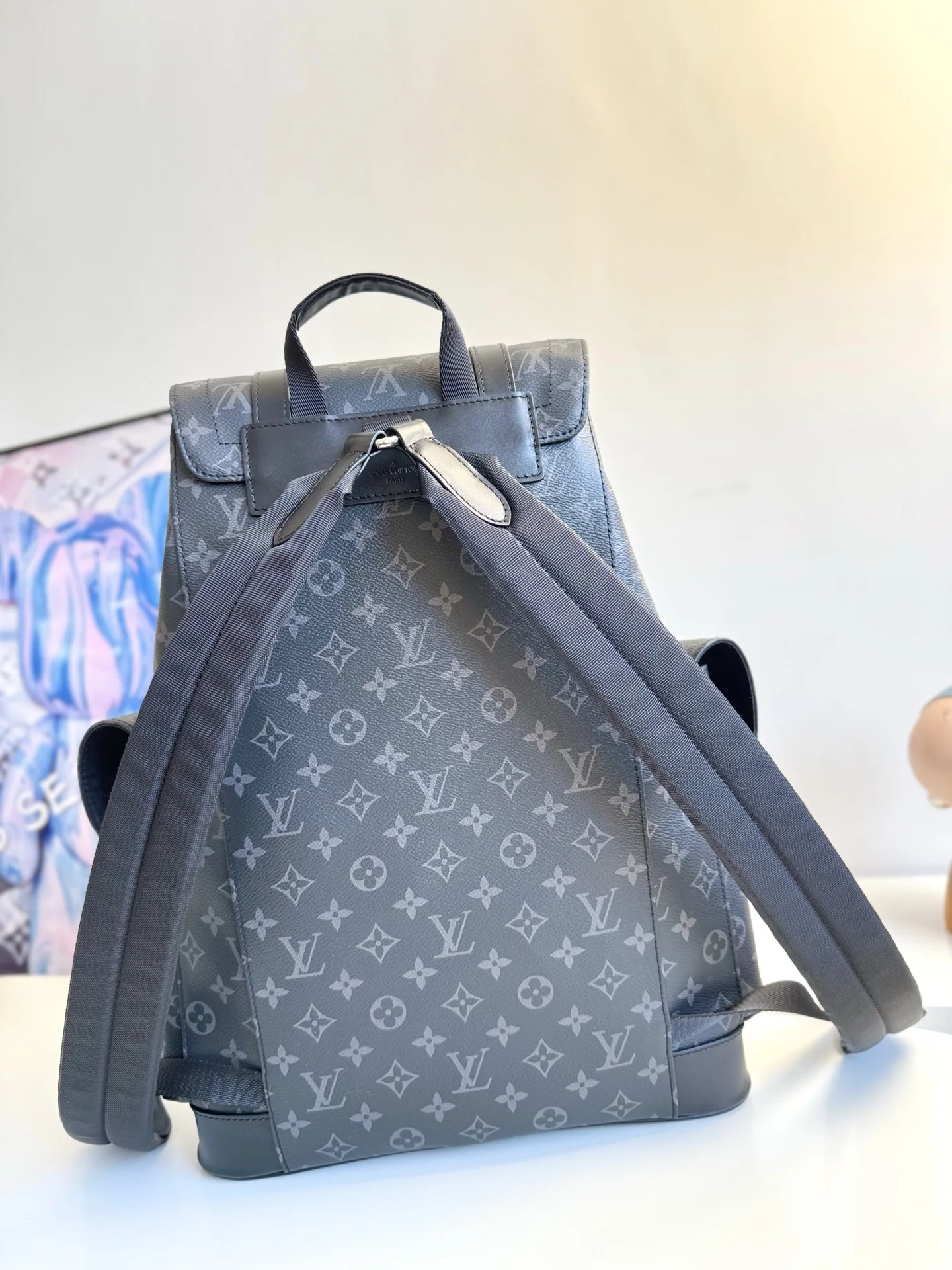 Overseas original single product P01959 exclusive real shot! This Christopher medium backpack is from the Mon Monogram collection, which can be freely decorated with colorful stripes, exclusive letters and brand prints on the Monogram Eclipse canvas, freely blooming individual style. The spacious silhouette reshapes the rugged mountaineering style, and the pockets and snap-button flaps realize the proper storage of personal items. Size: 44×38×12.5cm