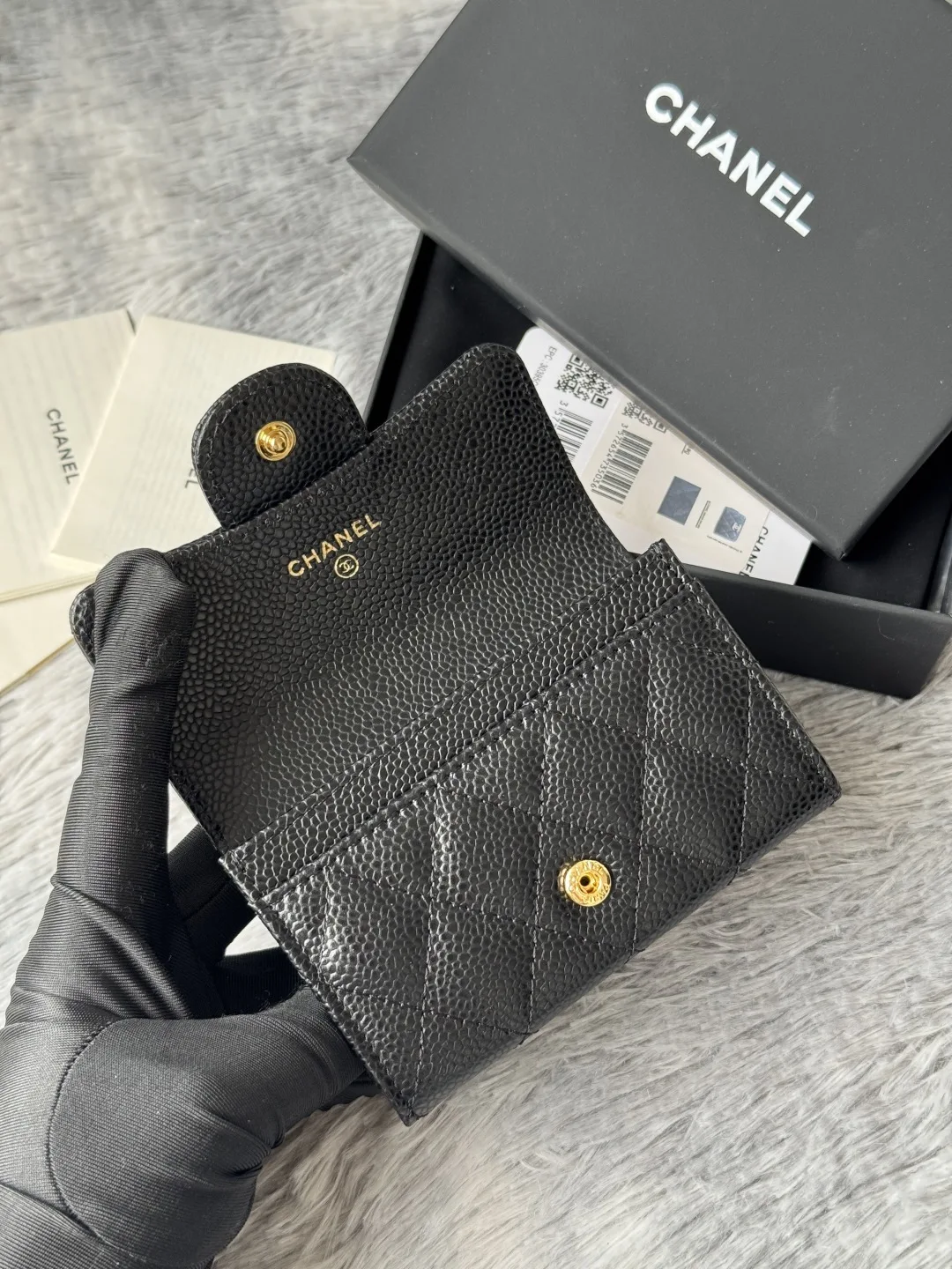 CHANEL Lambskin Caviar, Small Large Caviar Leather, Classic Collection, Black, Gold Silver Hardware, Exclusive Real Shots. Classic CF Card Holder Arrived! Very Appealing! Shiny Gold and Shiny Silver Hardware are Very Fashionable This card holder has a large capacity. Approximately one thousand RMB can be placed when a hundred RMB note is folded in half. It can also hold 2-3 cards. Very practical! Style Code: P80799, Dimensions: 11*8.5*3cm